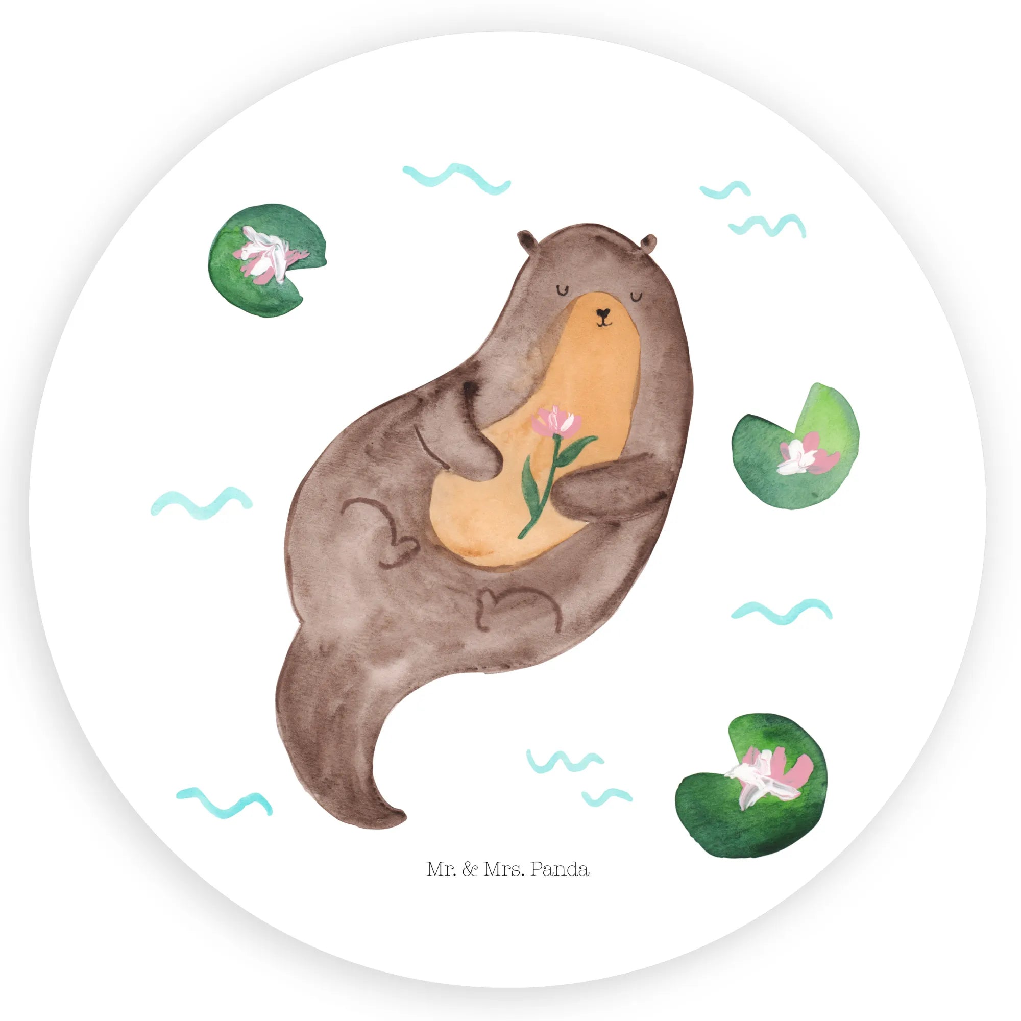 120mm okrągła naklejka wydra lilia wodna - 80mm okrągła naklejka - z napisem - biały