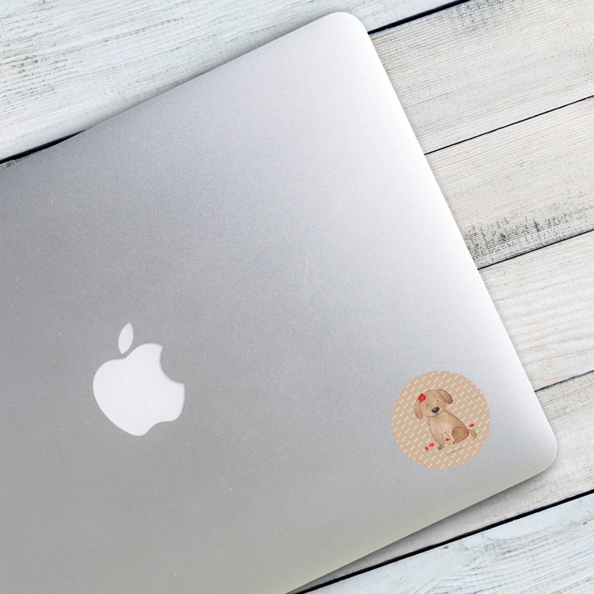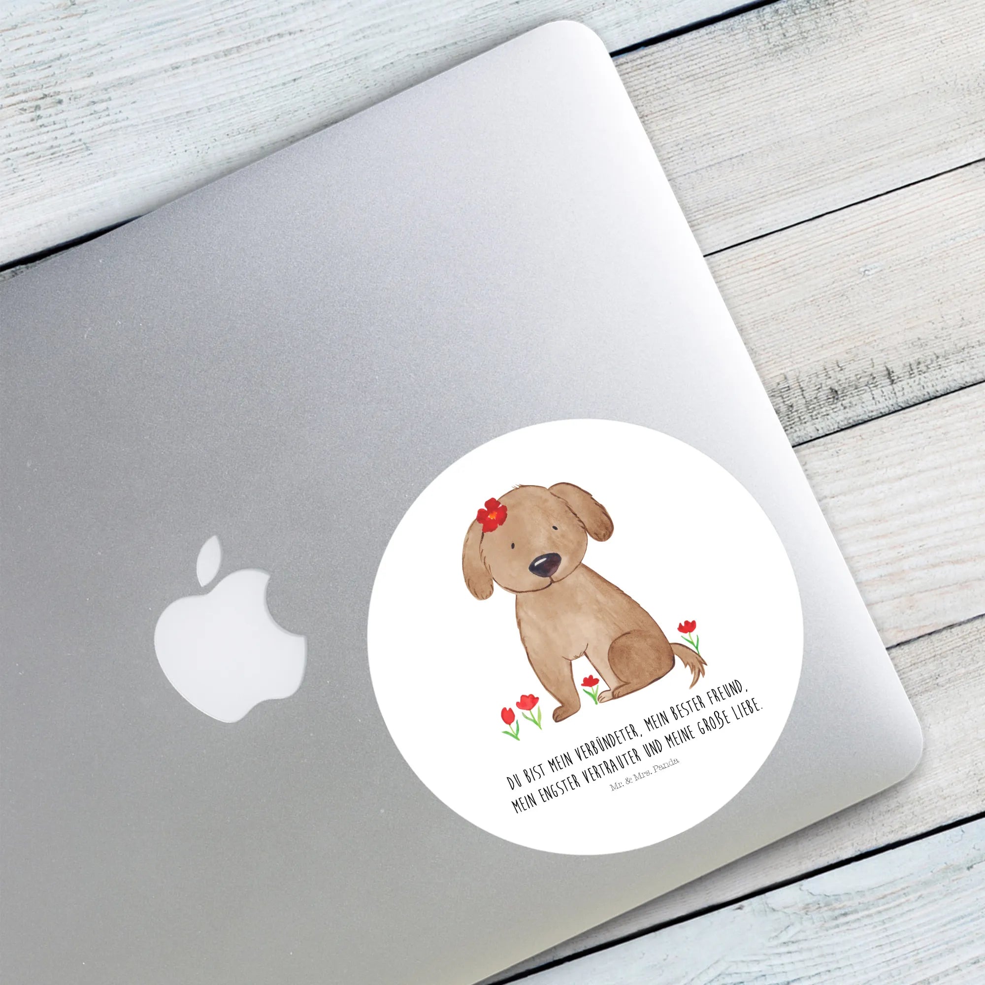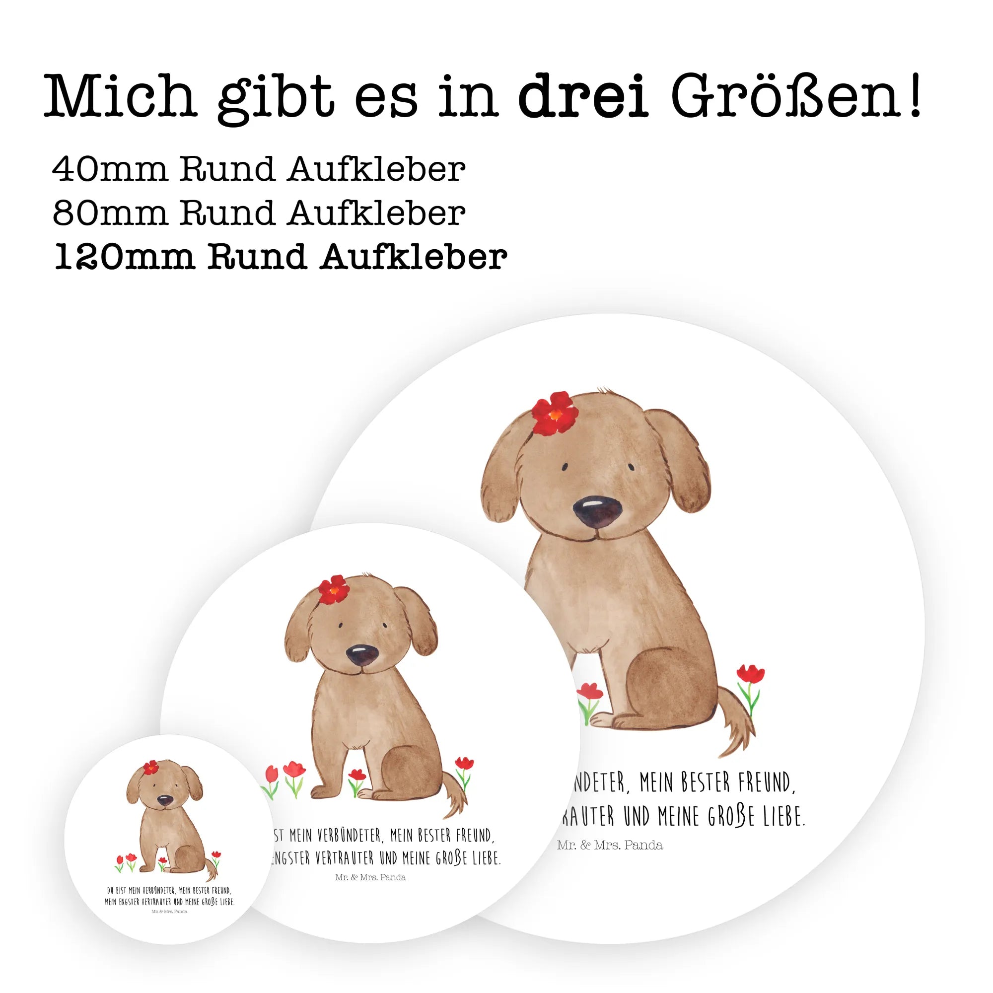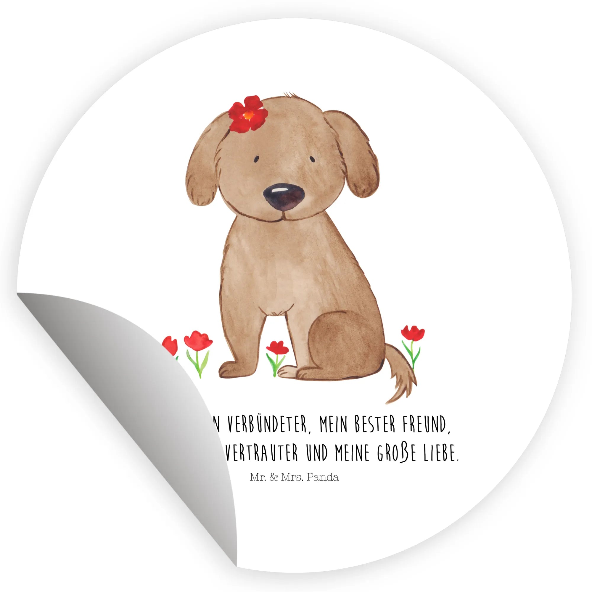 80mm okrągła naklejka pies Dama - 80mm Rund Aufkleber - z napisem - biały
