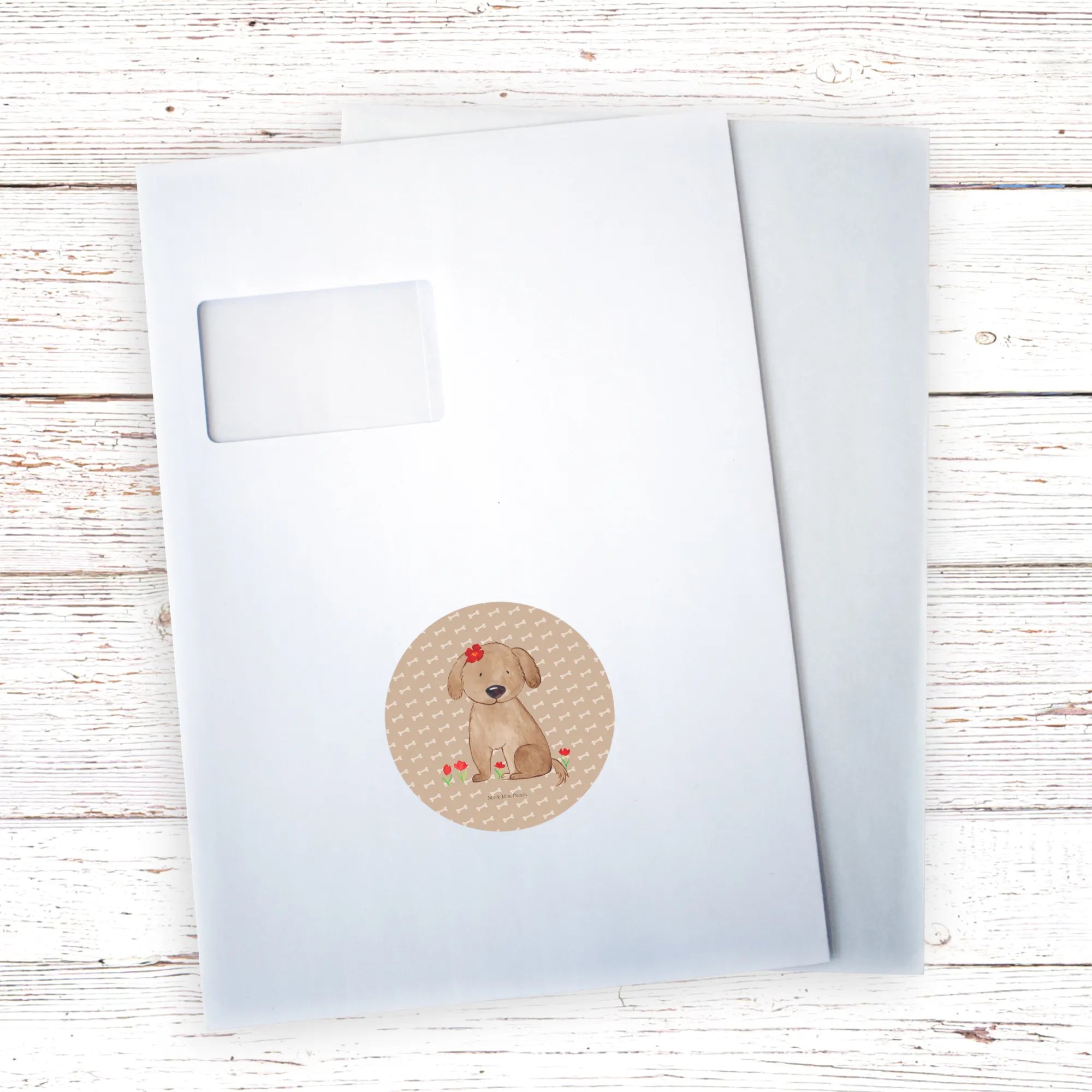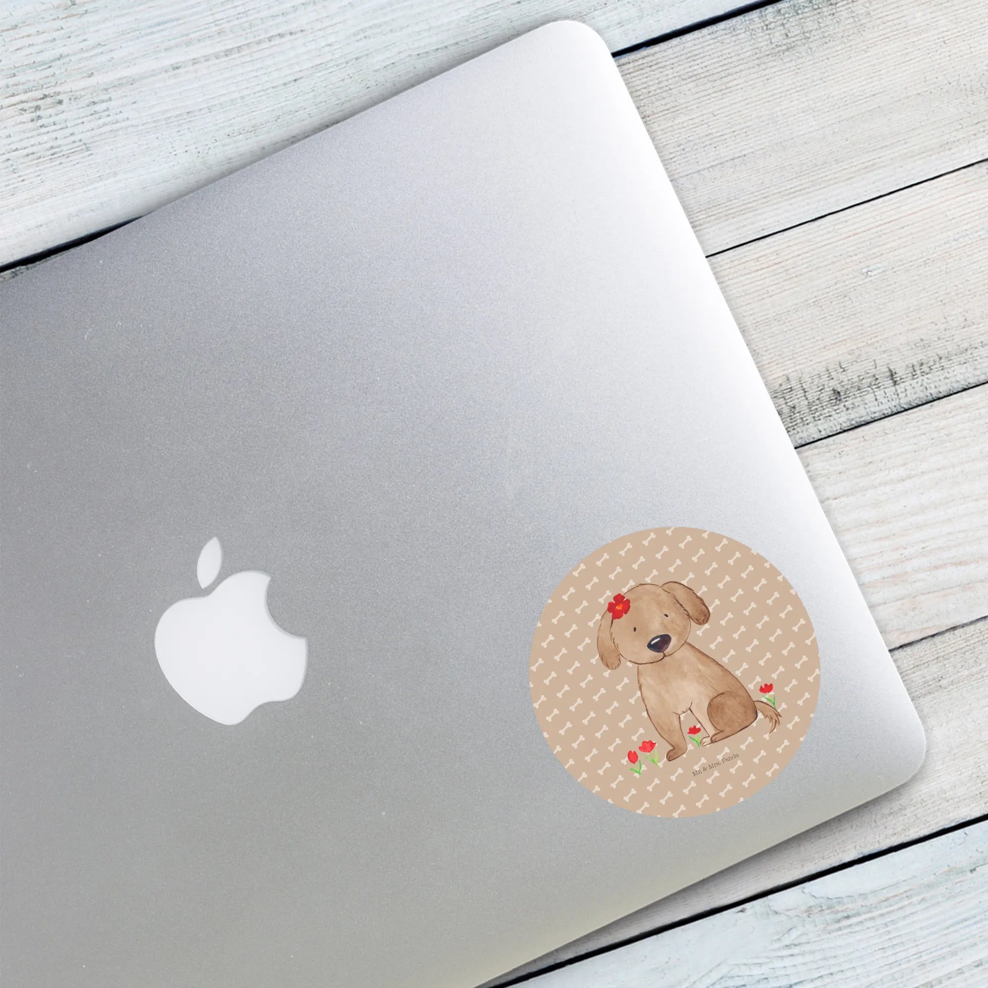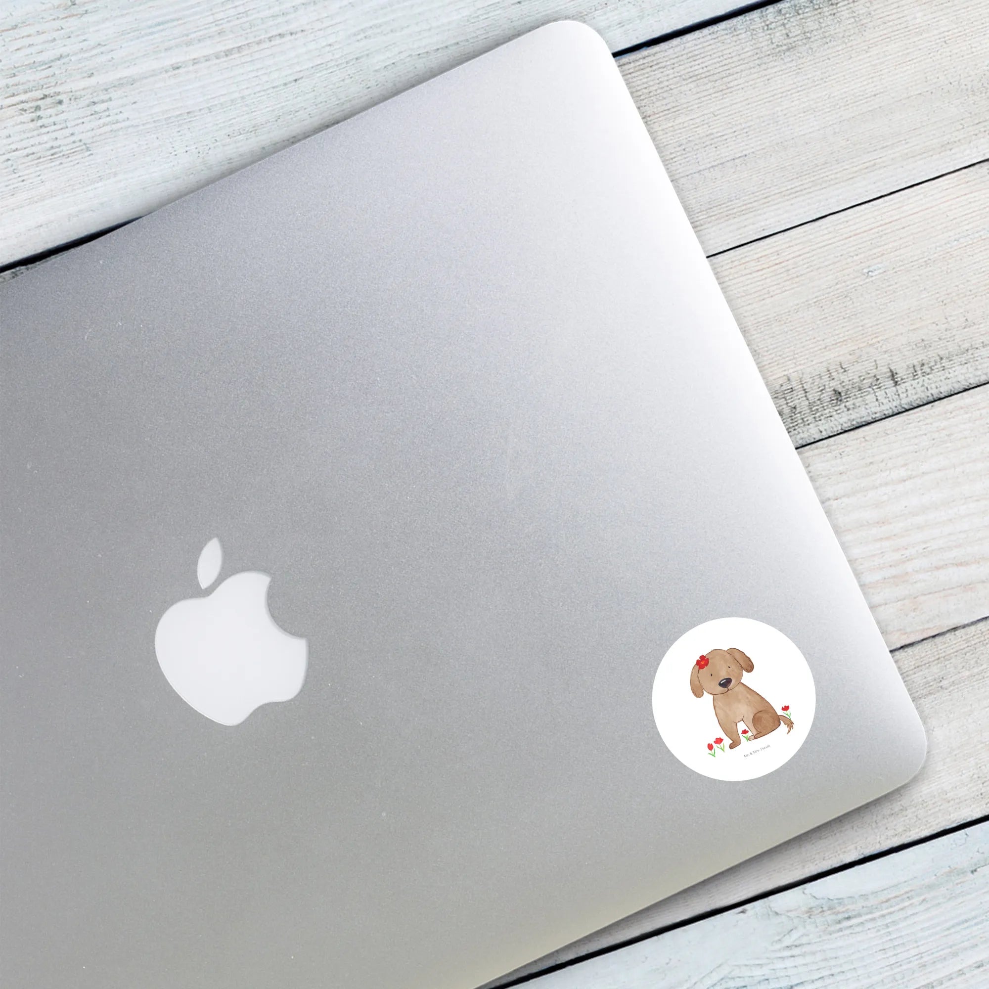 80mm okrągła naklejka pies Dama - 80mm Rund Aufkleber - z napisem - biały