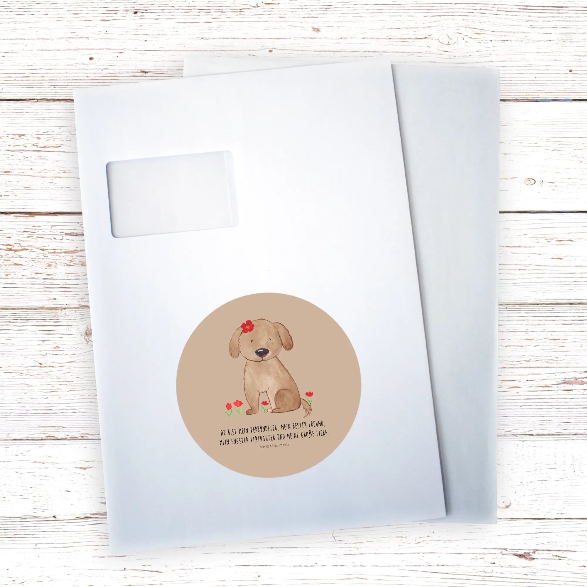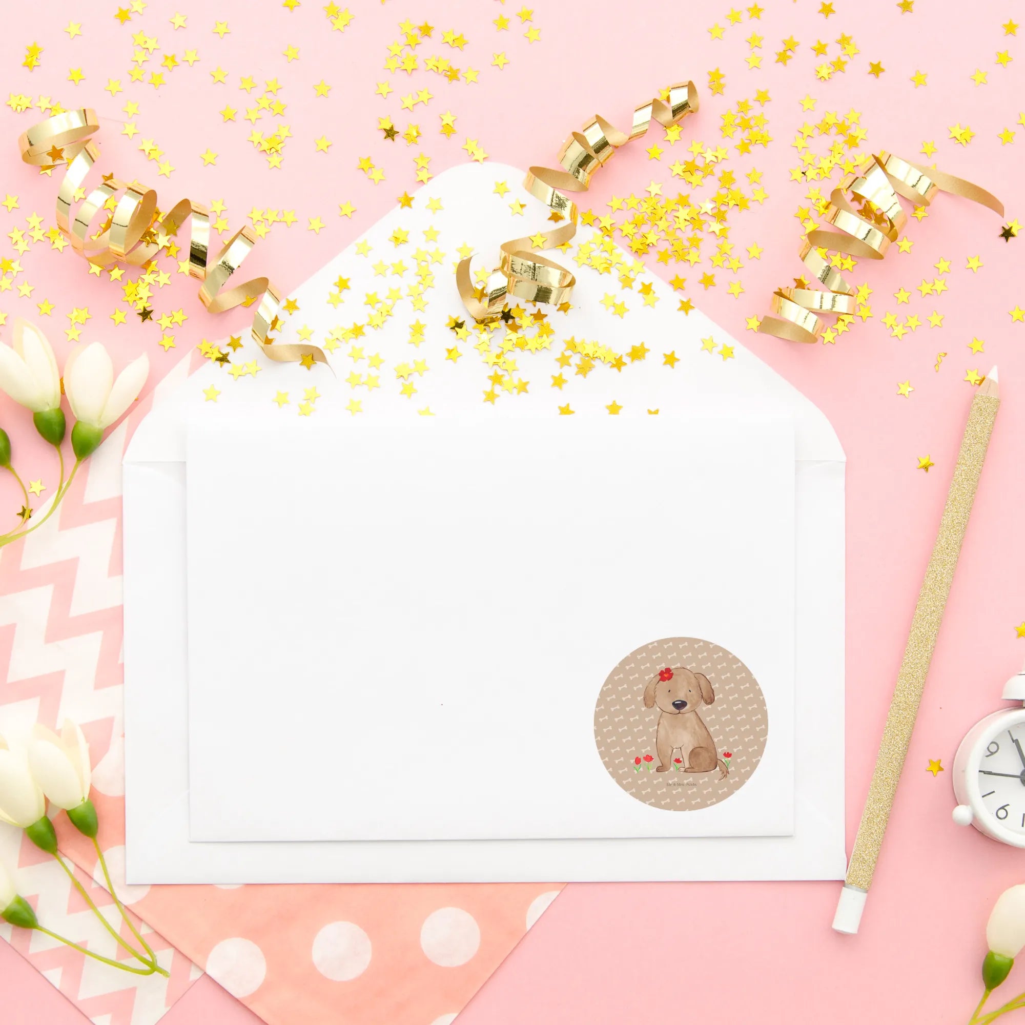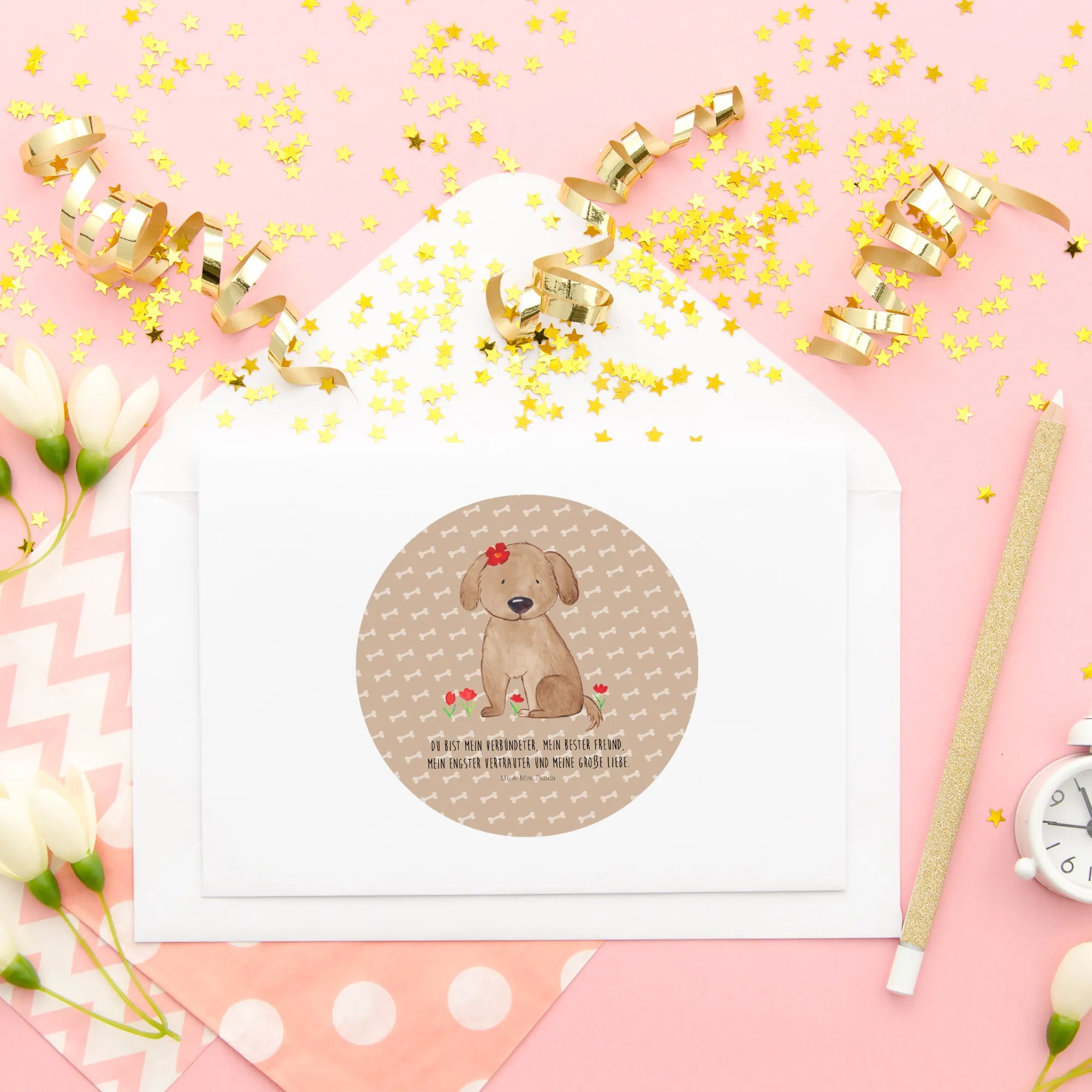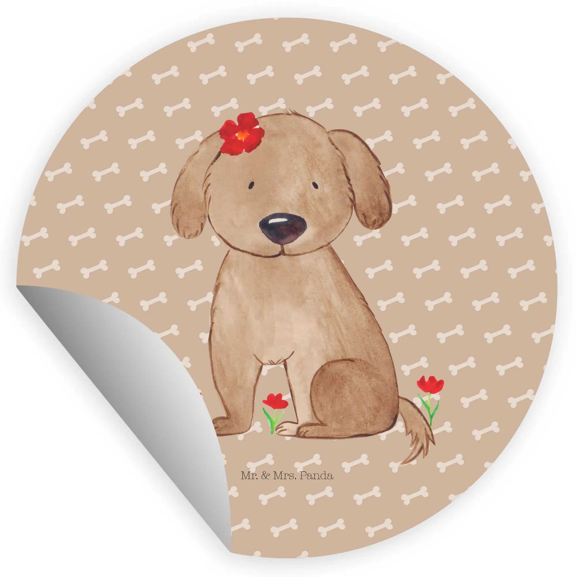 80mm okrągła naklejka pies Dama - 80mm Rund Aufkleber - z napisem - biały