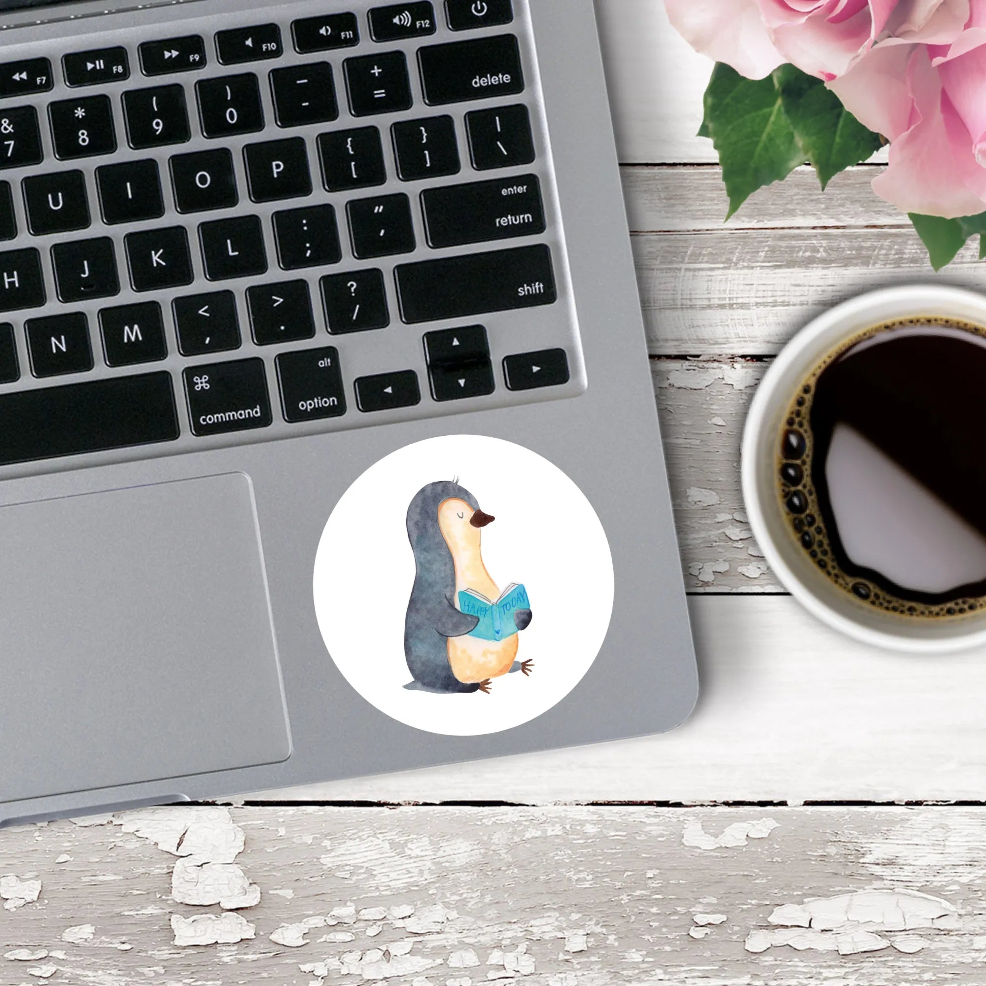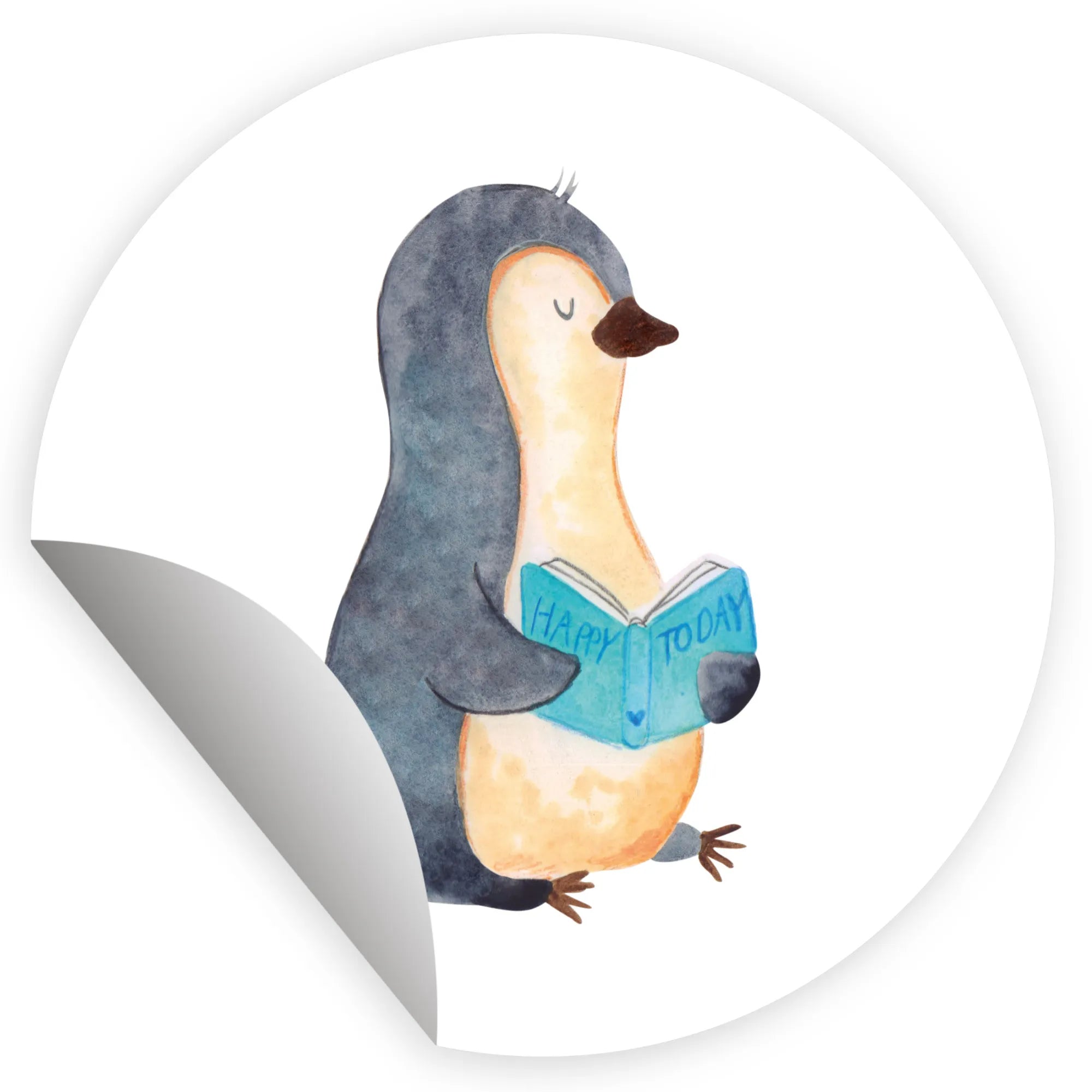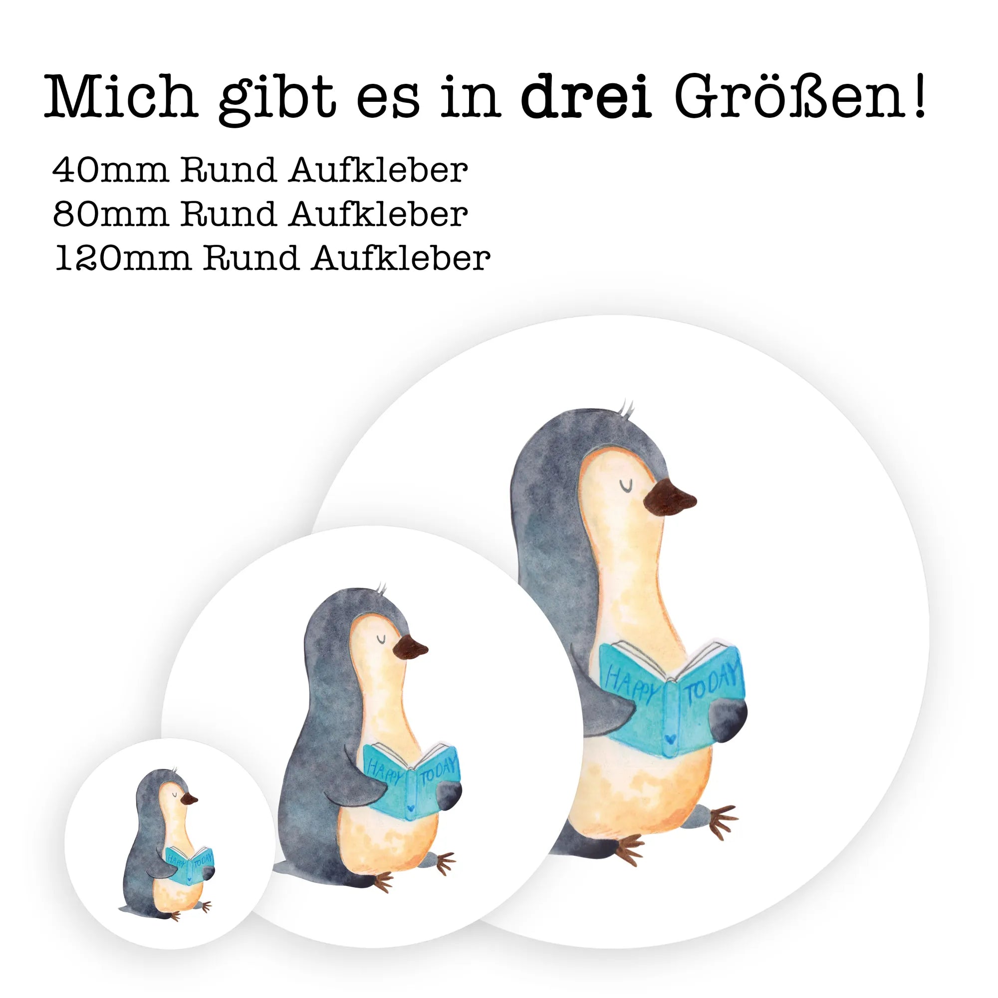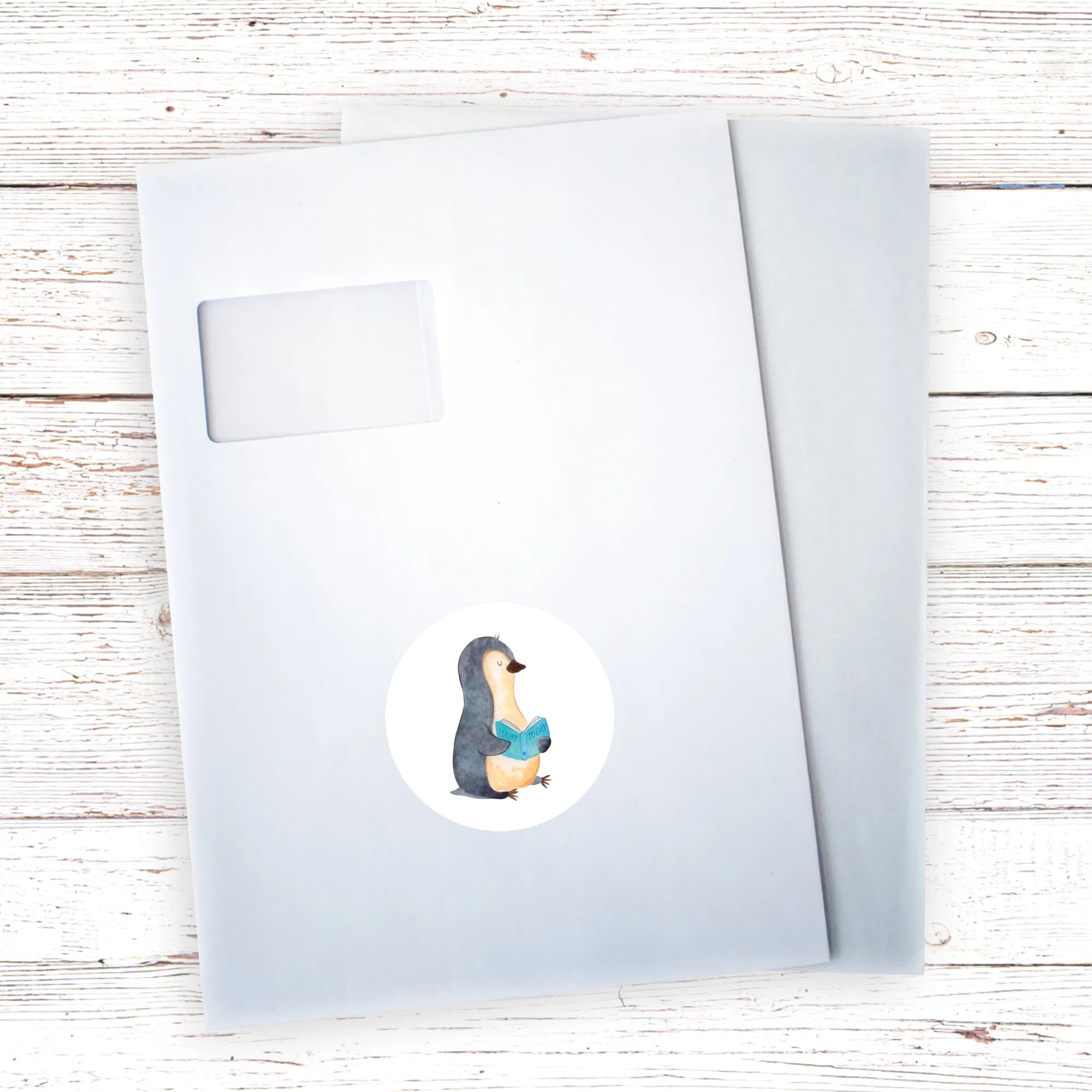 80mm okrągła naklejka pingwin książka - 80mm Rund Aufkleber - z napisem - biały