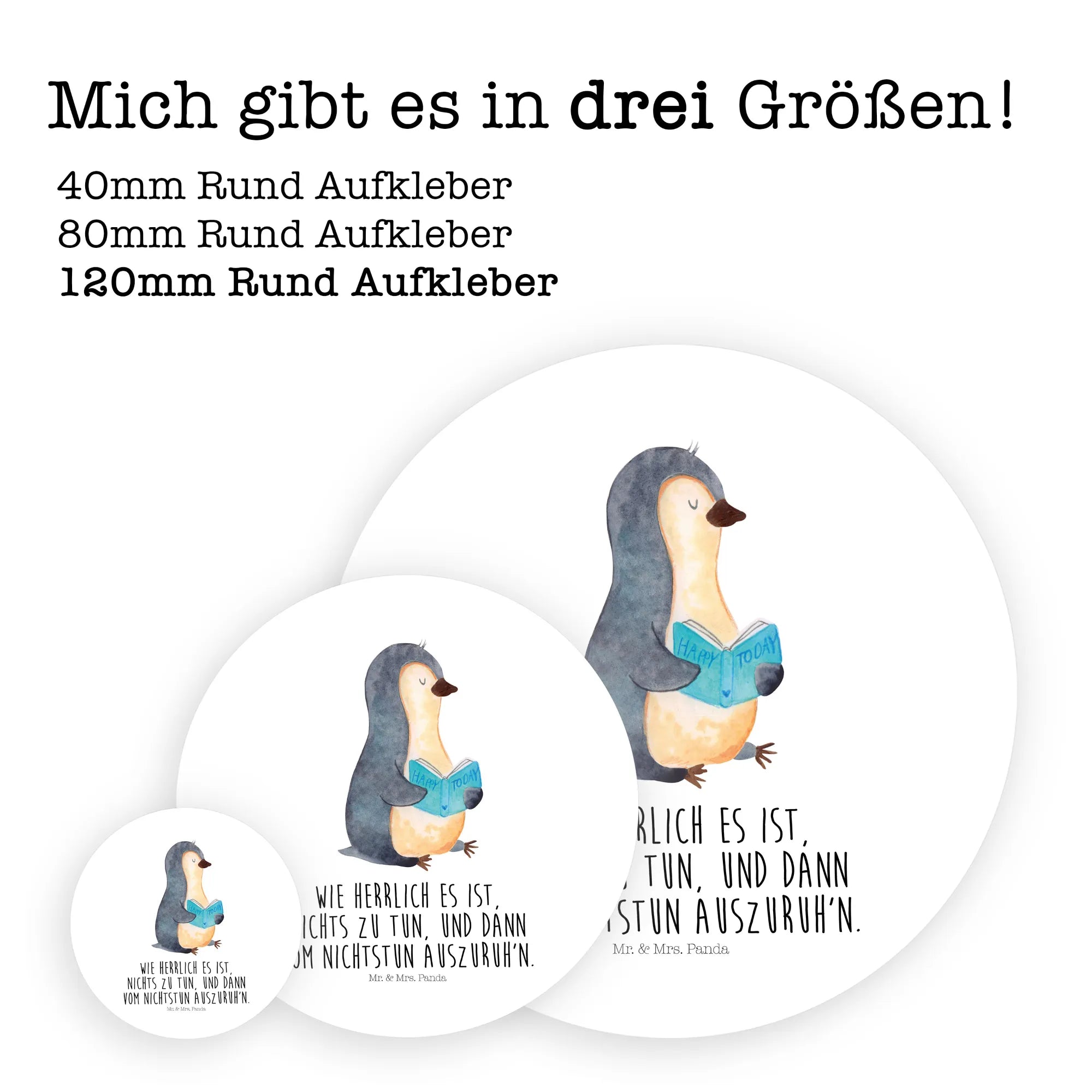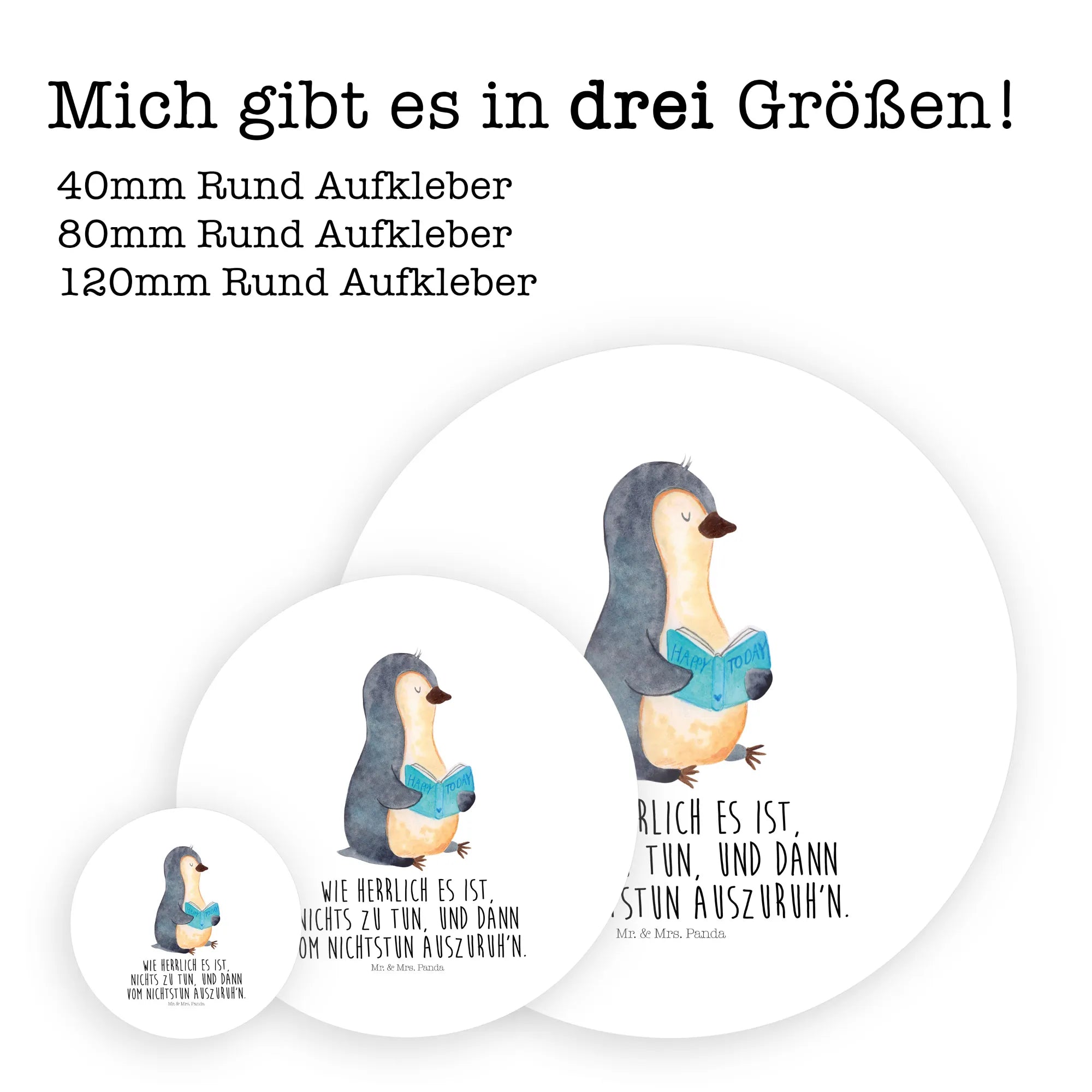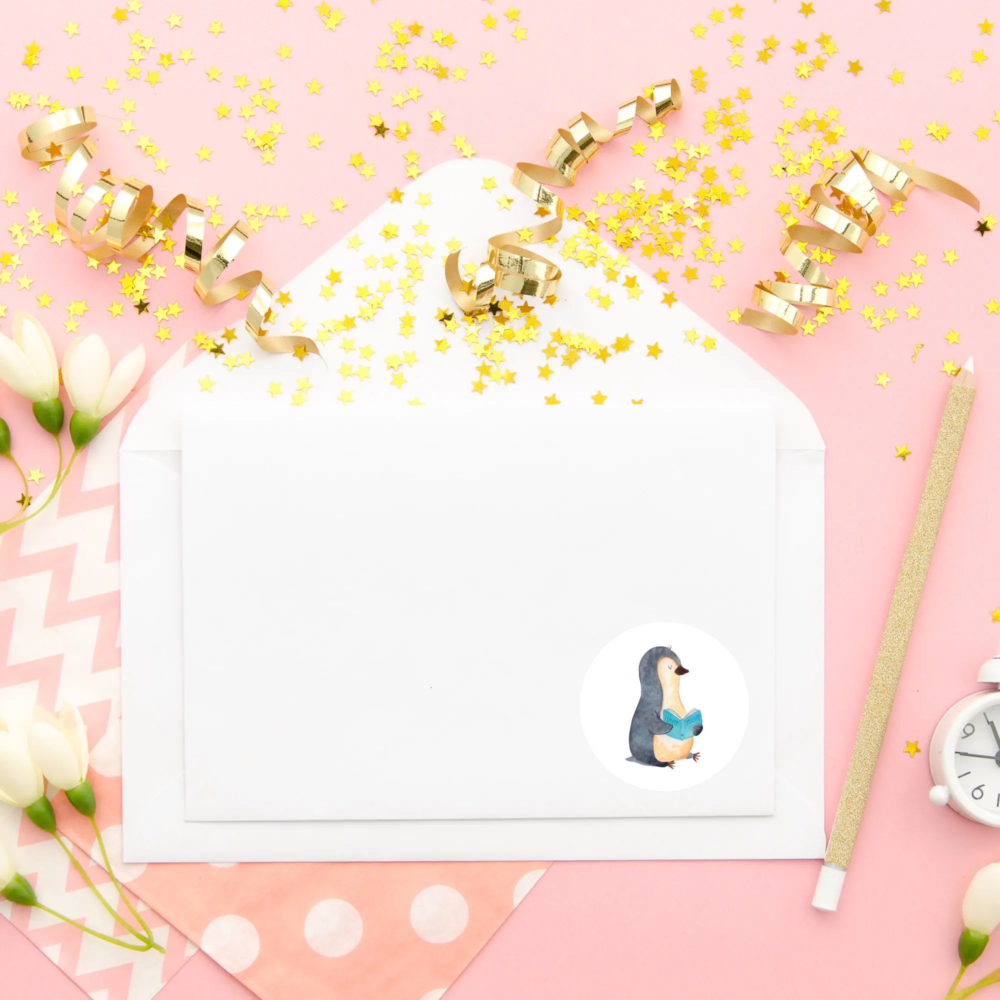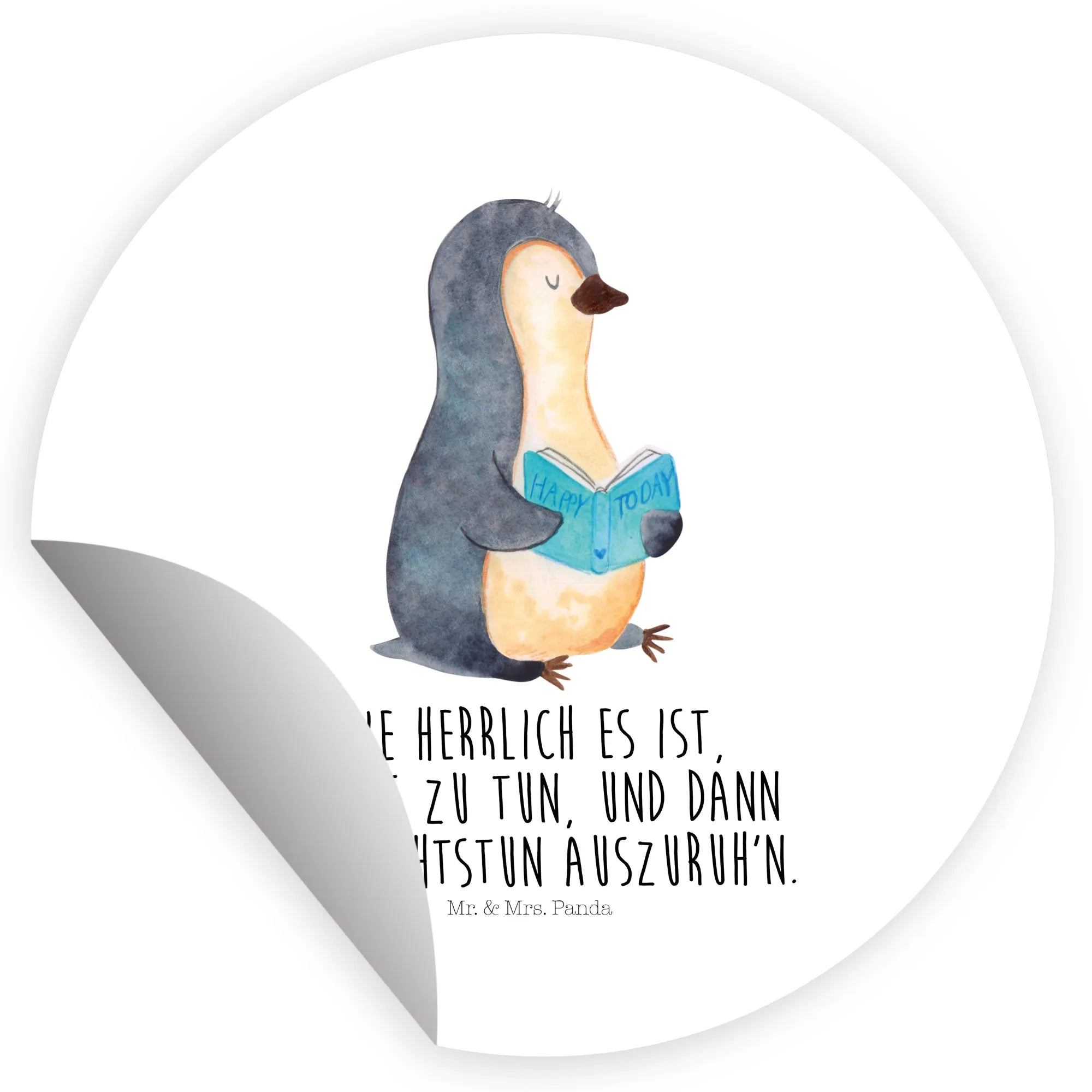 80mm okrągła naklejka pingwin książka - 80mm Rund Aufkleber - z napisem - biały