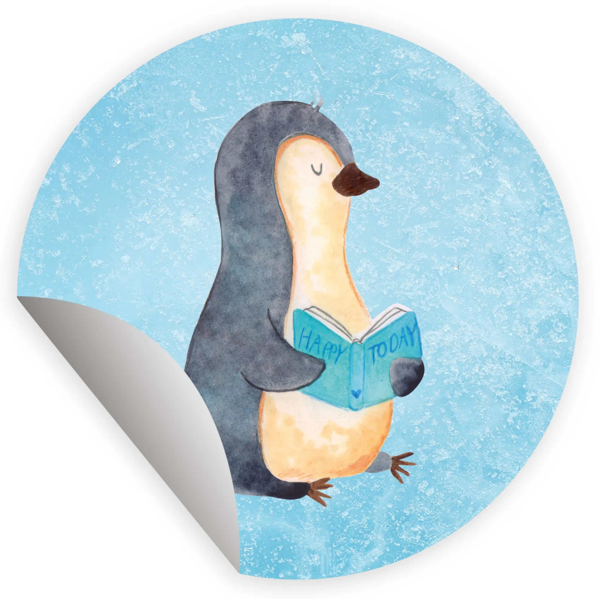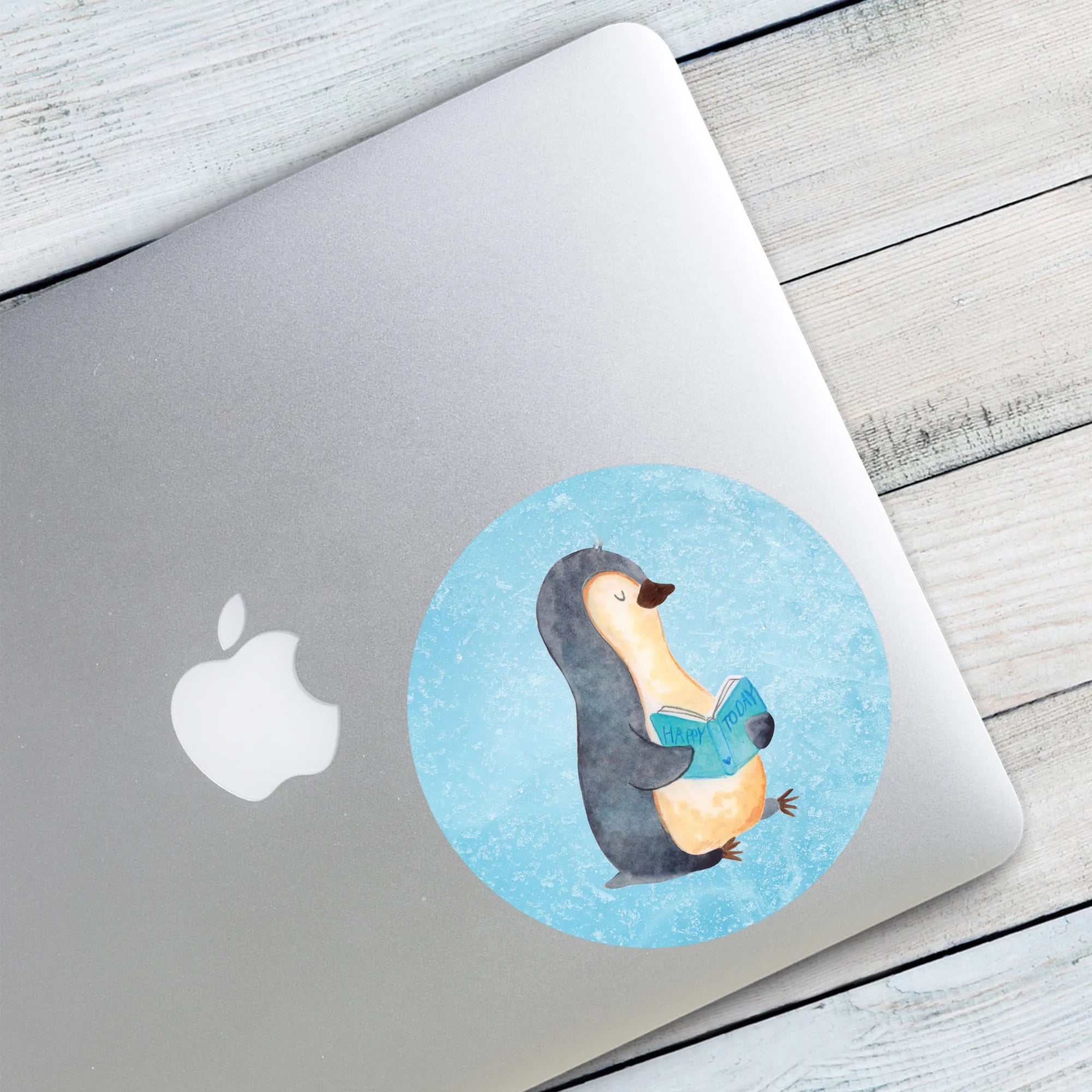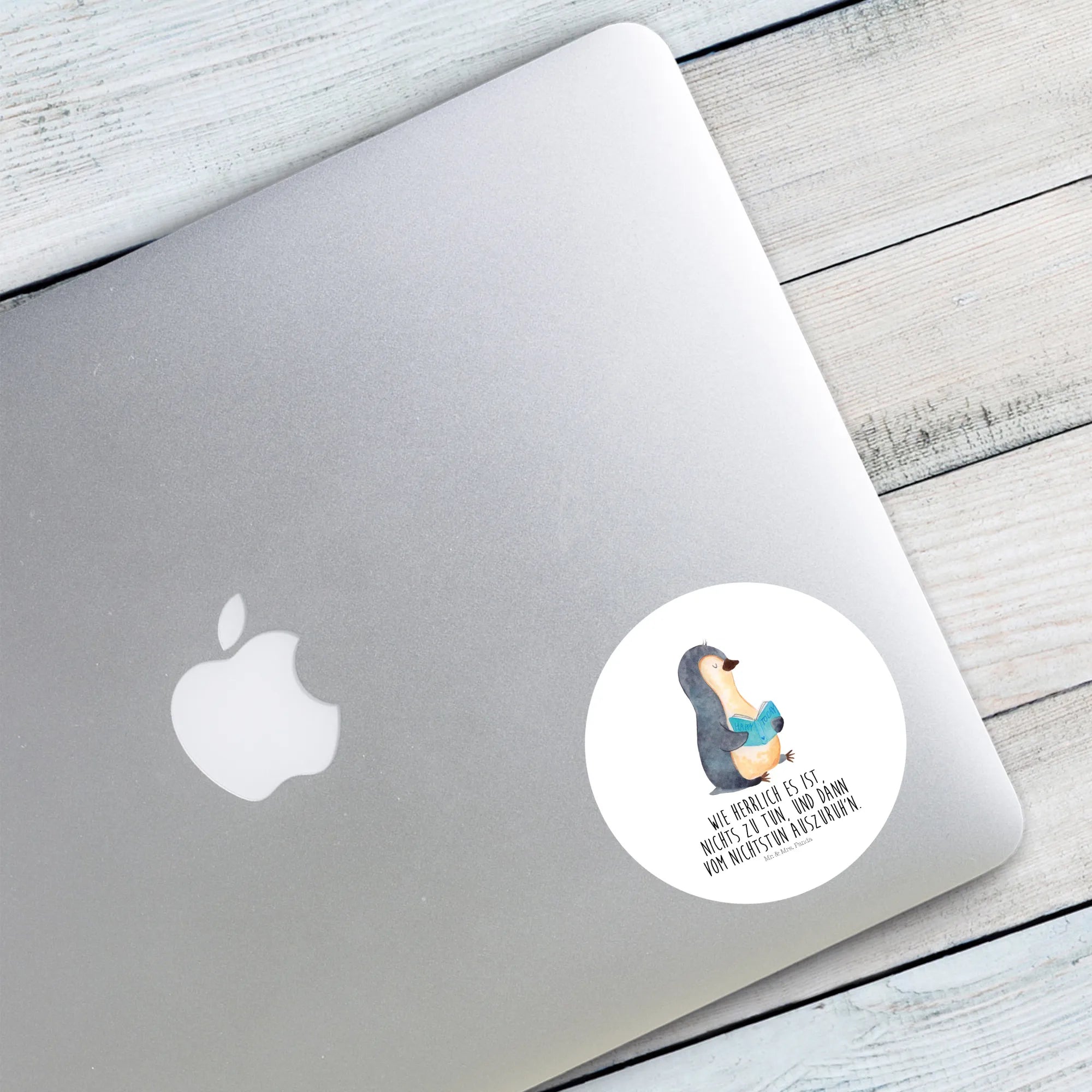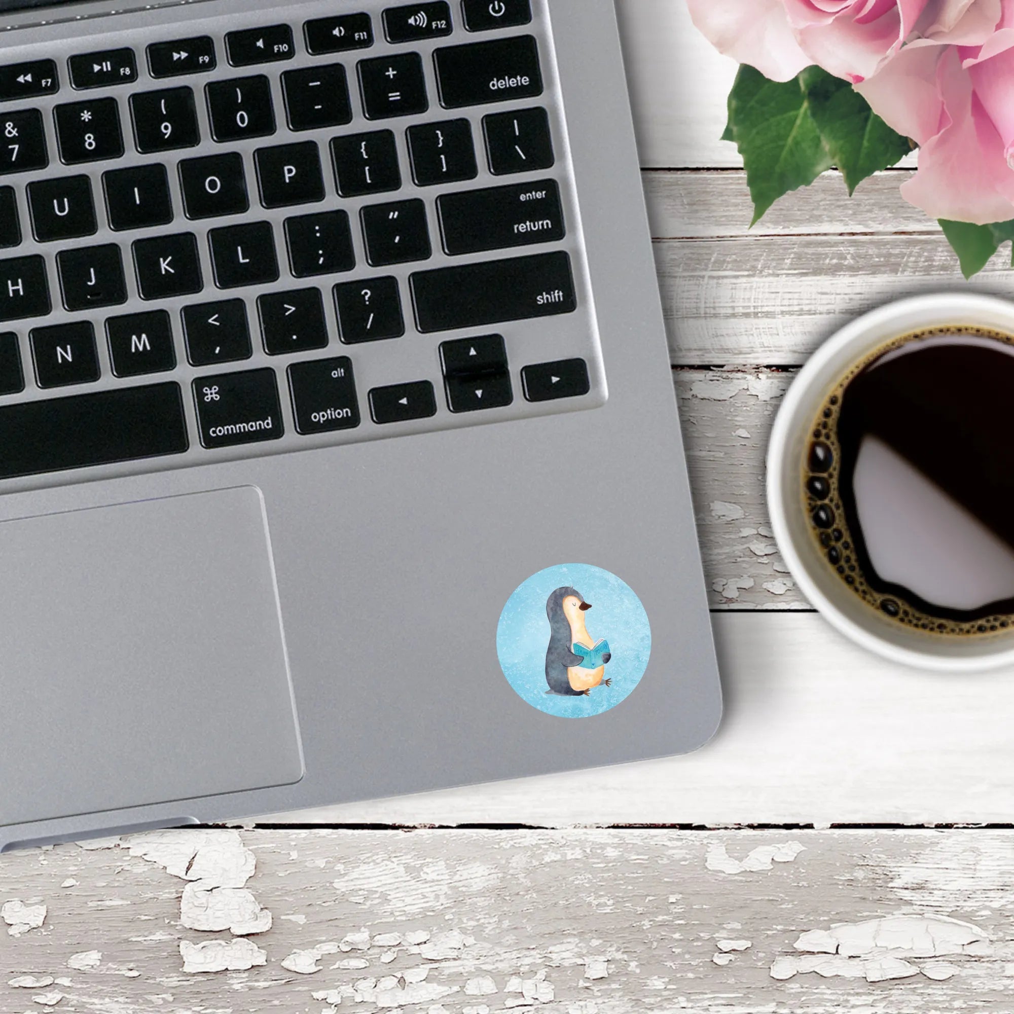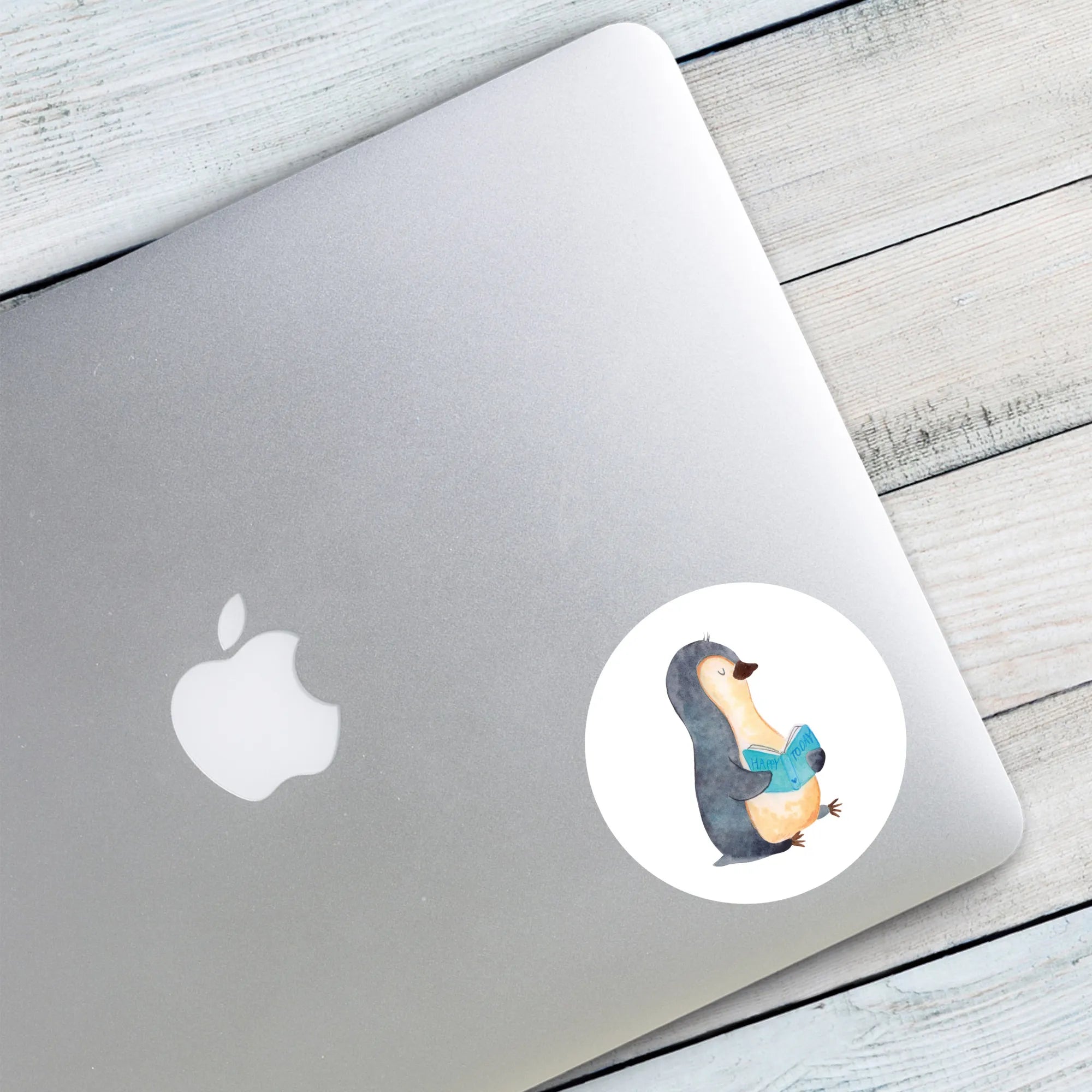 80mm okrągła naklejka pingwin książka - 80mm Rund Aufkleber - z napisem - biały