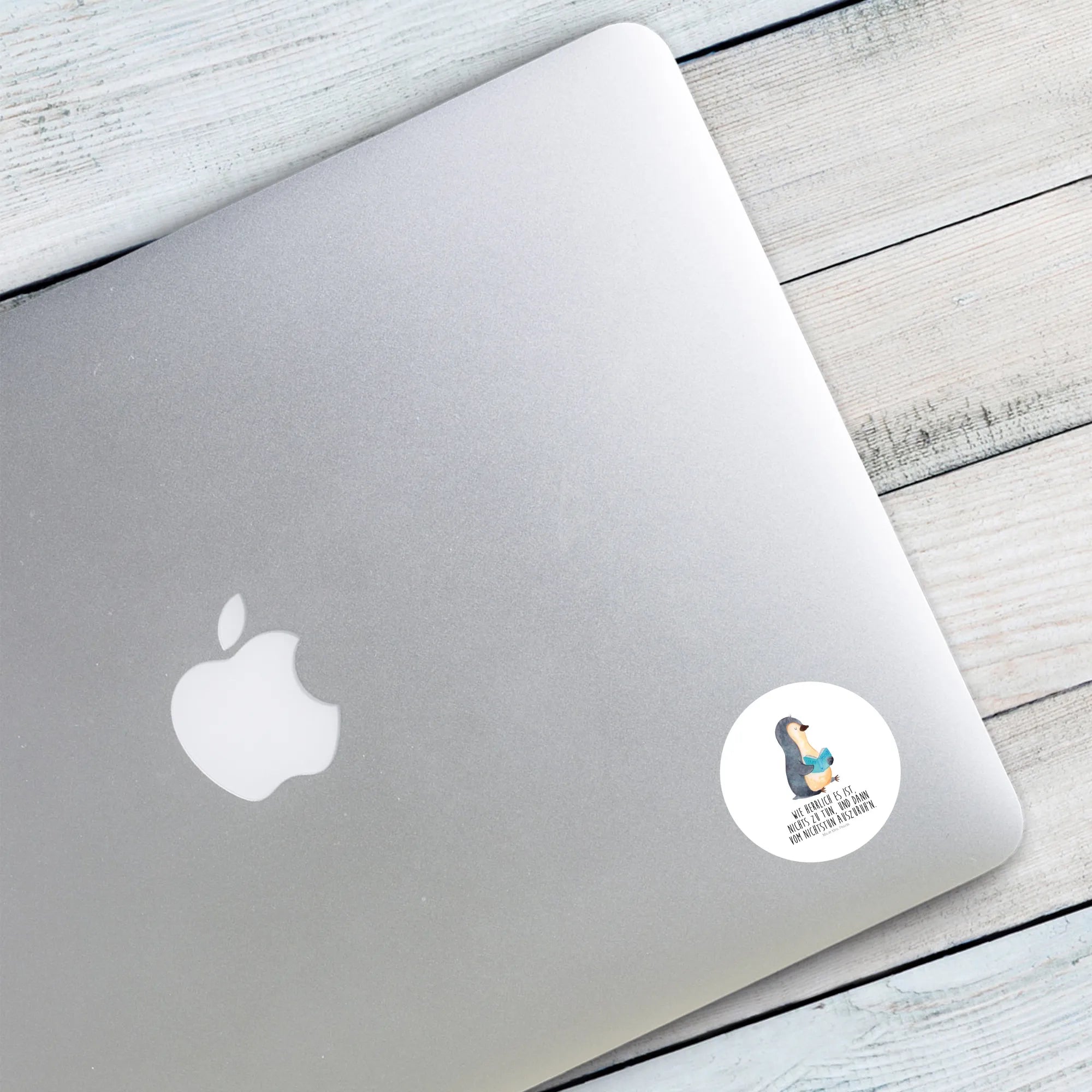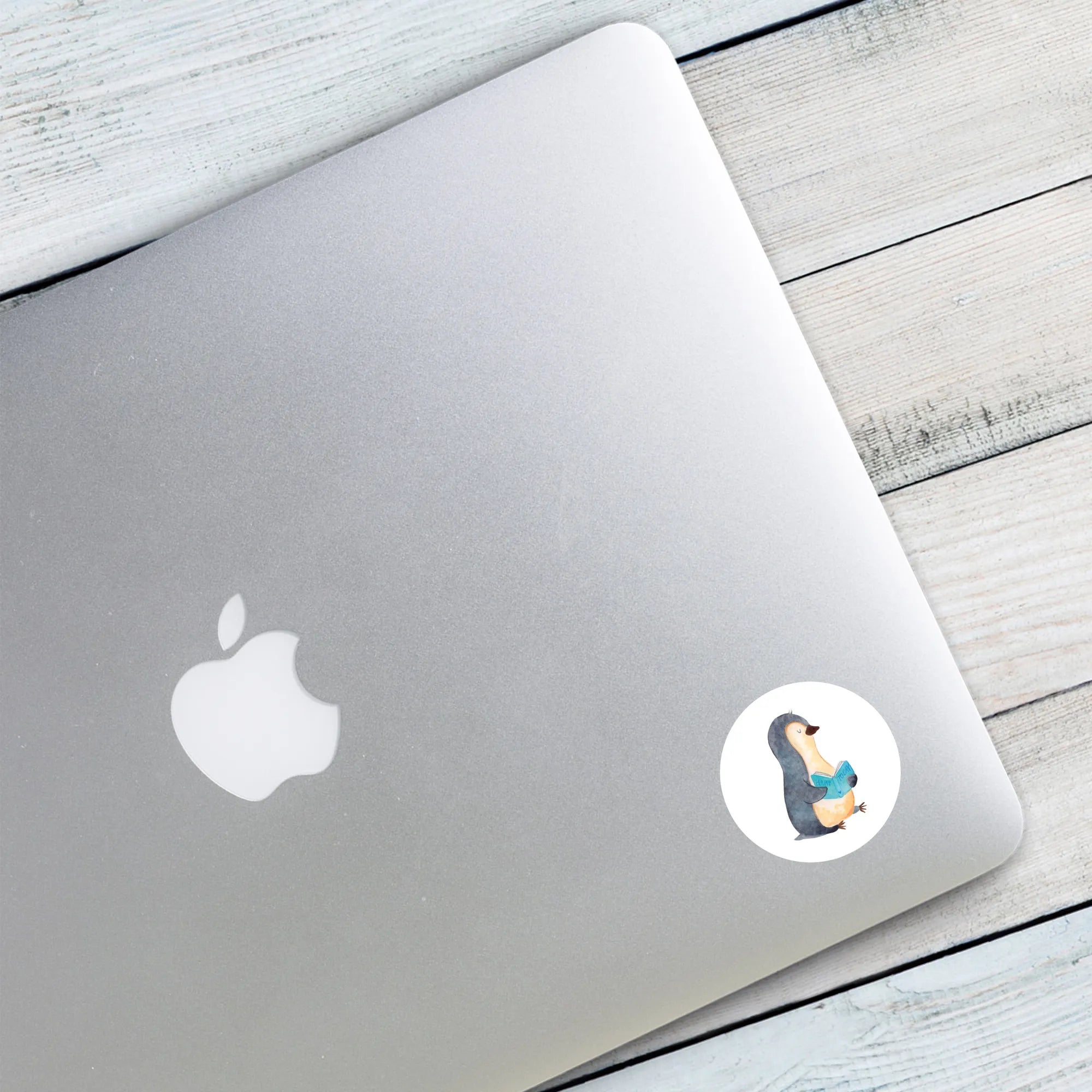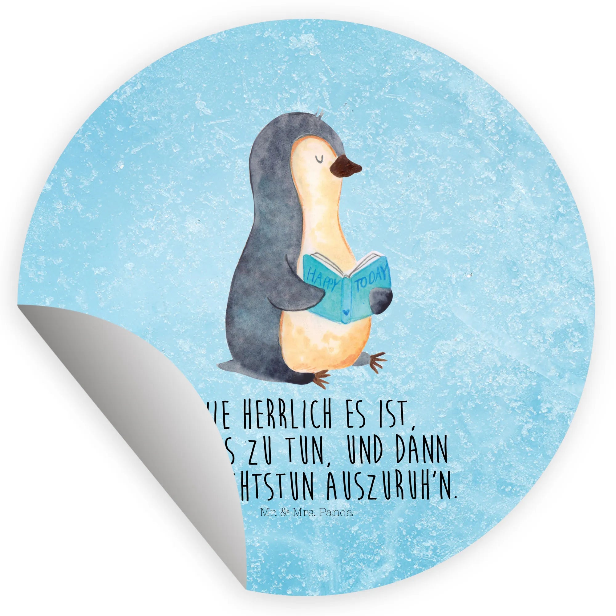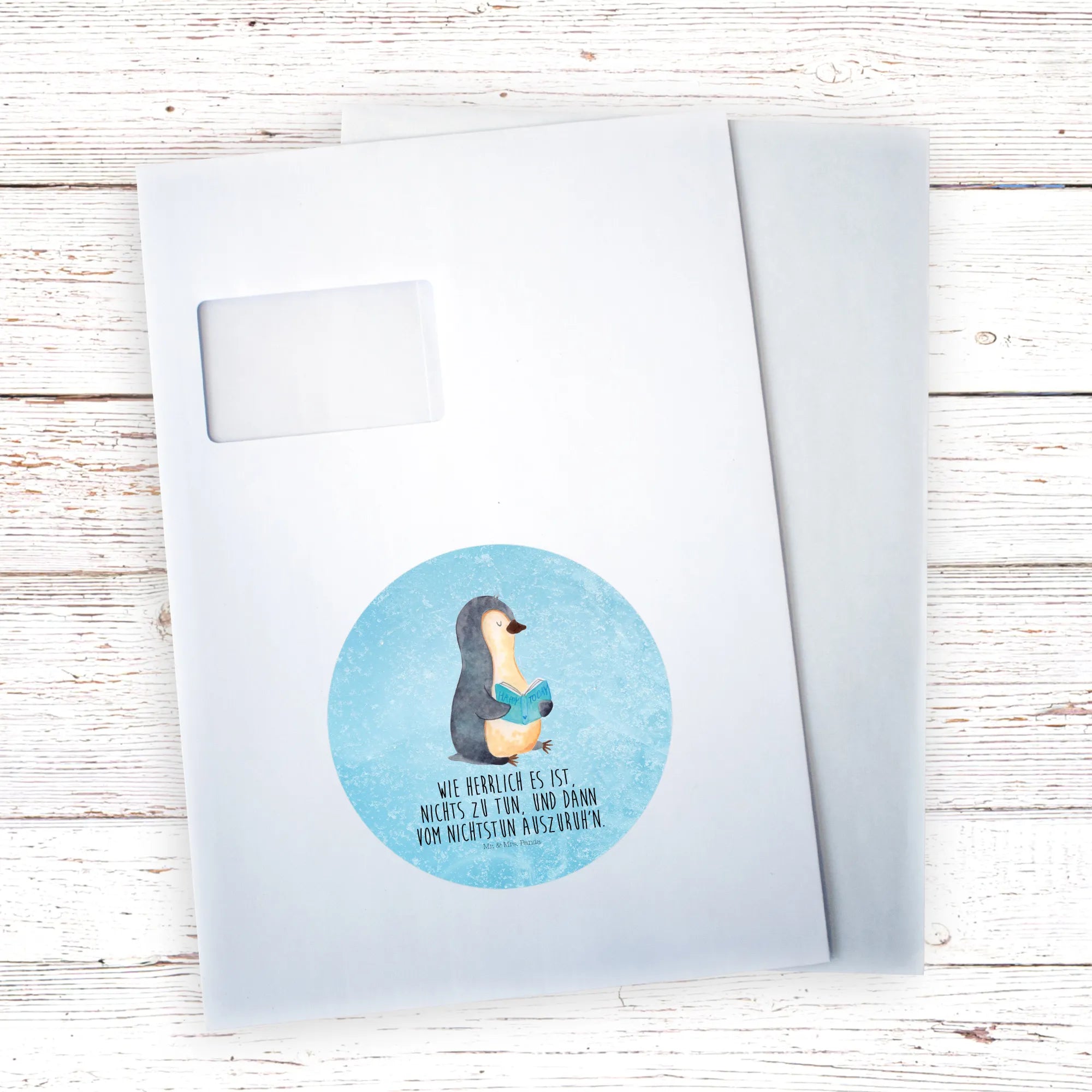 80mm okrągła naklejka pingwin książka - 80mm Rund Aufkleber - z napisem - biały