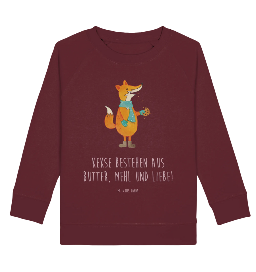 Der Organic Kinder Pullover mit dem niedlichen Fuchs Keks Motiv aus der Fuchs Kollektion von Mr. & Mrs. Panda ist das perfekte Geschenk für kleine Feinschmecker und Tierliebhaber. Die Winterzeit bringt Wärme, Freude und die Sehnsucht nach leckeren Plätzchen, und genau das spiegelt dieses Design wider! Mit dem Slogan 'Kekse bestehen aus Butter, Mehl und Liebe!' erinnert der Pullover jeden kleinen Abenteurer daran, wie viel Liebe in jedem Keks steckt. Der süße Fuchs, der voller Begeisterung einen Keks genießt, bringt nicht nur gute Laune, sondern auch jede Menge Gemütlichkeit in den Kleiderschrank.
