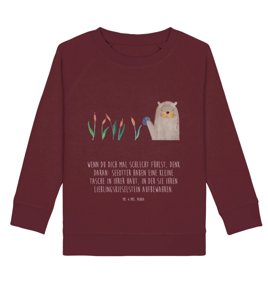 Organic Kinder Pullover Otter mit Stein - 12-14 Jahre (152/164) - mit Spruch - Burgundy