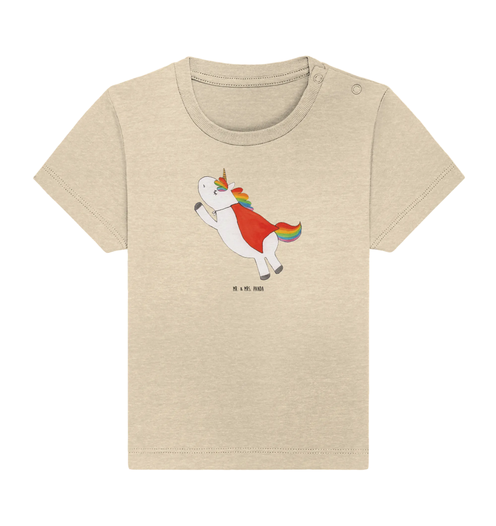 Dieses Shirt aus 100 % Bio-Baumwolle ist sanft zur empfindlichen Babyhaut und bietet höchsten Tragekomfort. Es eignet sich ideal für Neugeborene und hält sie gemütlich und stilvoll. Das tolle Design ist liebevoll von Mrs. Panda handgezeichnet und spiegelt die fröhliche und bunte Welt der Einhörner wider, die wir alle so lieben.