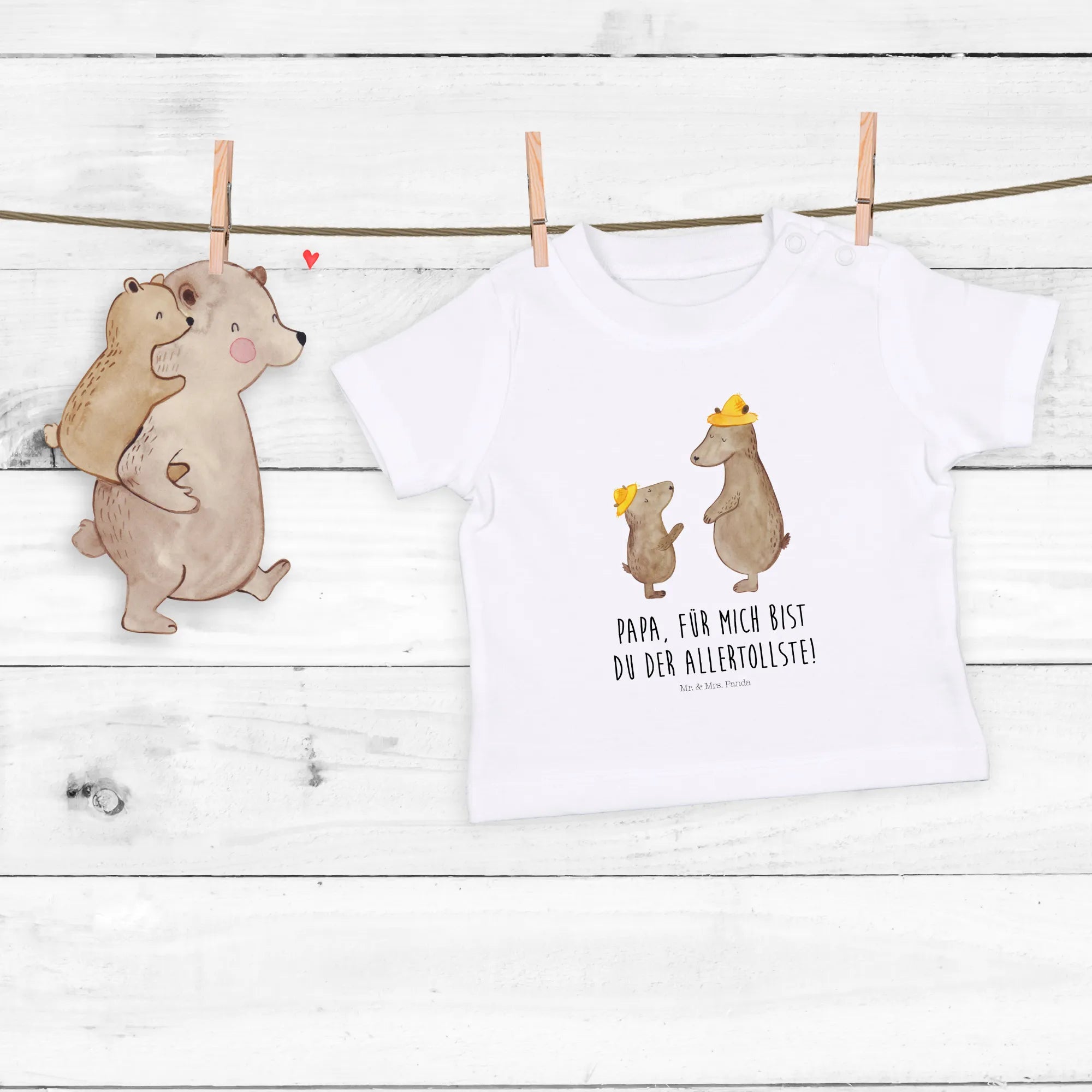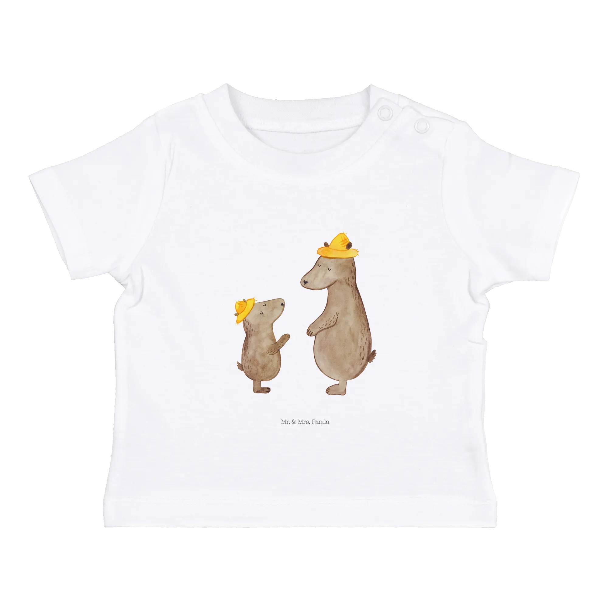 Organiczna koszulka dla niemowląt Niedźwiedzie z kapeluszami - 0. - 6. miesiąc - z napisem