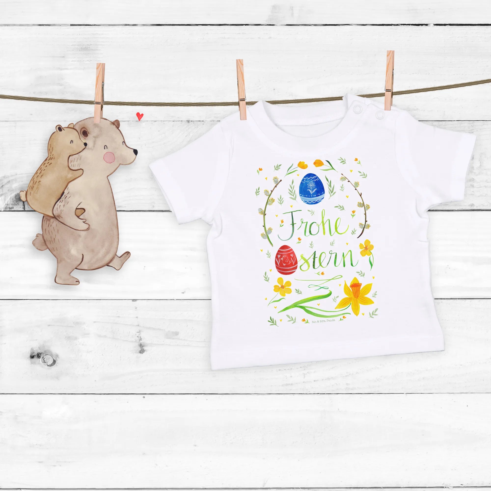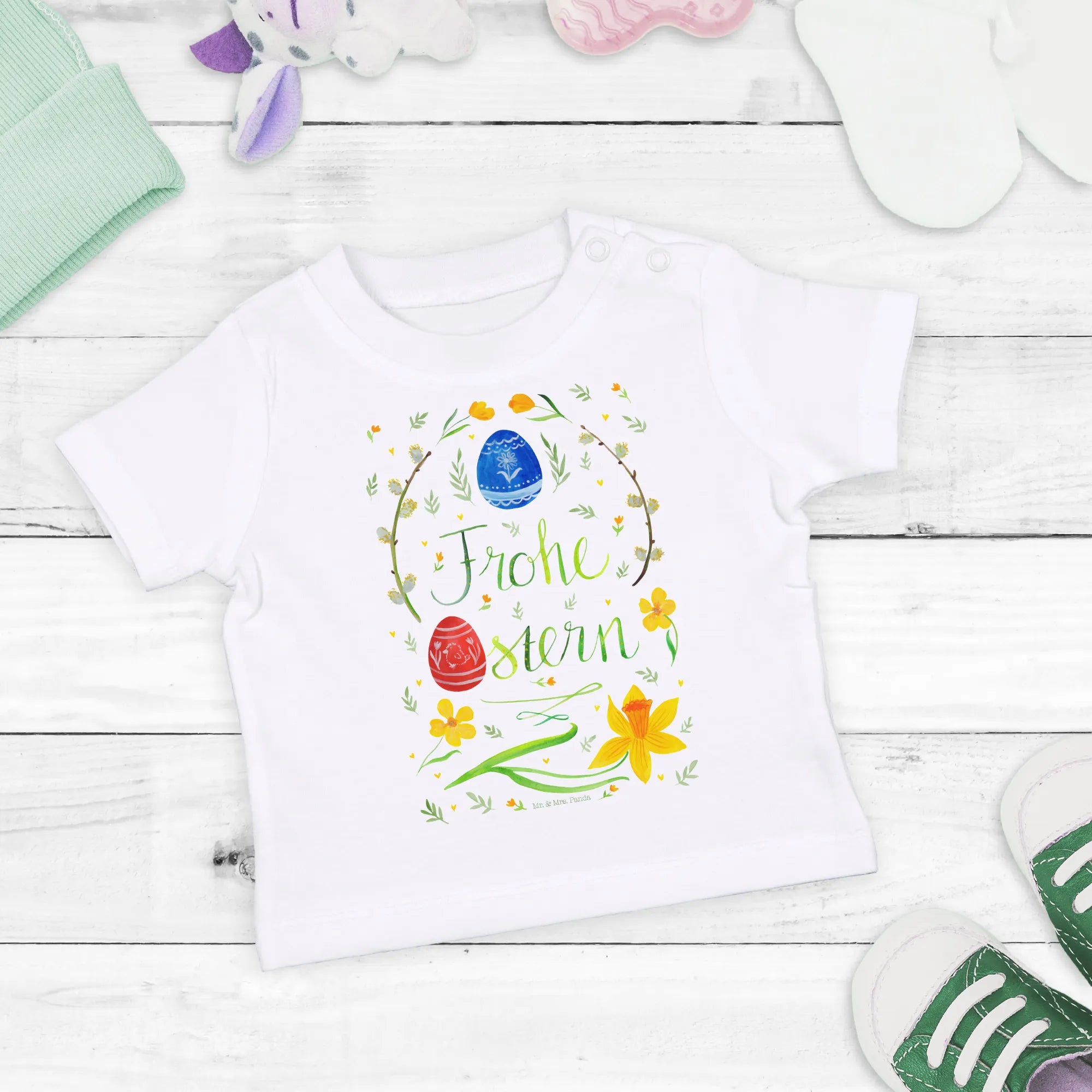 Organiczna koszulka dla niemowląt Wielkanoc Wesołych Świąt Wielkanocnych - 6. - 12. Monat - z napisem
