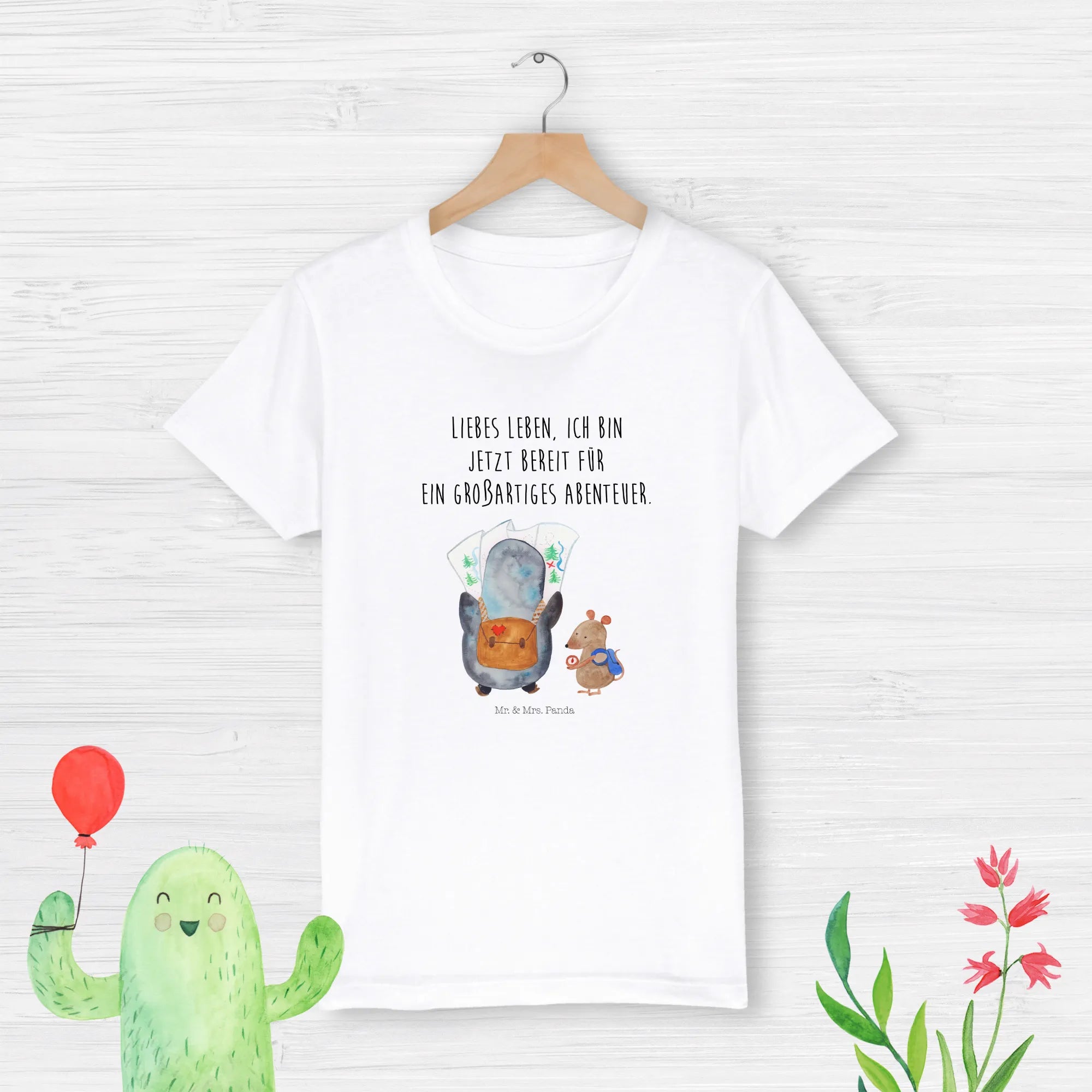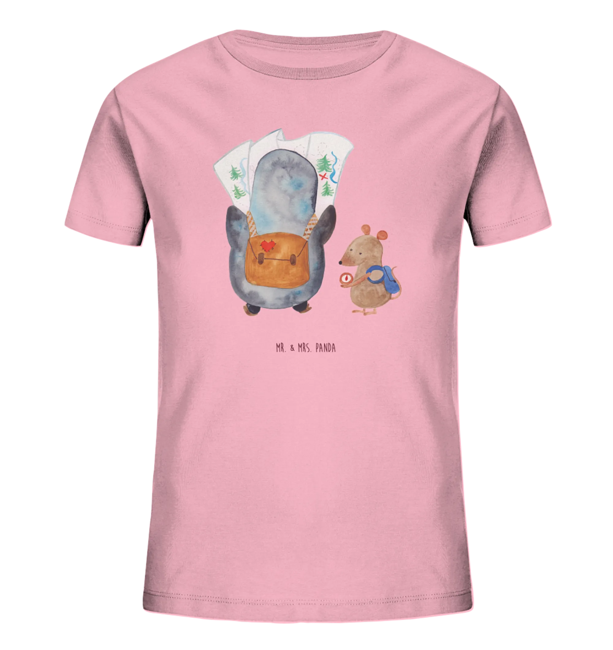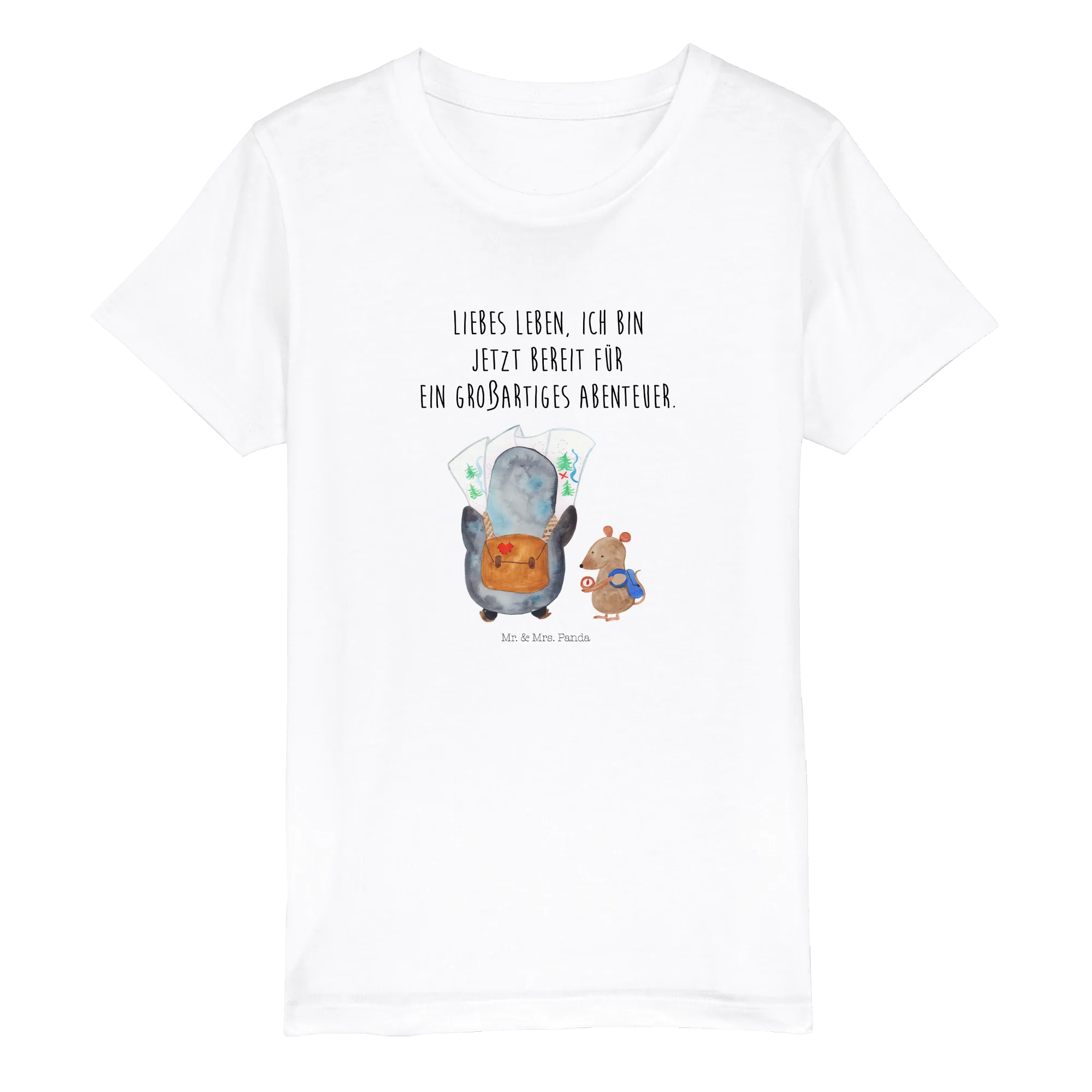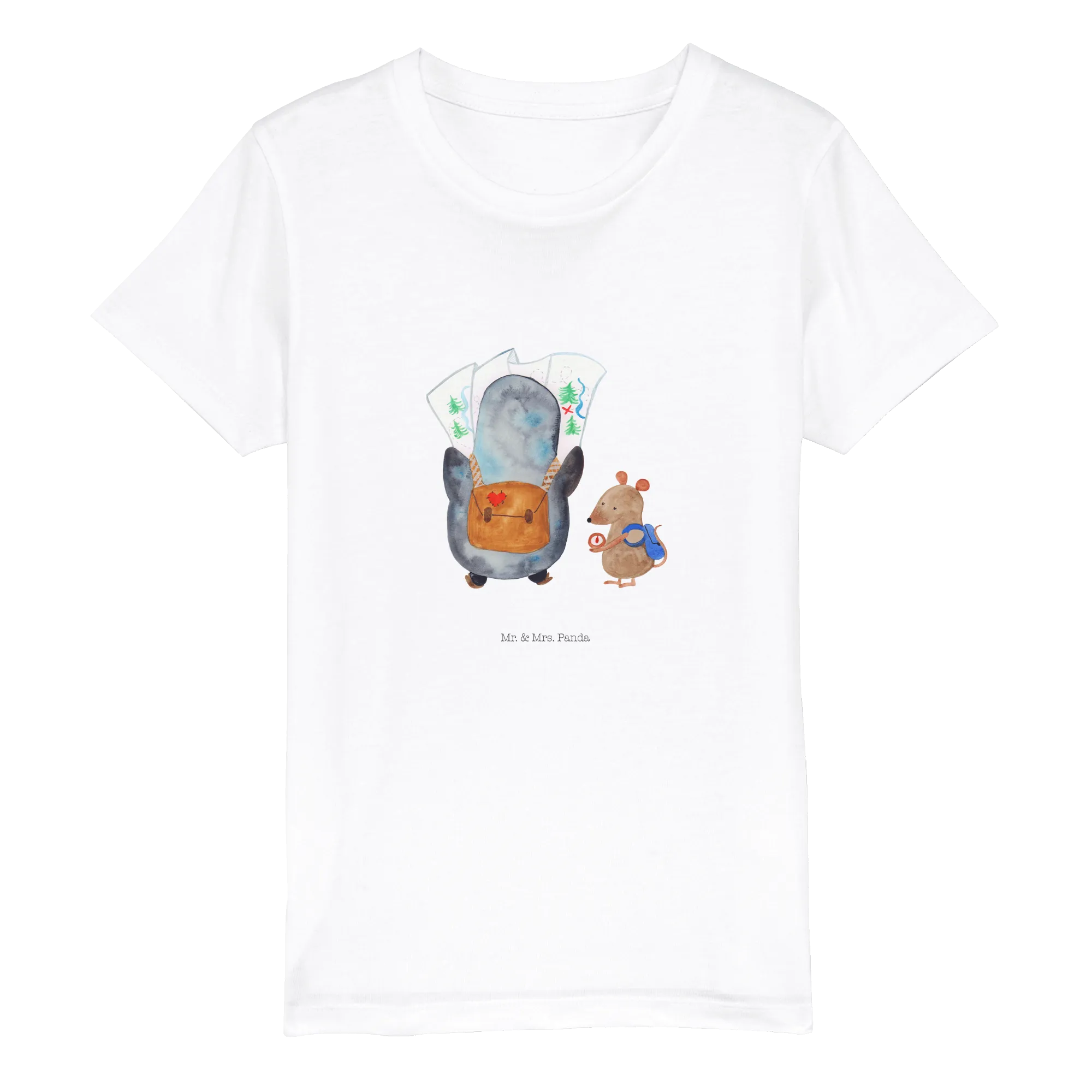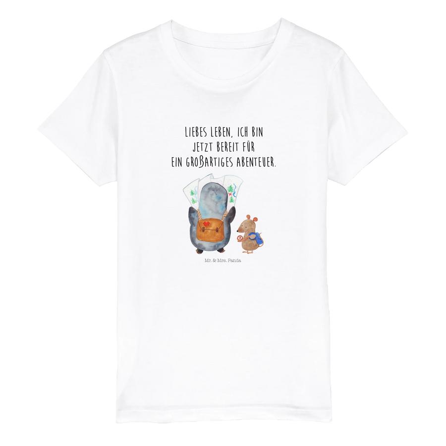 Organiczna koszulka dziecięca Pingwin i Mysz Wędrowcy - 12-14 lat (152/164) - z napisem - biały
