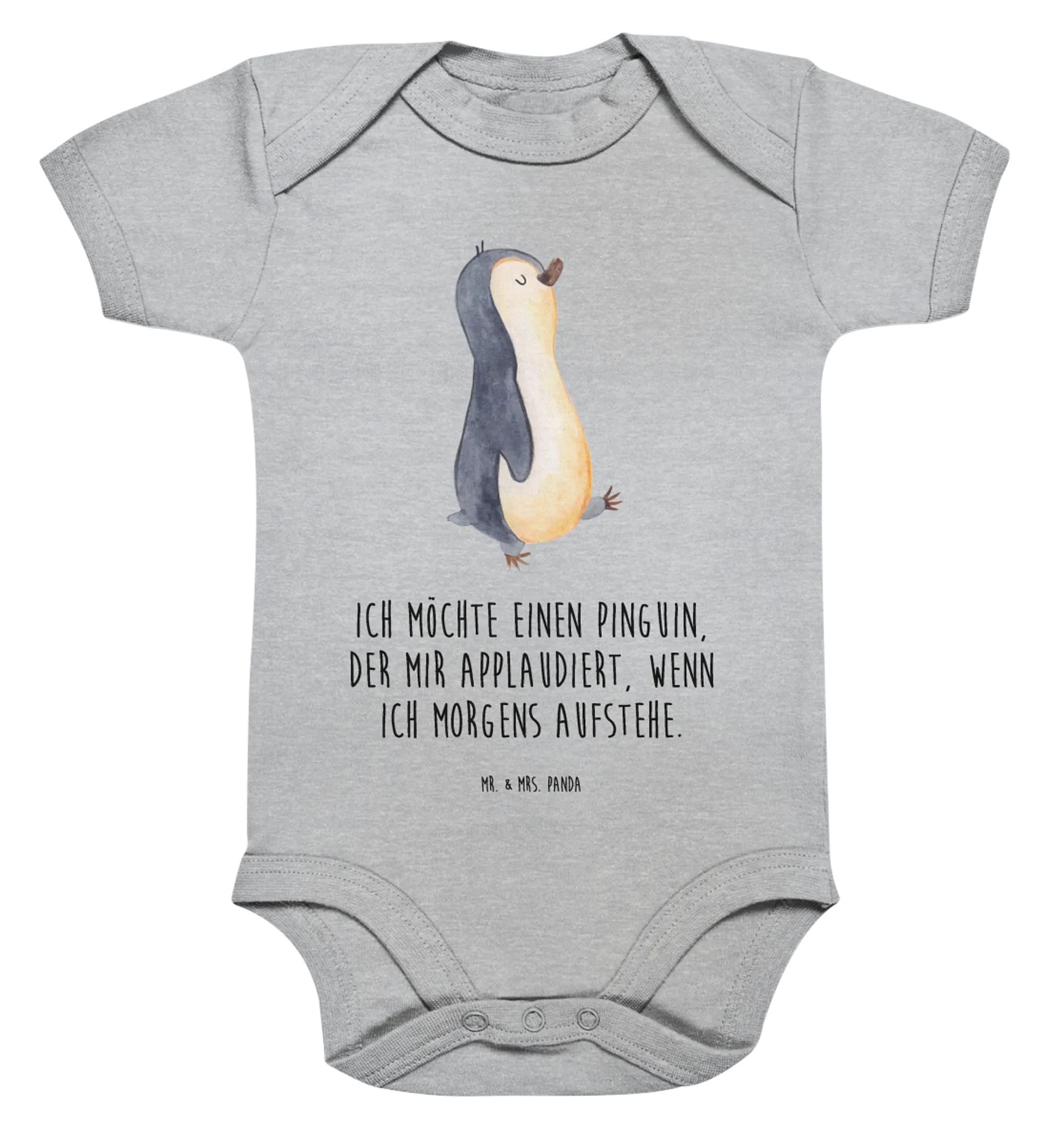 Organiczne body dla niemowląt Pingwin maszerować - 3. - 6. Monat - z napisem - Heather Grey