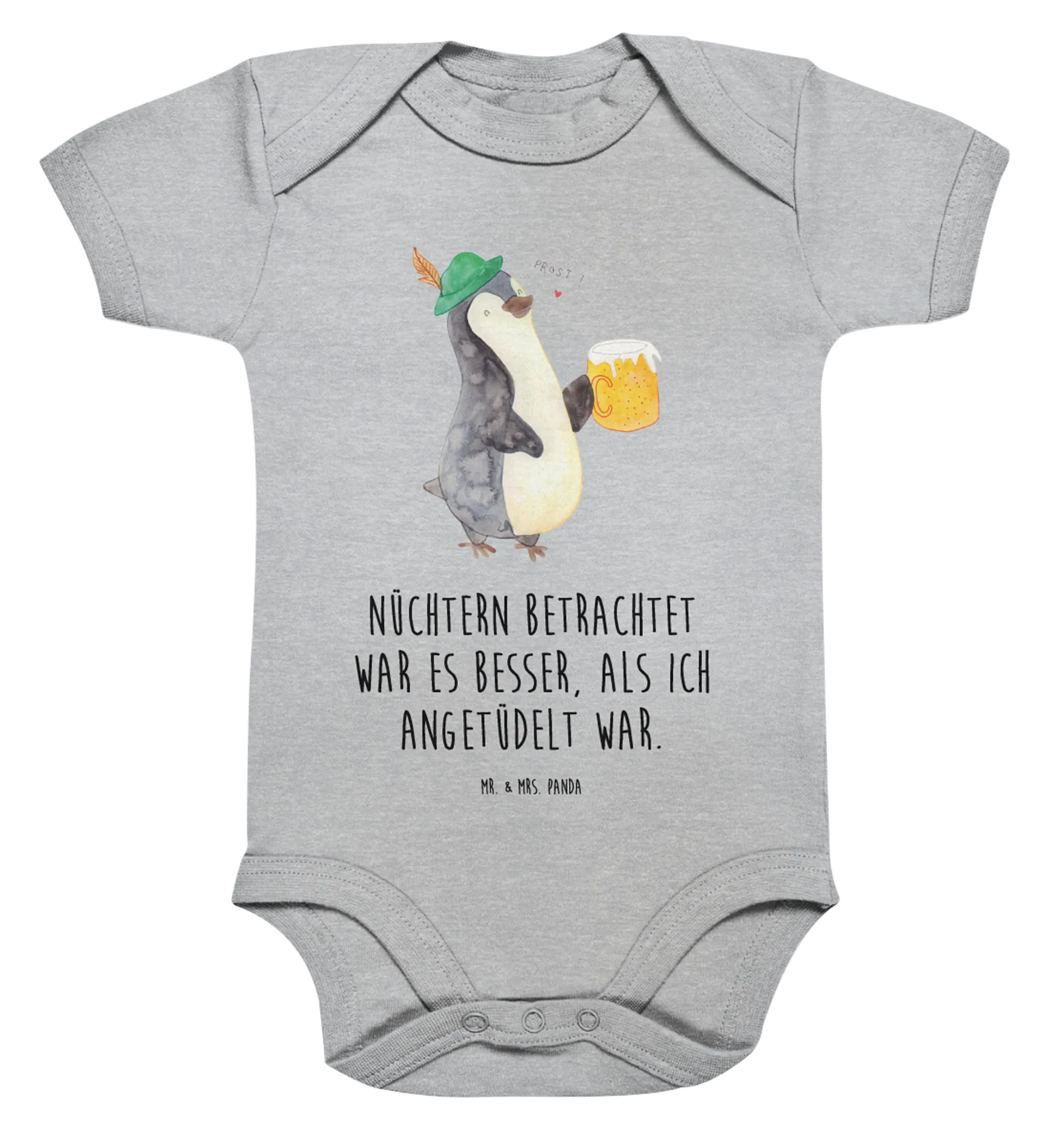 Organiczne body dla niemowląt pingwin piwo - 3. - 6. Monat - z napisem