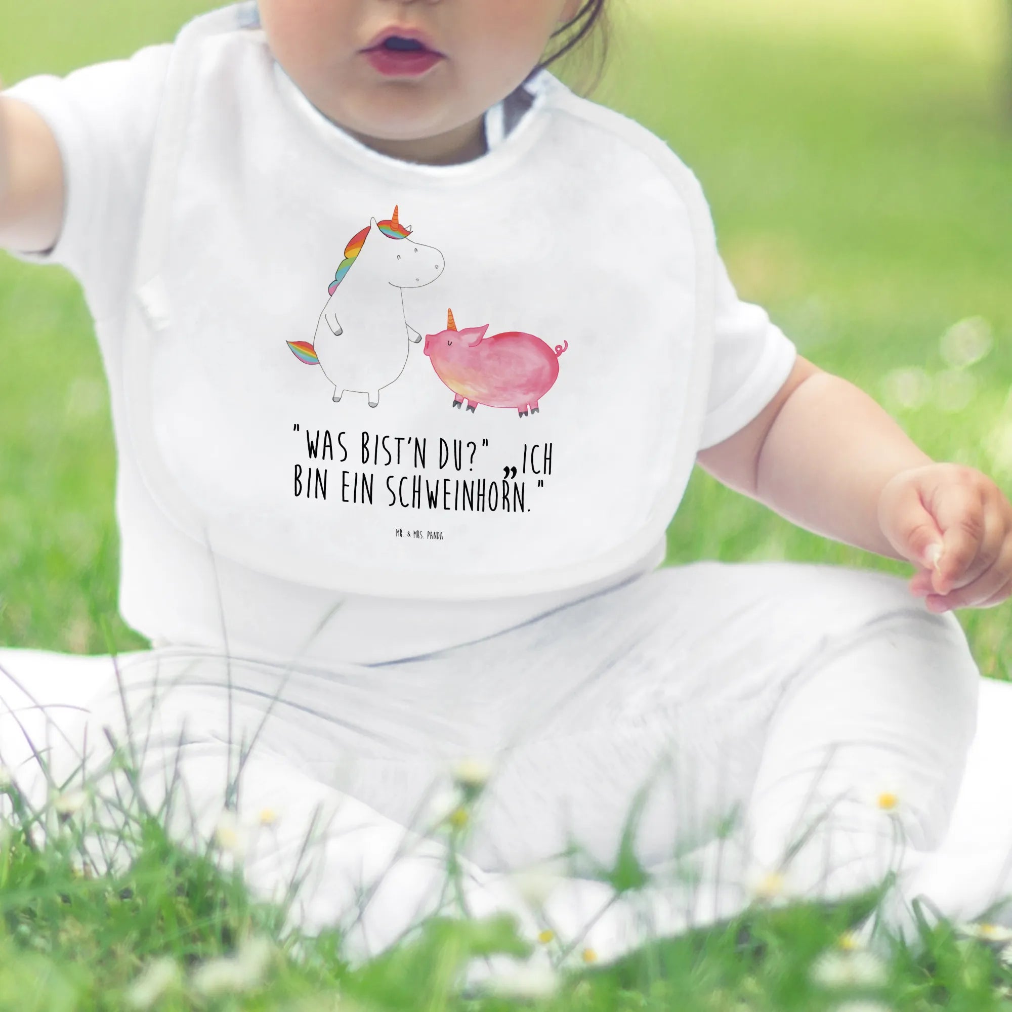 Entdecke die magische Welt der Einhörner mit unserem Organic Babylätzchen Einhorn + Schweinhorn aus der besonderen Einhorn-Kollektion von Mr. & Mrs. Panda!