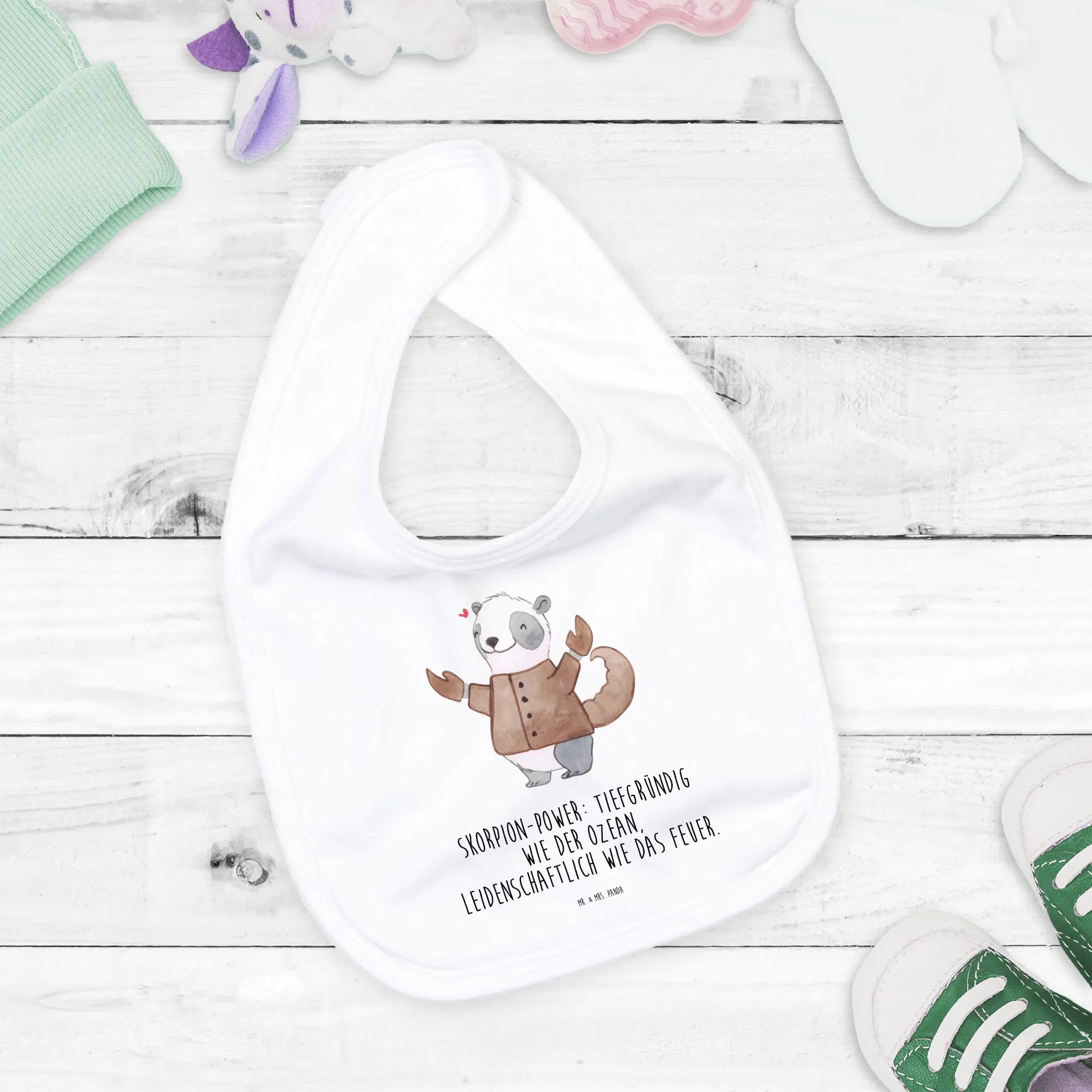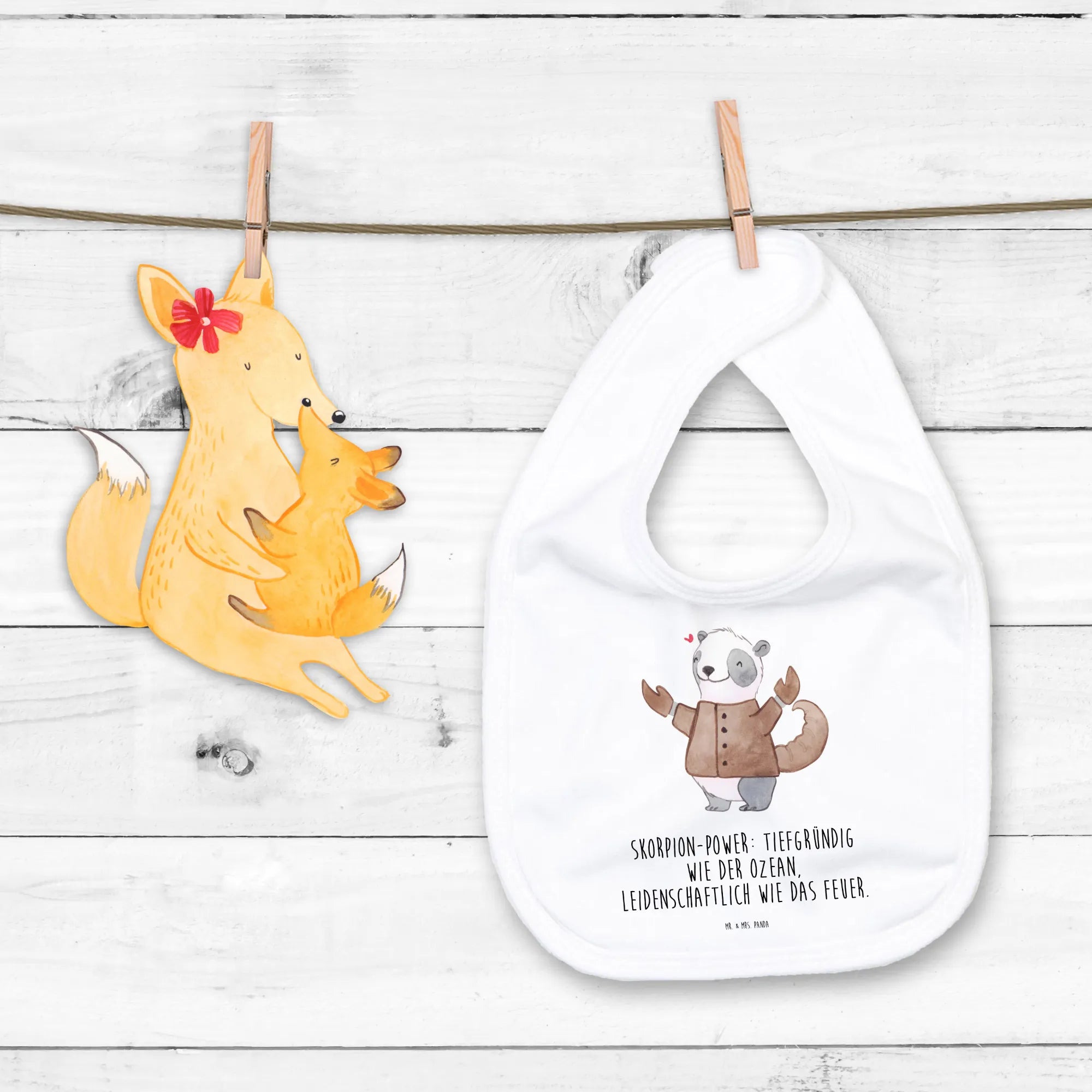 Mit dem Slogan "Skorpion-Power: Tiefgründig wie der Ozean, leidenschaftlich wie das Feuer", wird dieses Lätzchen zum perfekten Geschenk für die nächste Babyparty oder zur Geburt eines kleinen Skorpions.