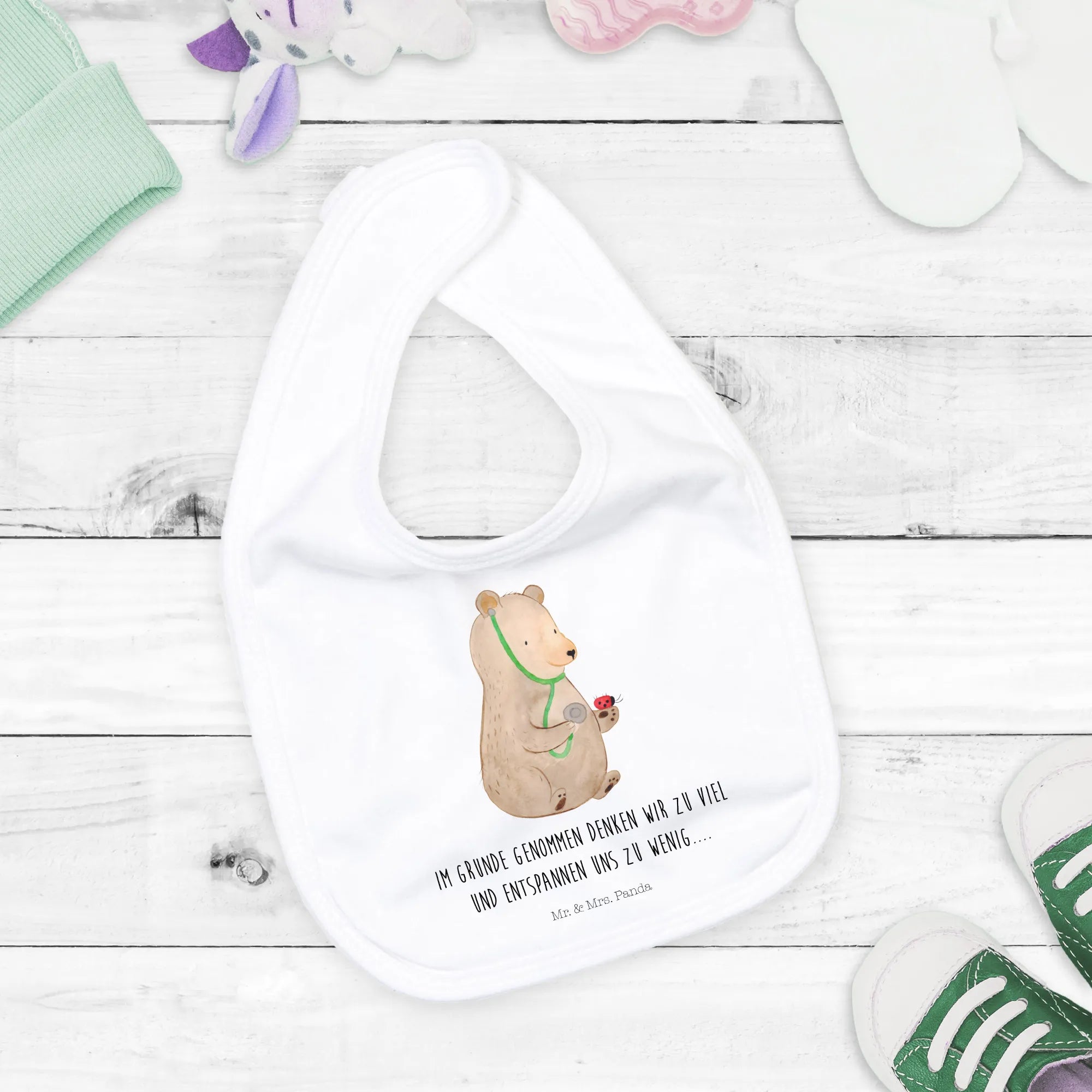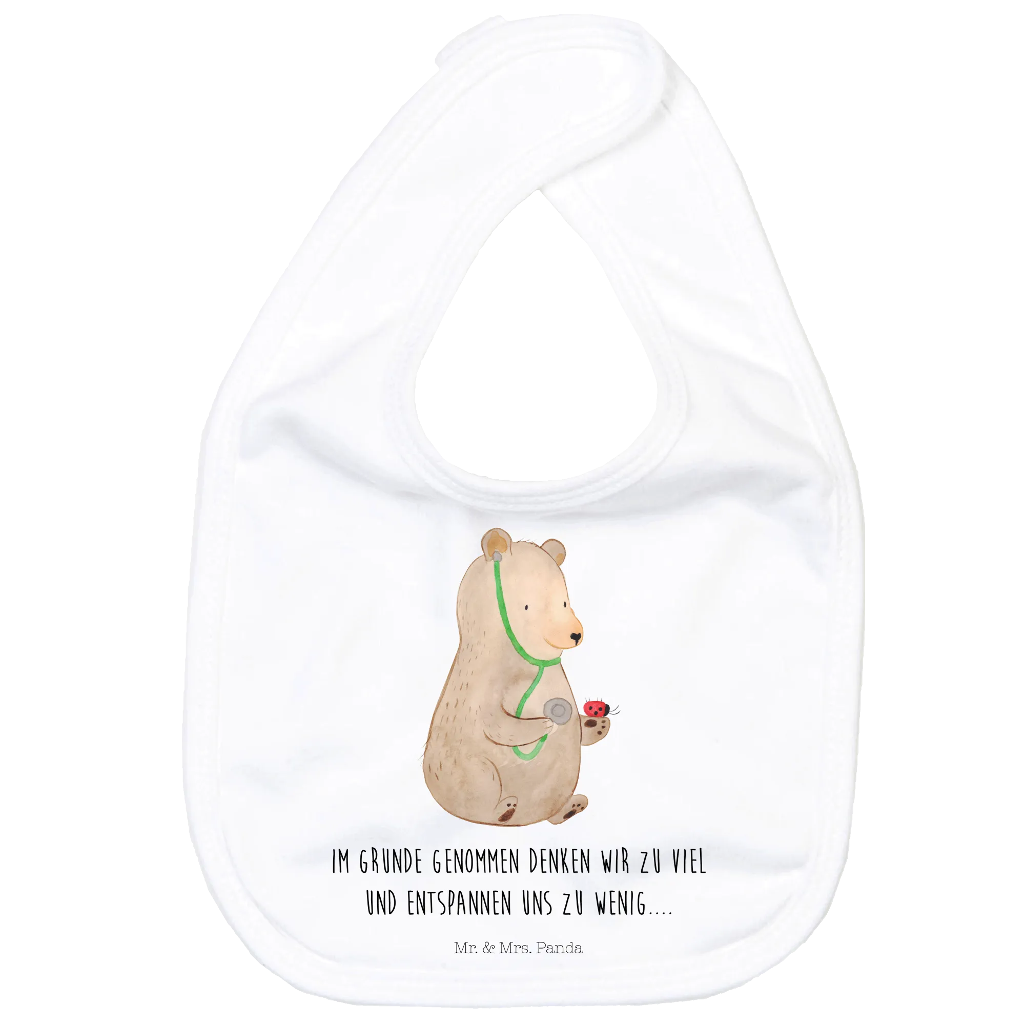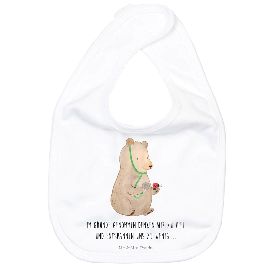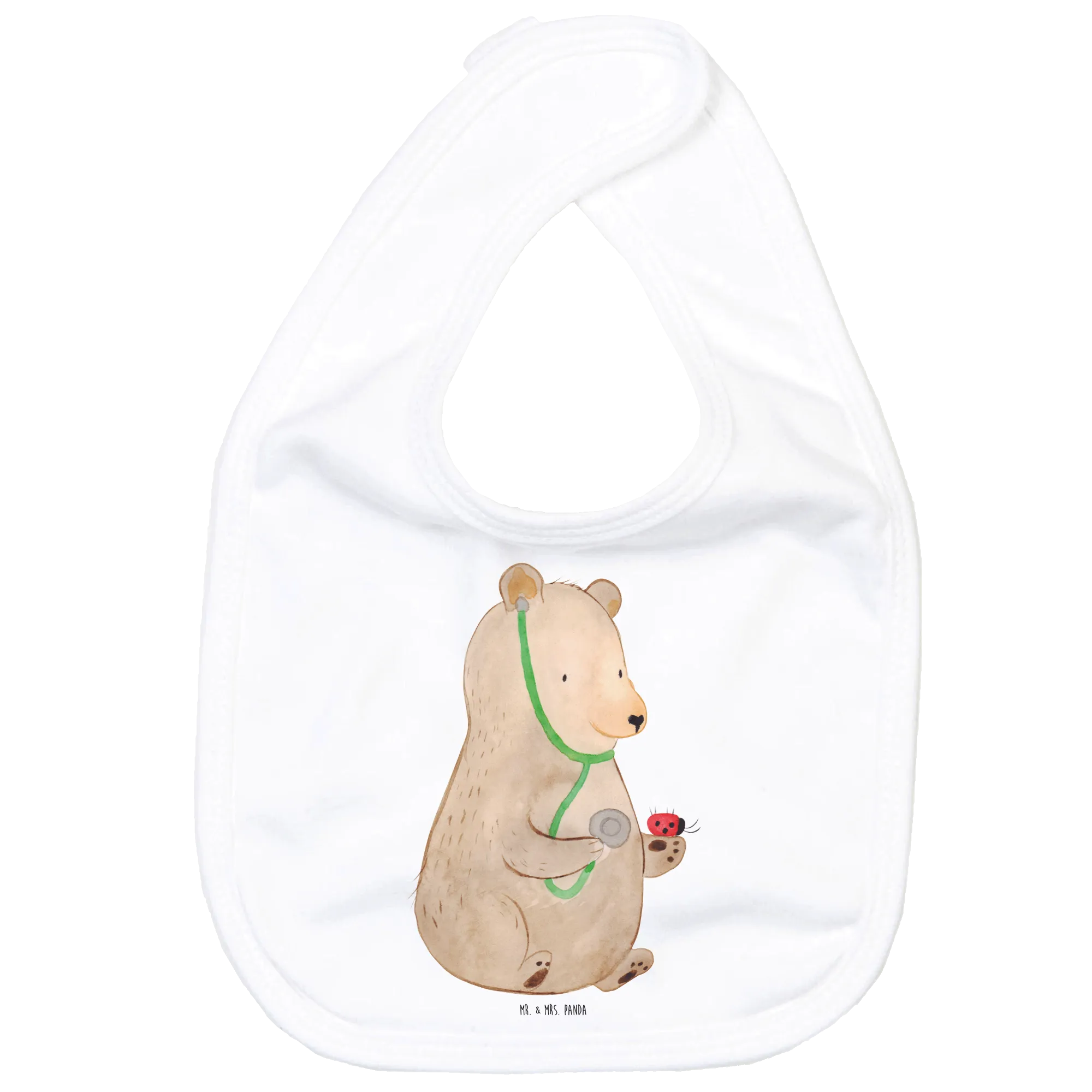 Entdecke das zauberhafte Organic Babylätzchen mit dem süßen Motiv des Bär Arztes!