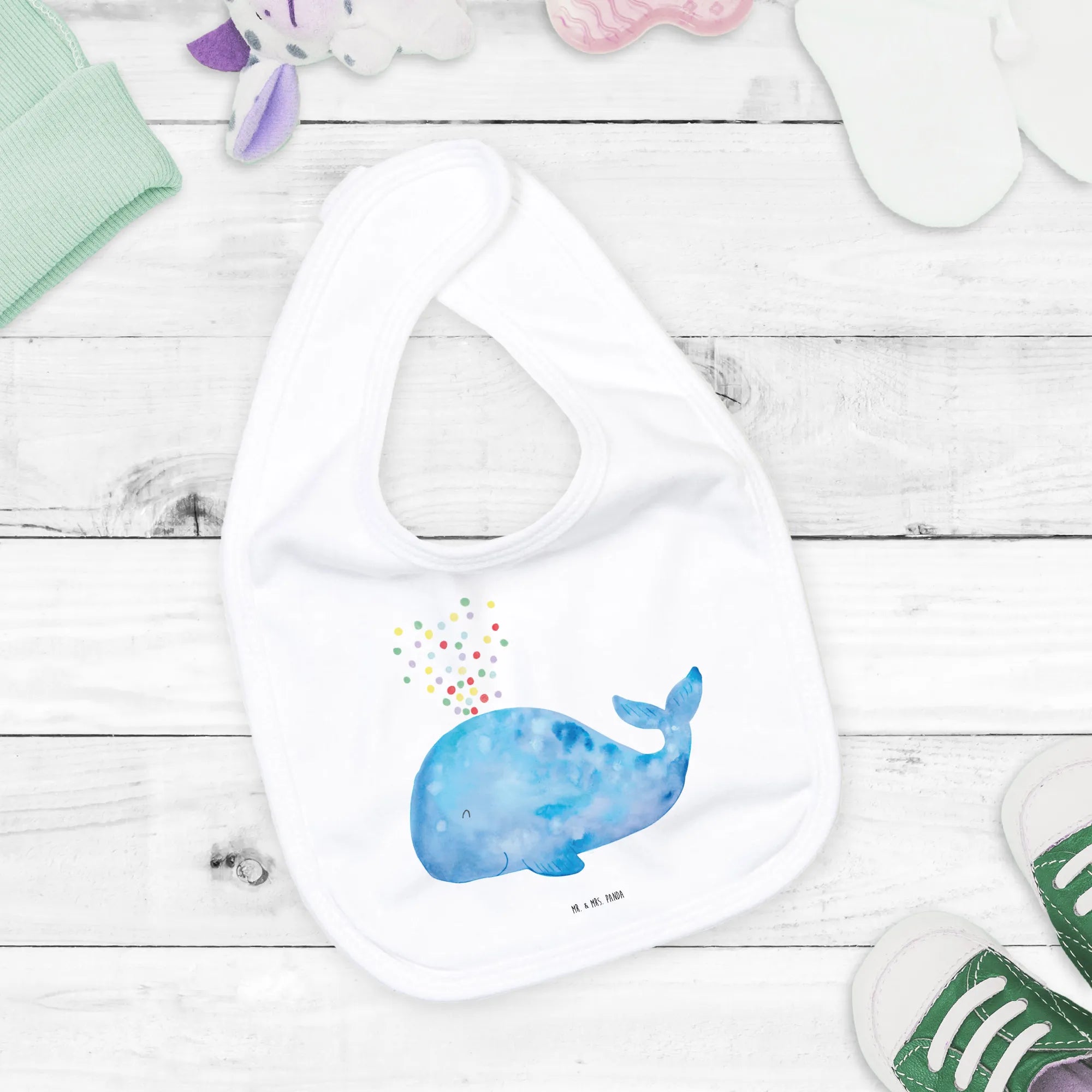 Organiczne śliniaczki wieloryb konfetti - z napisem