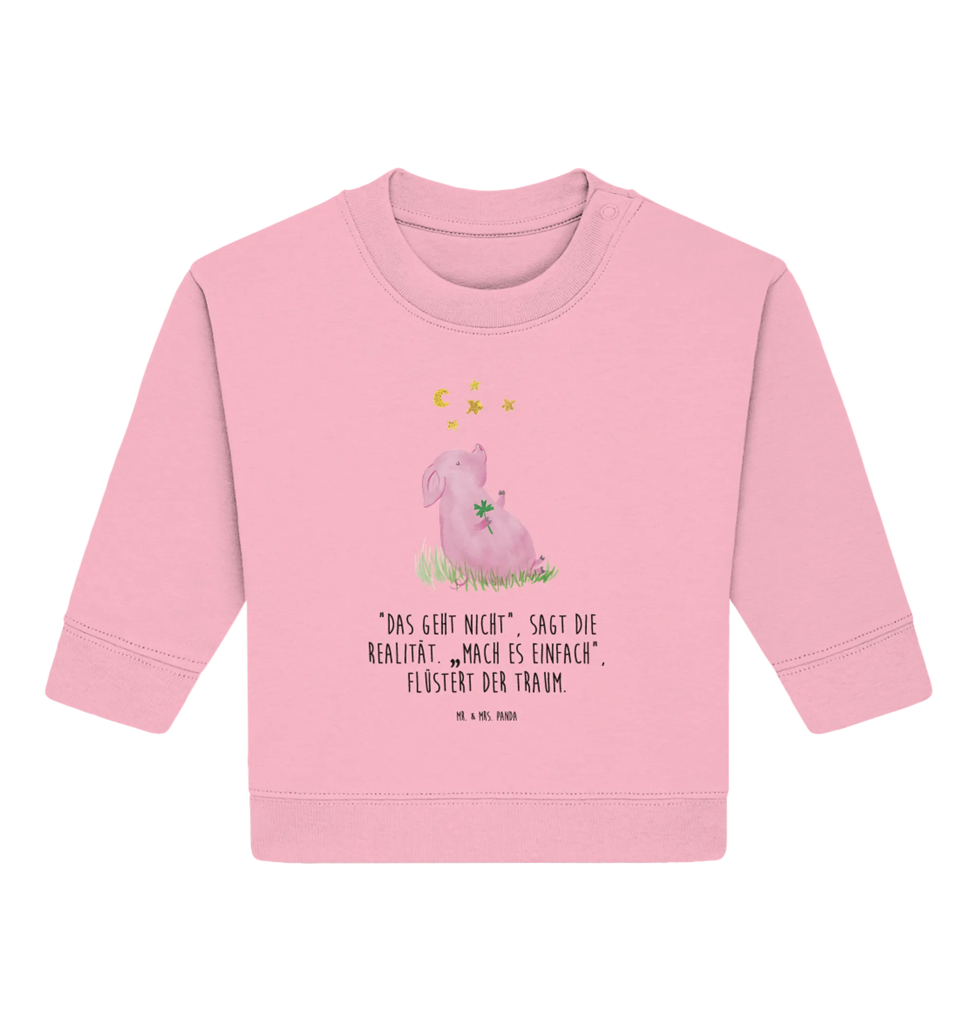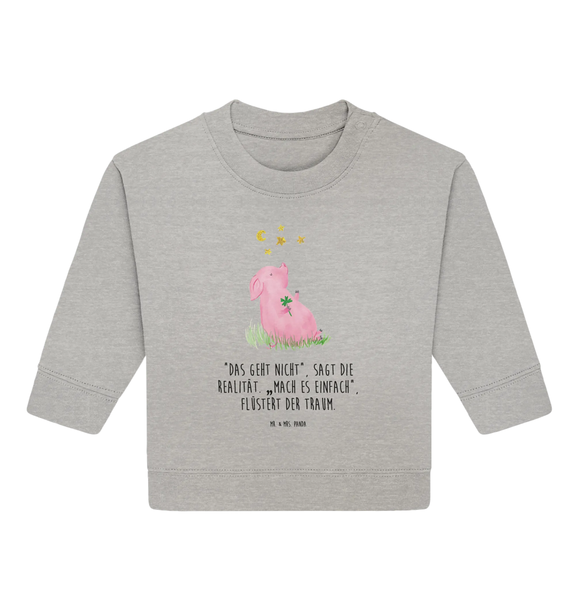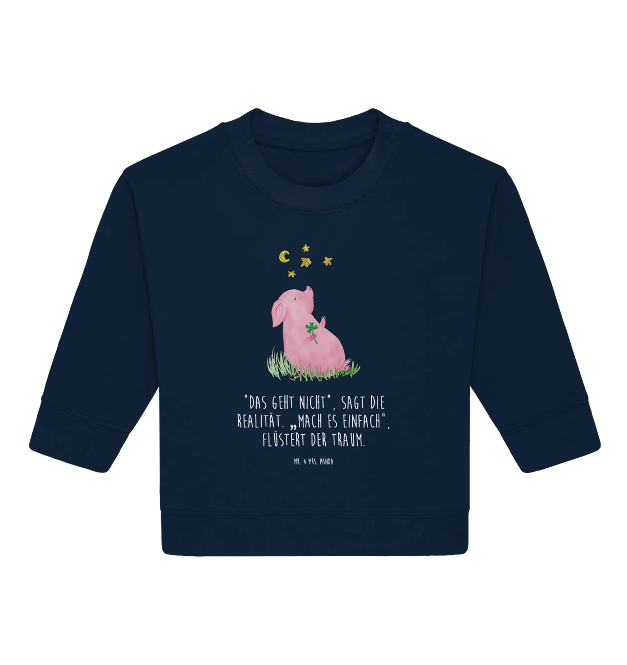 Umarme das Glück und schenke Freude durch unseren Organic Baby Pullover mit Glücksschwein. Es ist das perfekte Geschenk für kleine Träumer und große Glücksbringer!