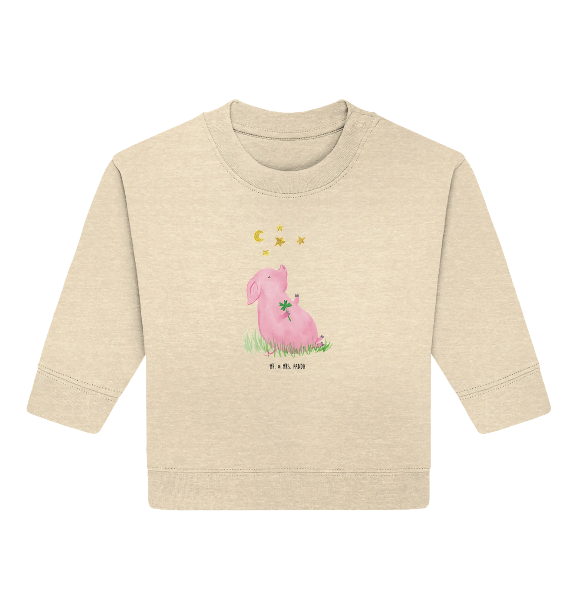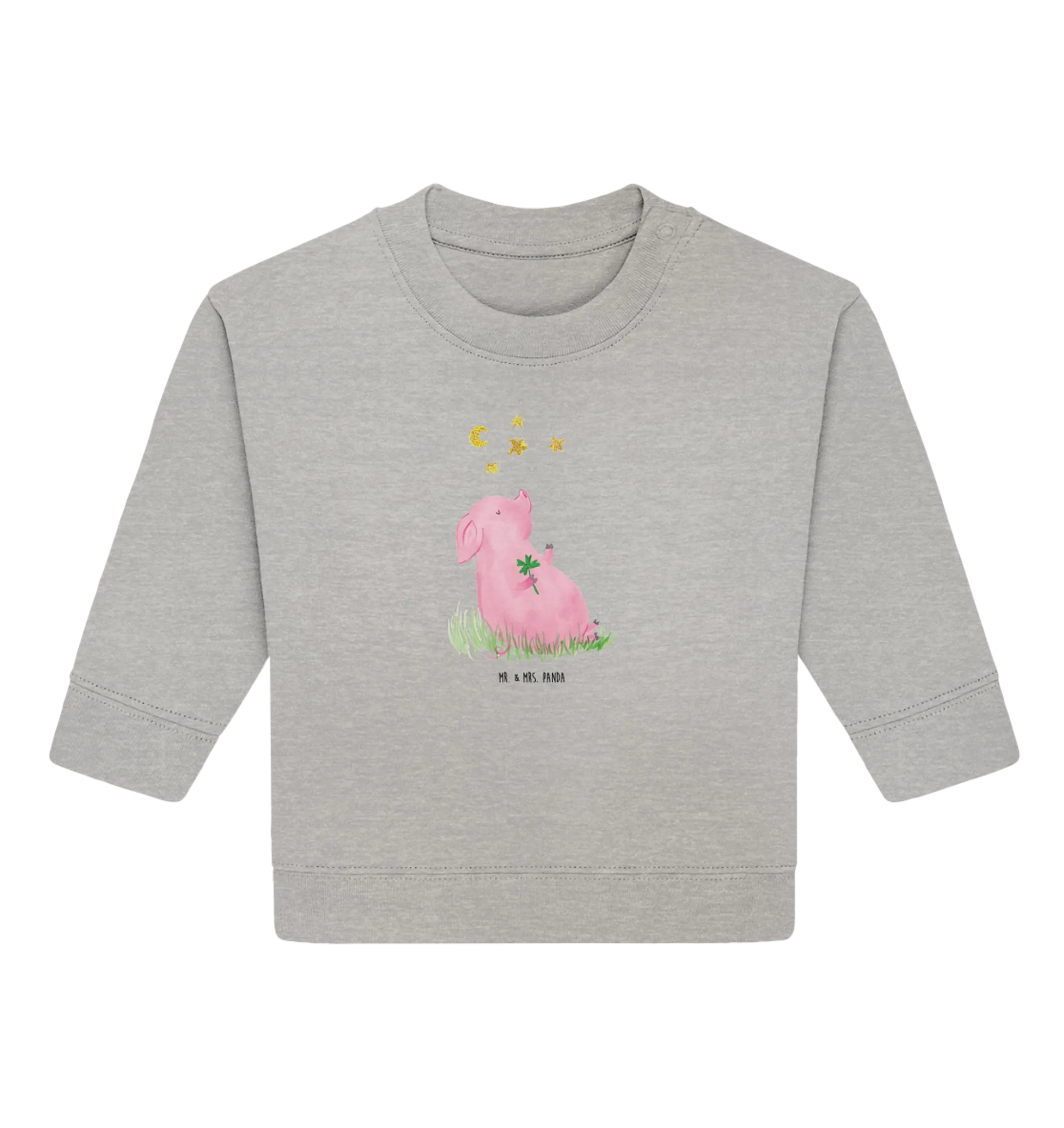 Du bist auf der Suche nach einem perfekten Geschenk für dein kleines Glück? Dann ist der Organic Baby Pullover mit dem fröhlichen Glücksschwein von Mr. & Mrs. Panda genau das richtige für dich! 🐷