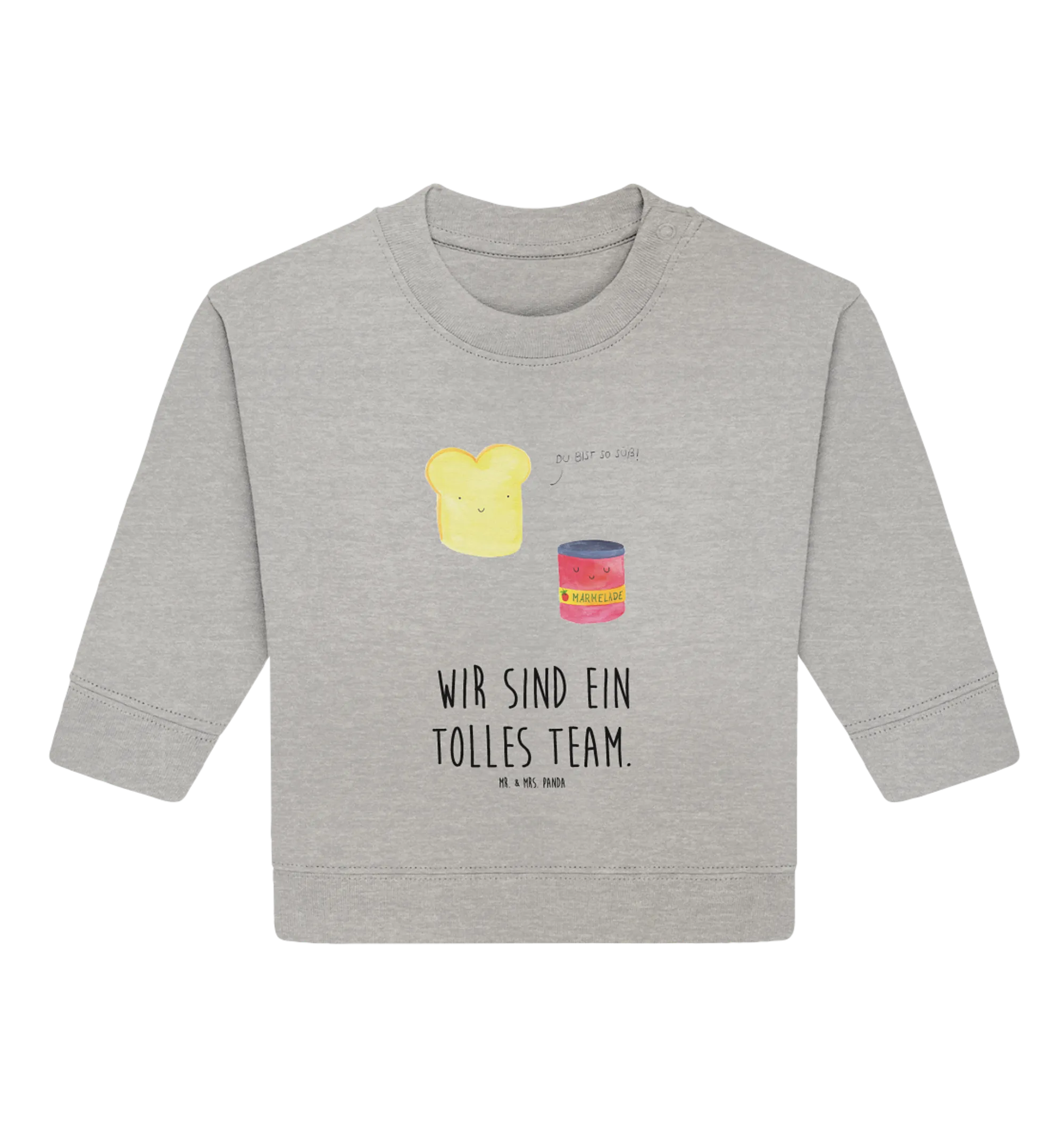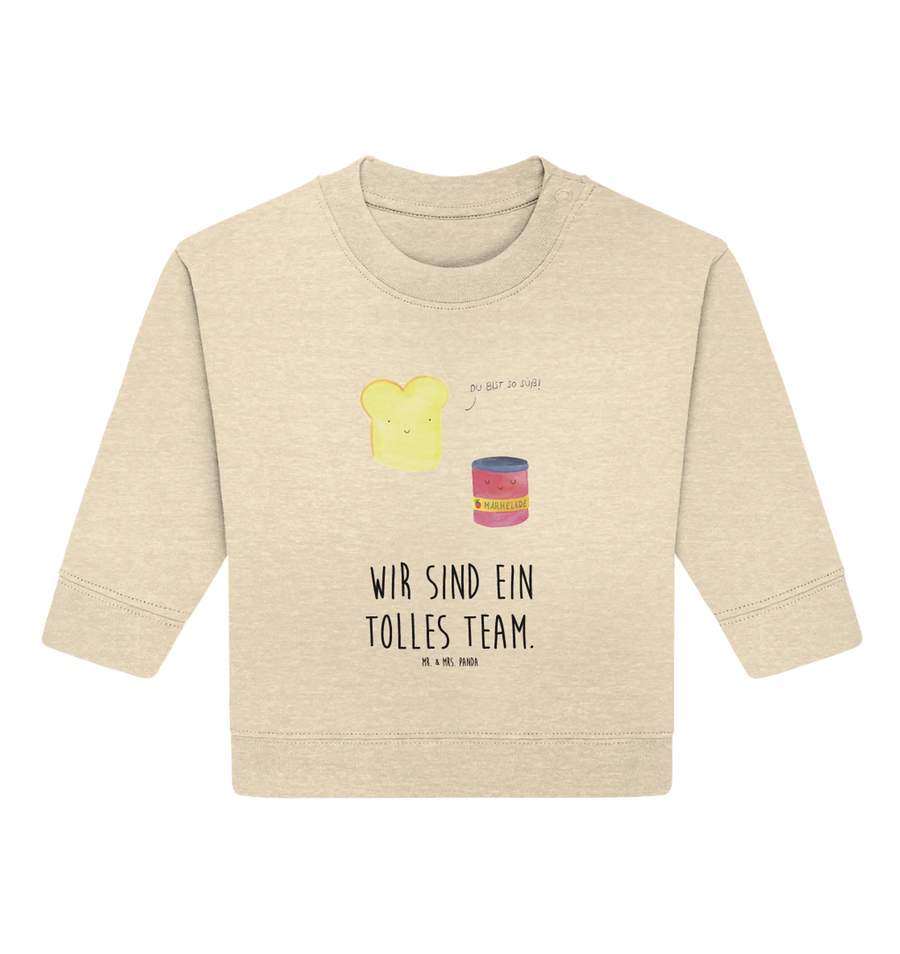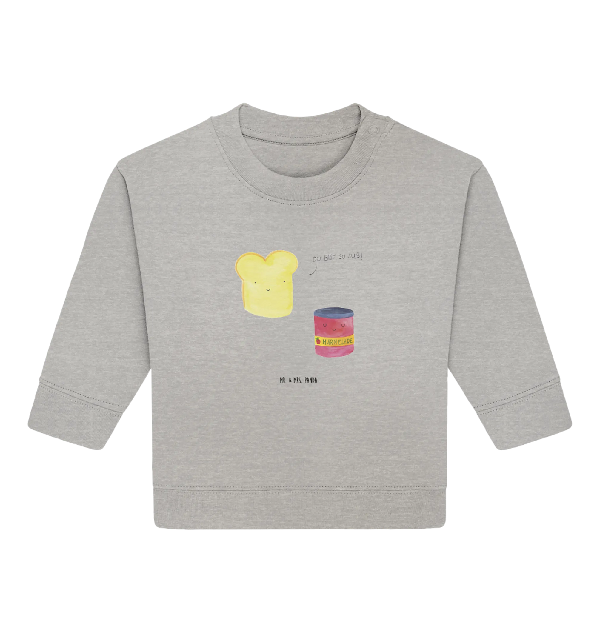 \nOb für ein süßes Fotoshooting, als besonderes Outfit für ein Familienfest oder einfach zum Kuscheln – der Baby Pullover mit Toast & Marmelade ist für jeden Anlass geeignet! Und das Beste daran? Du kannst sicher sein, dass du mit einem Produkt von Mr. & Mrs. Panda ein Geschenk für die Ewigkeit wählst. Hier wird Lächeln großgeschrieben! Verleihe mit diesem Pullover jedem Frühstück einen Hauch von Gemütlichkeit und Kindheitserinnerungen.