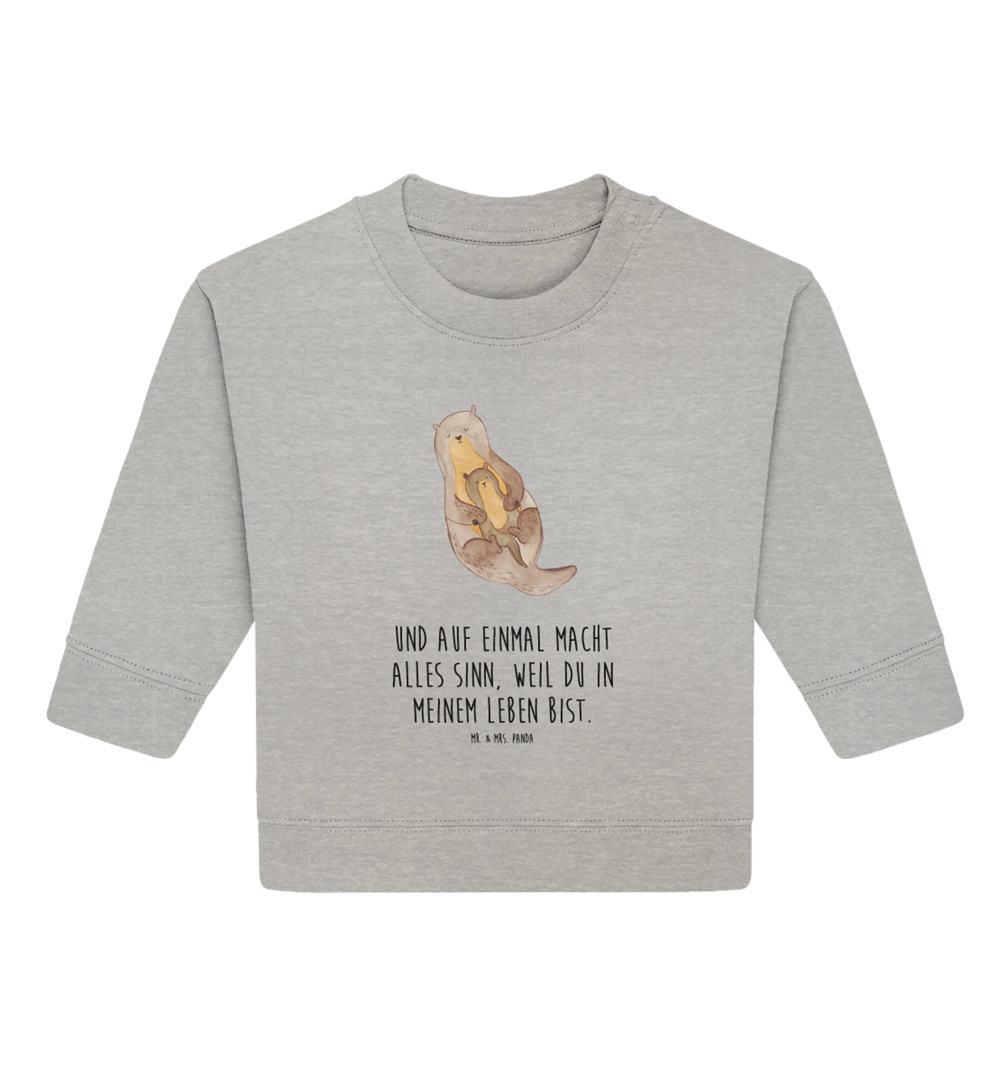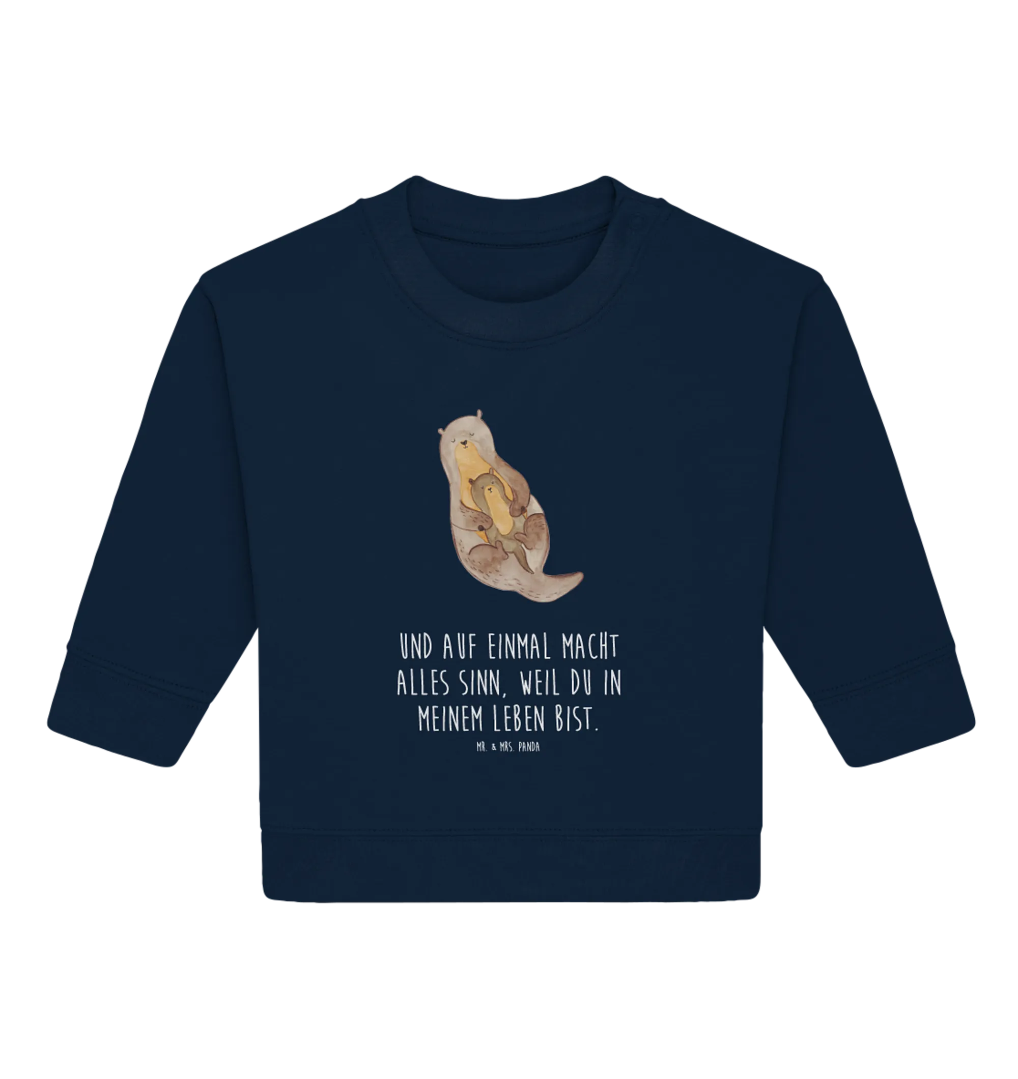 Schließe die Augen und stelle dir vor, wie es ist, wenn du mit deinem Kind auf dem Bauch gemütlich kuschelst. Der süße Otter mit Kind von Mr. & Mrs. Panda besiegelt dieses Glücksgefühl in einem niedlichen Motiv. Der kleine Otter schmiegt sich liebevoll und sicher an seinem Elternteil. Dieses bezaubernde Design ist nicht nur ein echter Hingucker, sondern hat auch eine tiefere Bedeutung: "Und auf einmal macht alles Sinn, weil du in meinem Leben bist." Dieses Wortspiel auf dem Babypullover bringt zum Ausdruck, wie wertvoll die Bindung zwischen dir und deinem kleinen Liebling ist.
