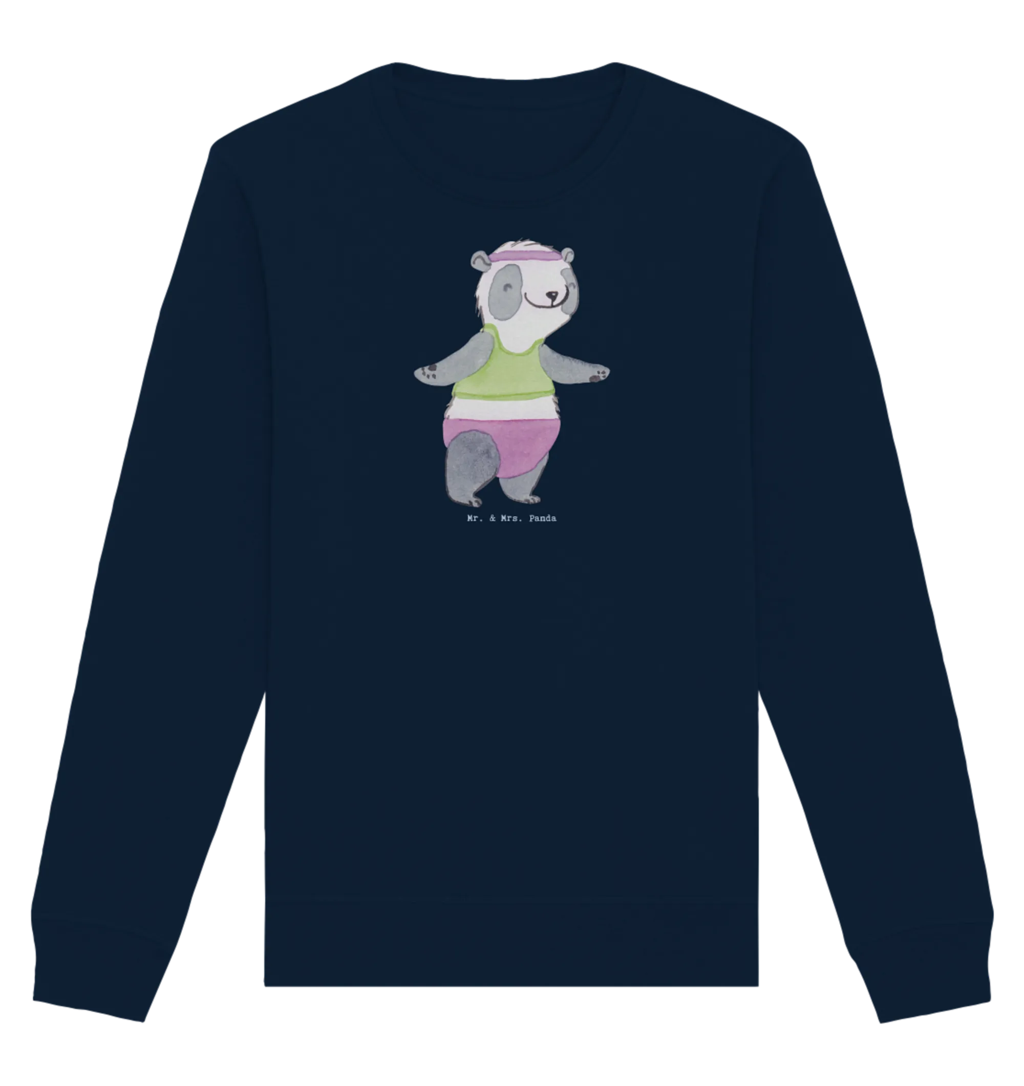 Mr. & Mrs. Panda Organic Pullover „Panda Aerobic Medizin“ – das liebevoll gestaltete Lieblingsstück für Sportfans und Umweltfreunde. Auf French Navy leuchtet ein fröhlicher Panda in Aerobic-Kleidung und verbreitet gute Laune – ideal für alle, die Fitness, Hobby und nachhaltige Mode miteinander verbinden möchten.