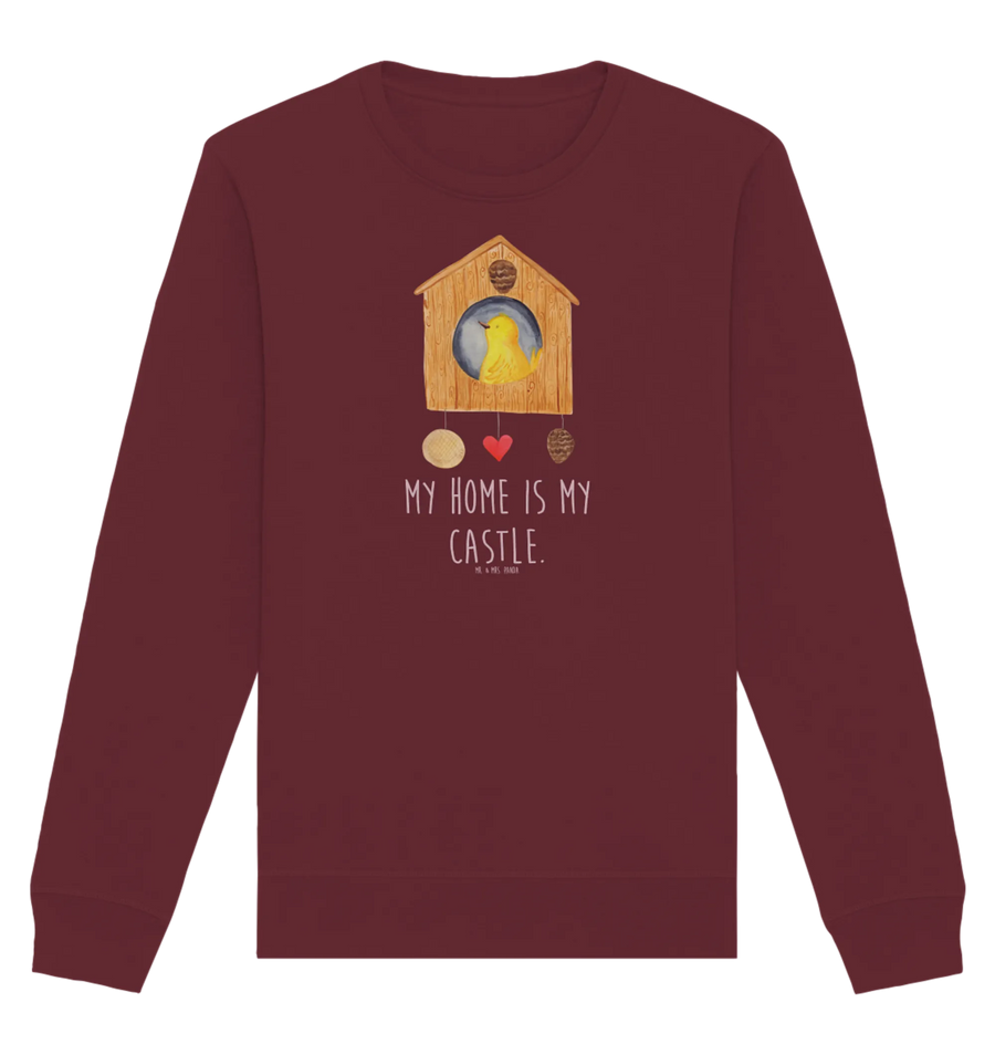 Organiczny Sweter ptak Dom - Rozmiar M - z napisem - Burgund