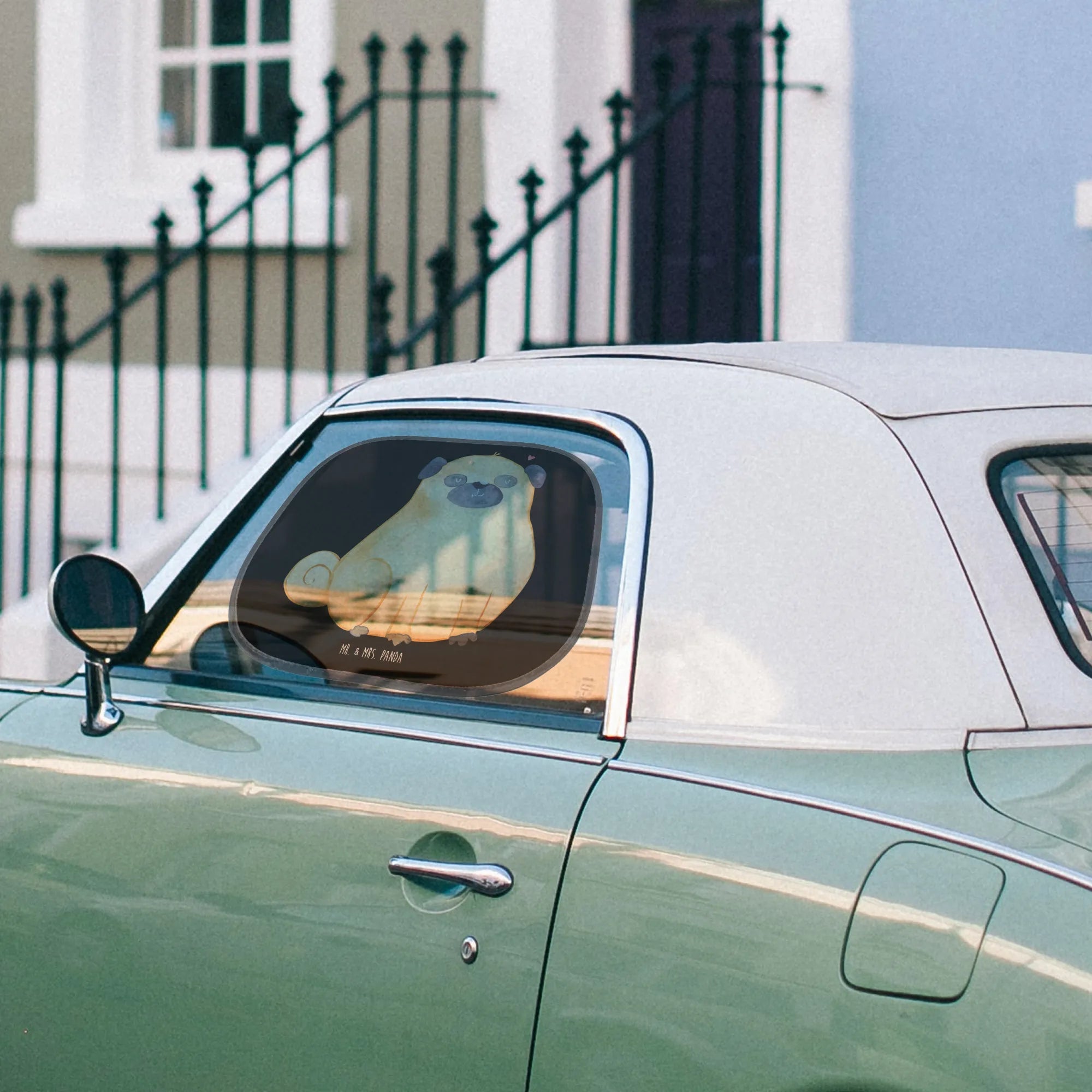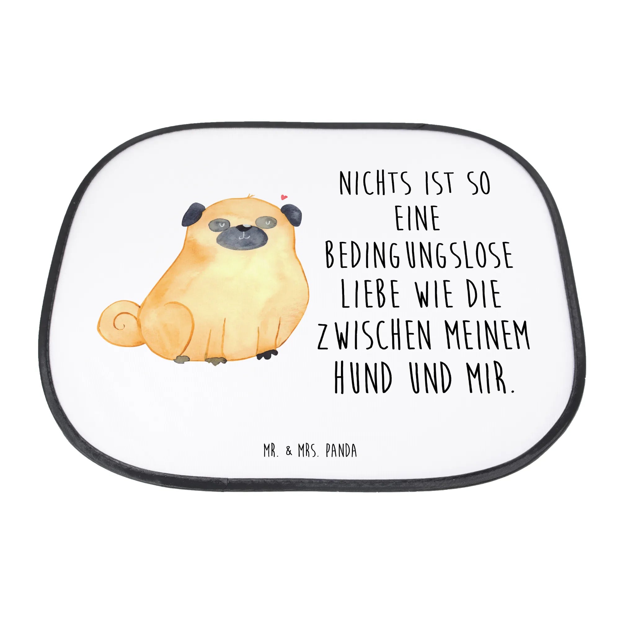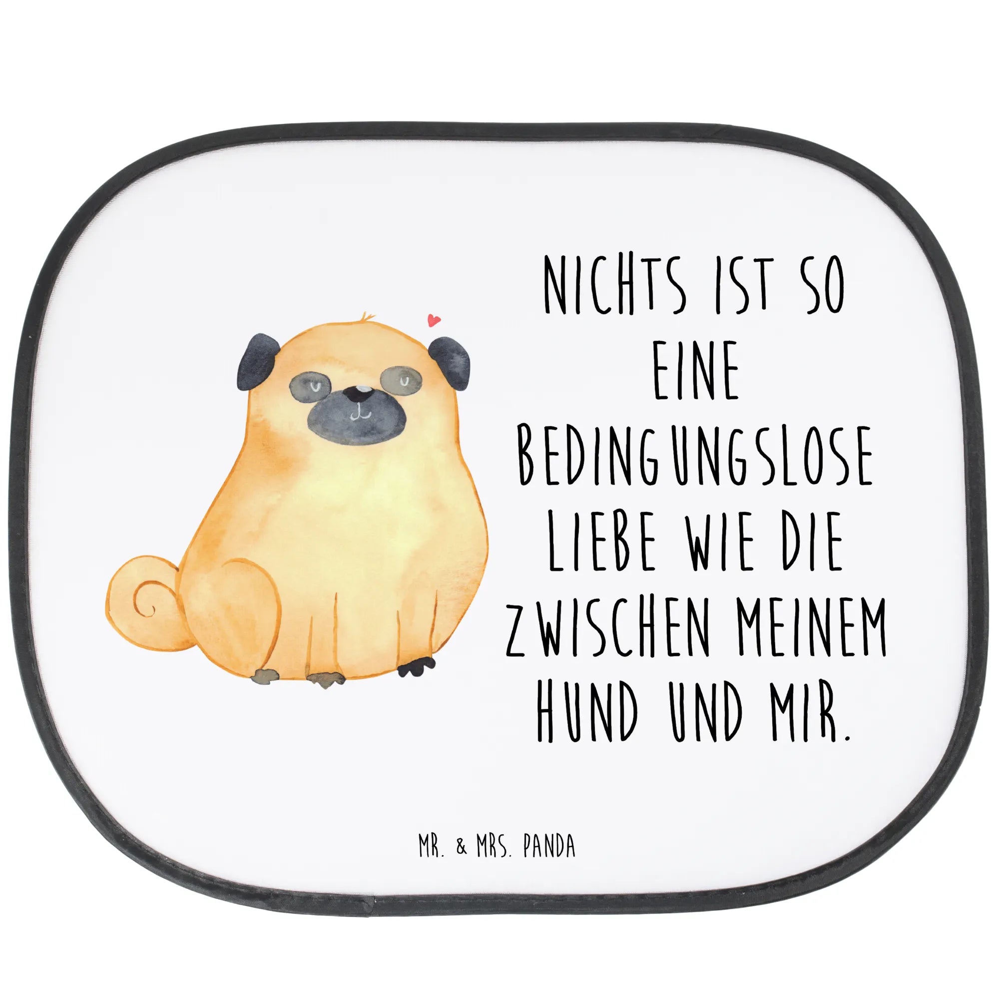 Ein Sonnenschutz fürs Auto, der Herzen wärmt: Unser hübscher Sonnenschutz Auto mit Mops-Motiv aus der Hunde Kollektion von Mr. & Mrs. Panda verbindet praktischen Hitzeschutz Auto mit liebevollem Design. Er schützt deine Mitfahrer vor direkter Sonneneinstrahlung und bietet zuverlässigen UV Schutz Auto an der Seitenscheibe. Perfekt als Seitlicher Sonnenschutz oder als Sonnenschutz Pkw, wenn die Sonne von der Seite blendet.