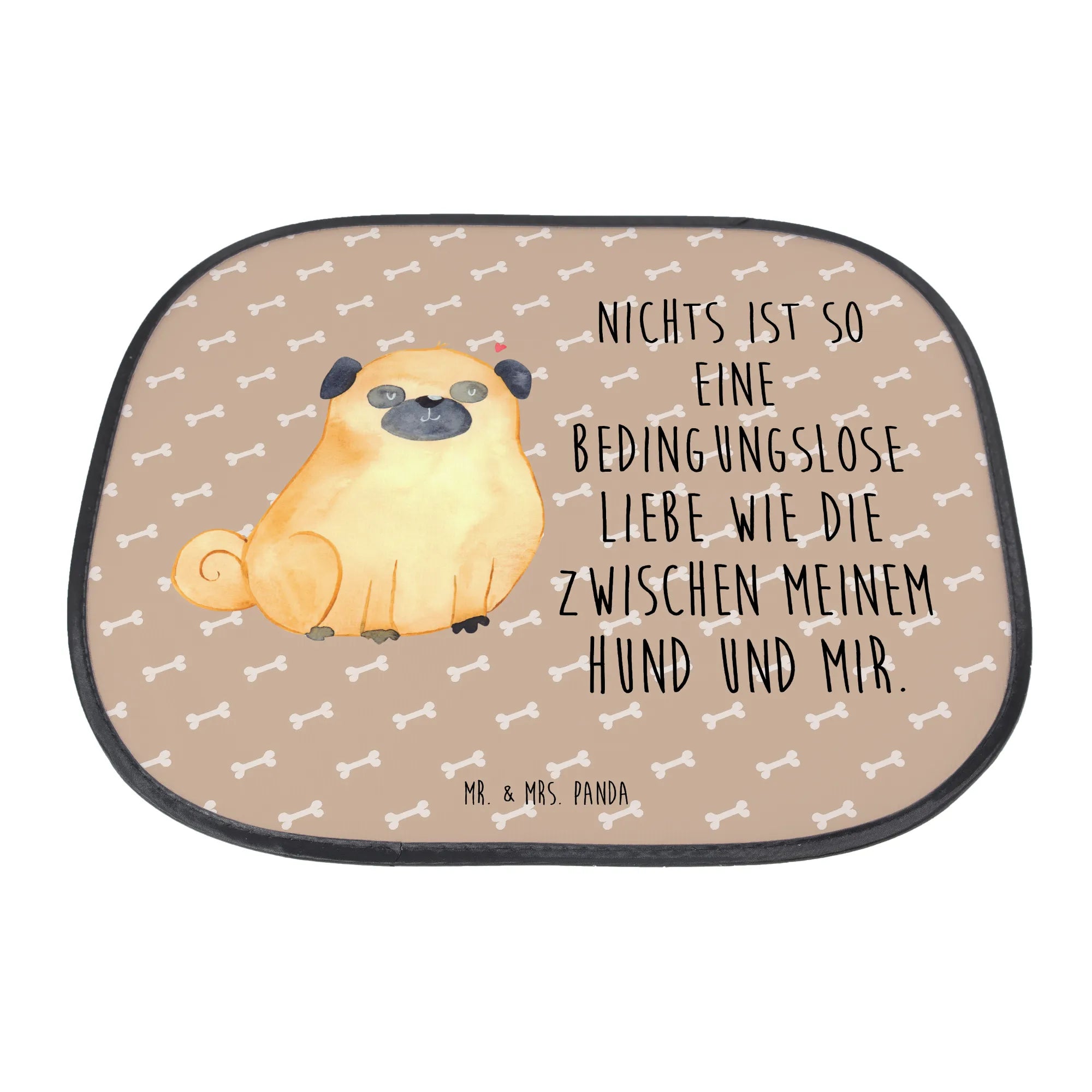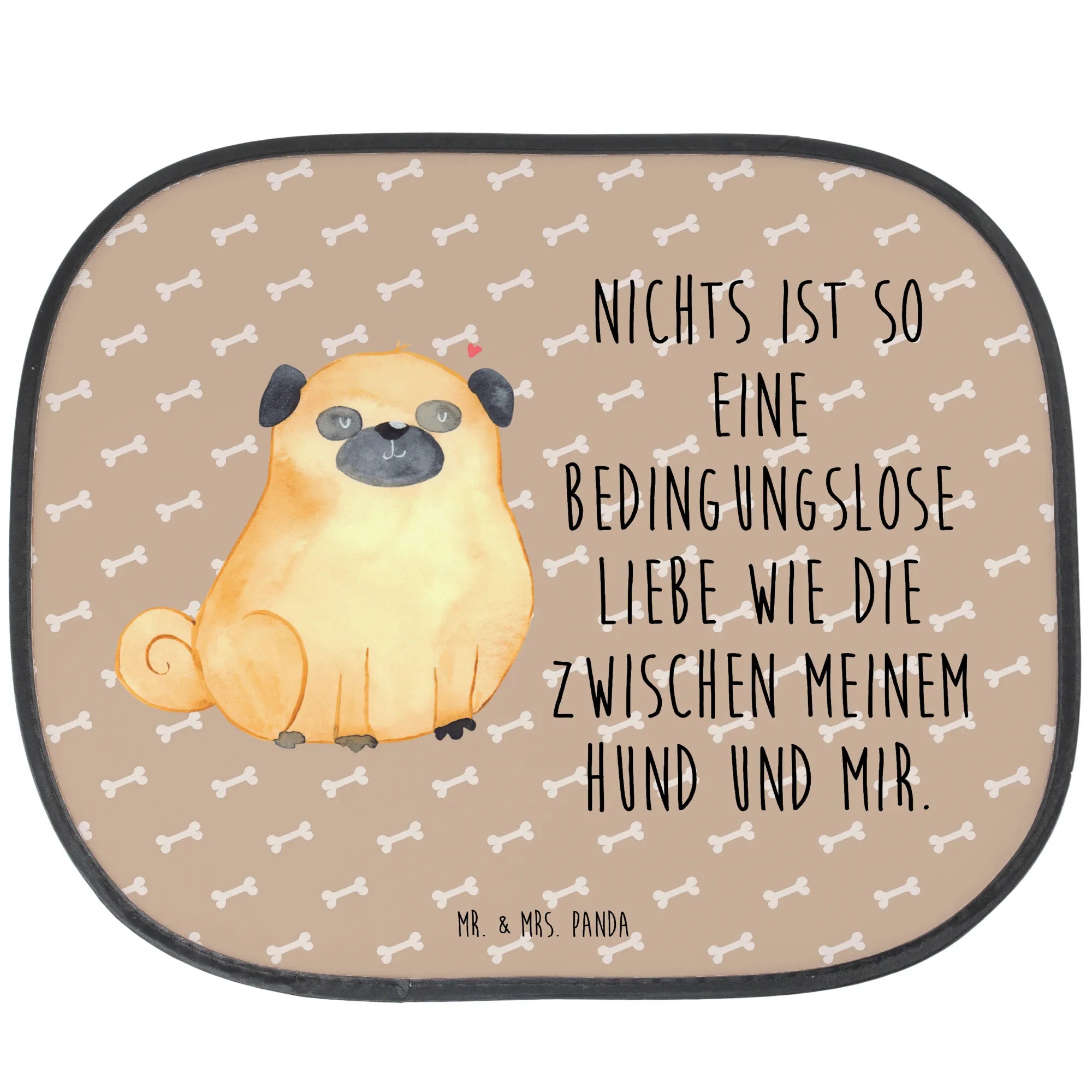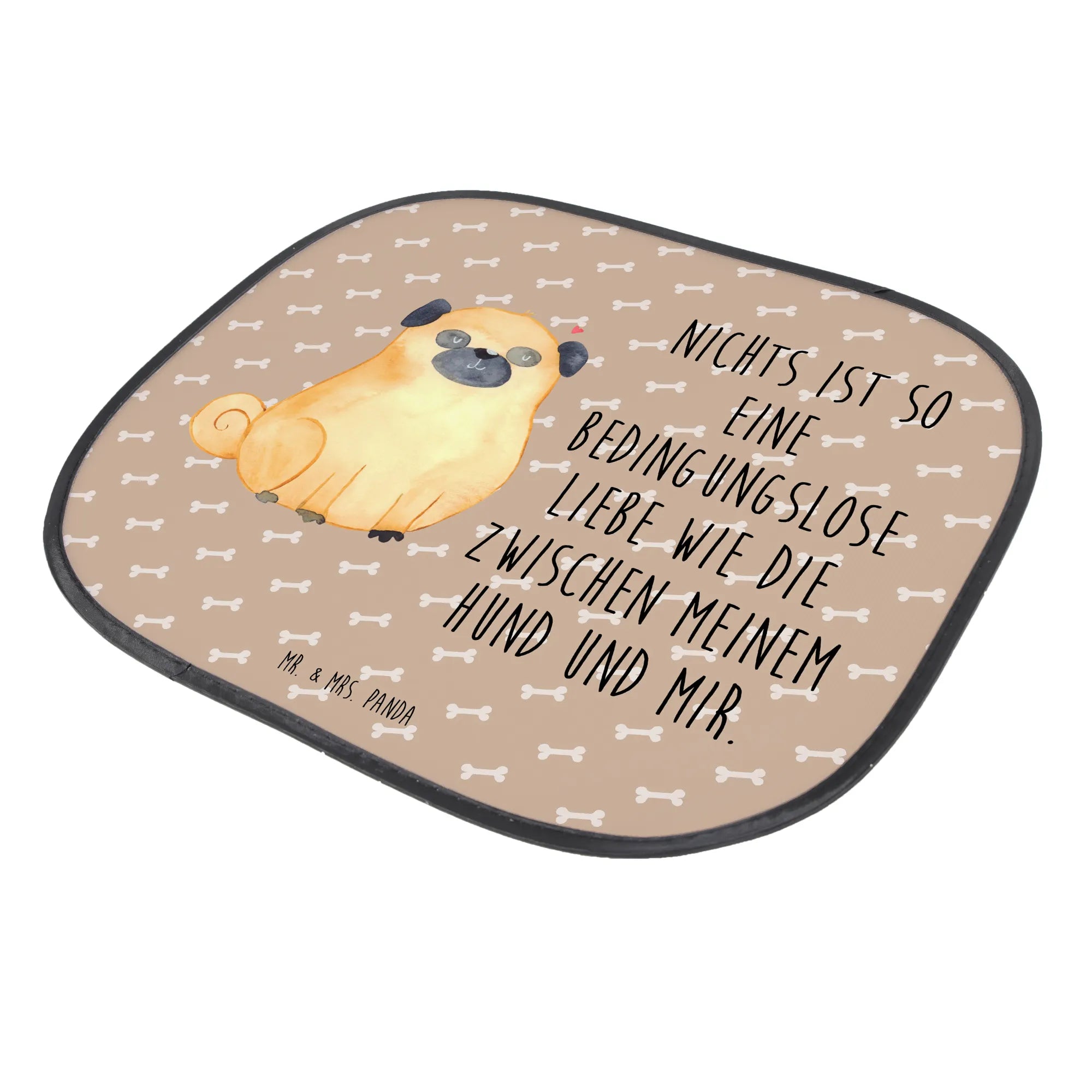 Ein Sonnenschutz fürs Auto, der Herzen wärmt: Unser hübscher Sonnenschutz Auto mit Mops-Motiv aus der Hunde Kollektion von Mr. & Mrs. Panda verbindet praktischen Hitzeschutz Auto mit liebevollem Design. Er schützt deine Mitfahrer vor direkter Sonneneinstrahlung und bietet zuverlässigen UV Schutz Auto an der Seitenscheibe. Perfekt als Seitlicher Sonnenschutz oder als Sonnenschutz Pkw, wenn die Sonne von der Seite blendet.
