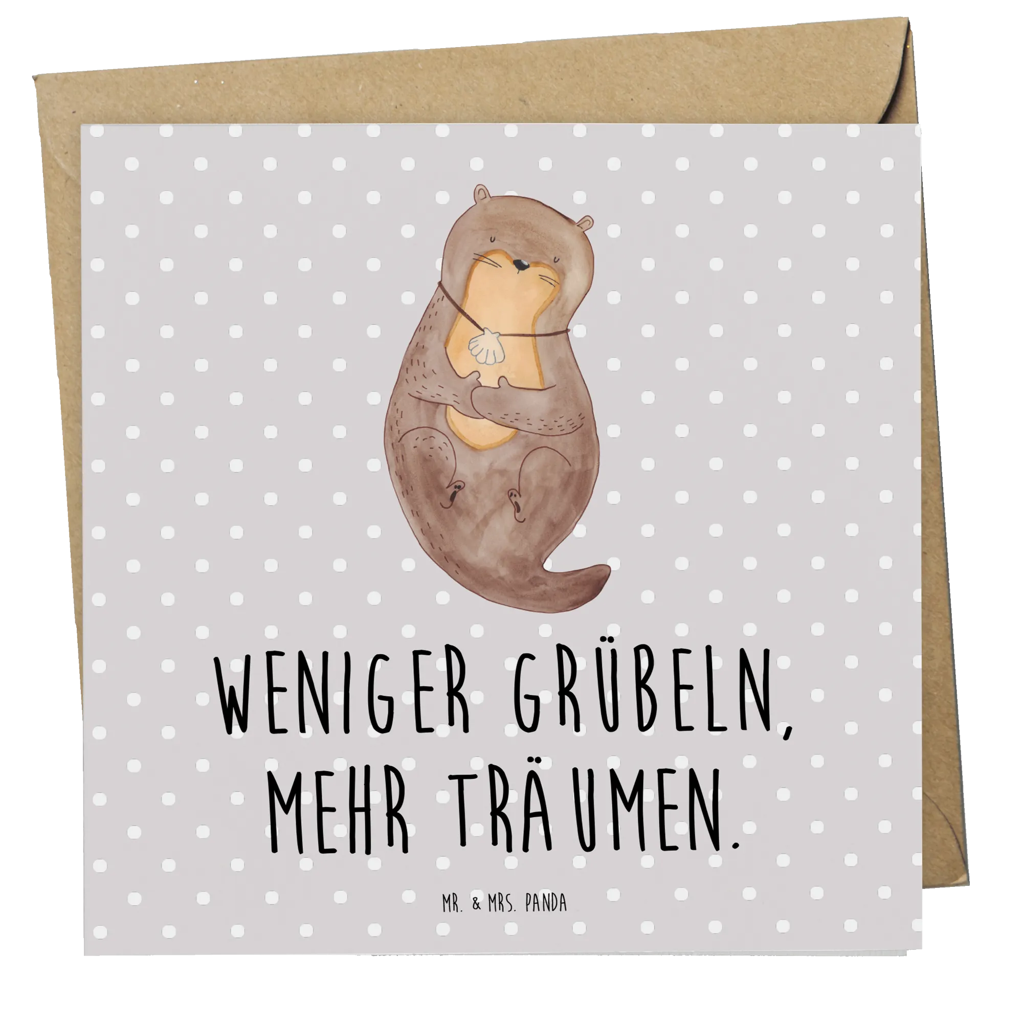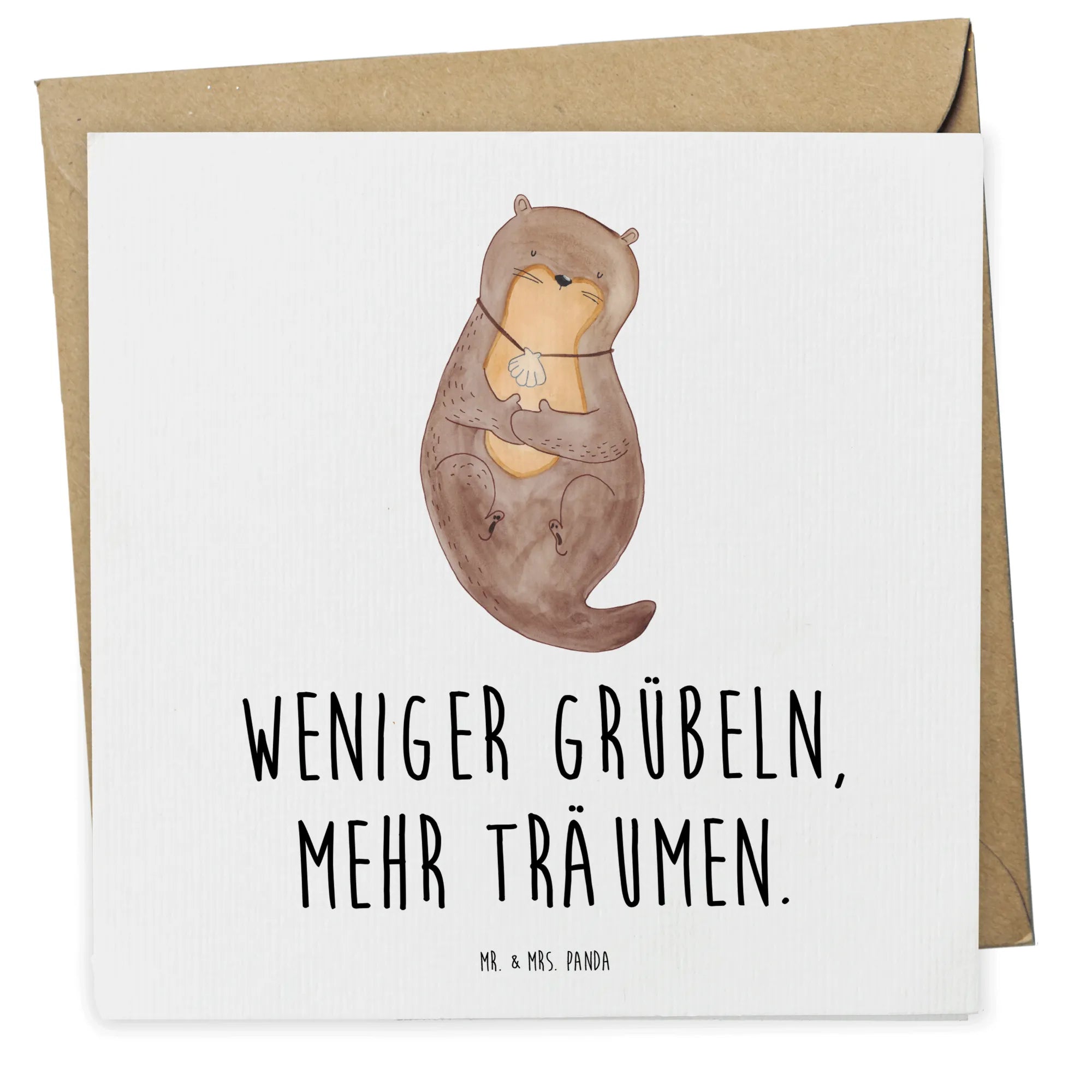 Die Deluxe Karte mit dem bezaubernden Motiv "Otter mit Muschelmedaillon" aus der Otter-Kollektion von Mr. & Mrs. Panda ist das perfekte Geschenk für all jene, die die Magie von Natur und Meer lieben. Diese wunderschöne Karte ist mehr als nur ein Stück Papier – sie verkörpert Lebensfreude und eine positive Einstellung, die wir in jedem Moment unseres Lebens brauchen. "Weniger grübeln, mehr träumen" ist nicht nur ein Spruch, sondern eine Einladung, die Gedanken schweifen zu lassen und die kleinen Freuden des Lebens zu genießen.
