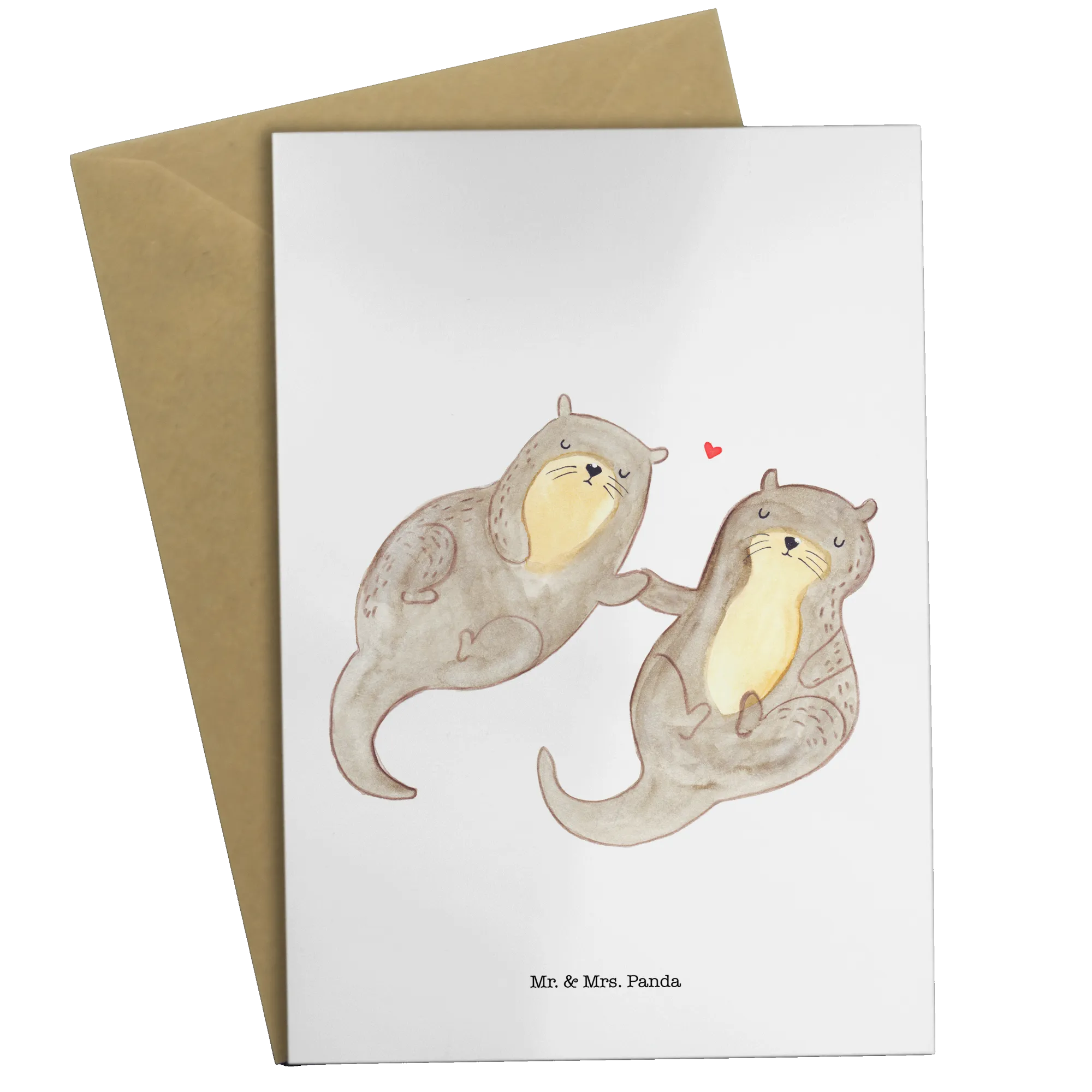 Kartka okolicznościowa wydra trzymać się za ręce - z napisem - biały