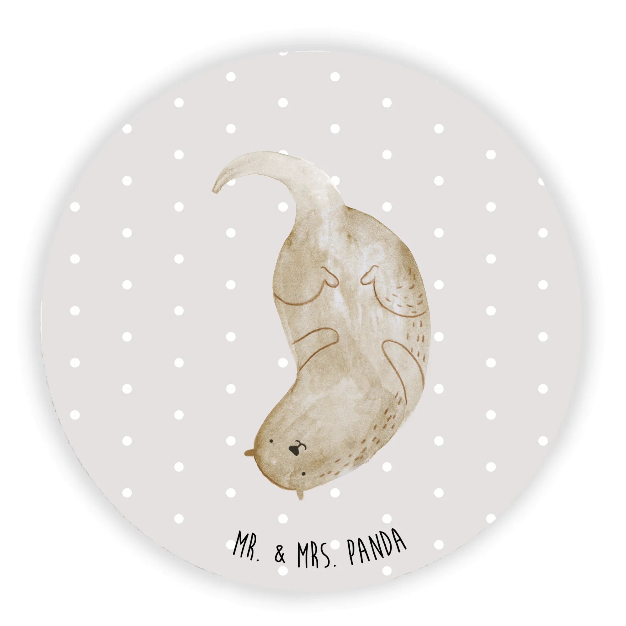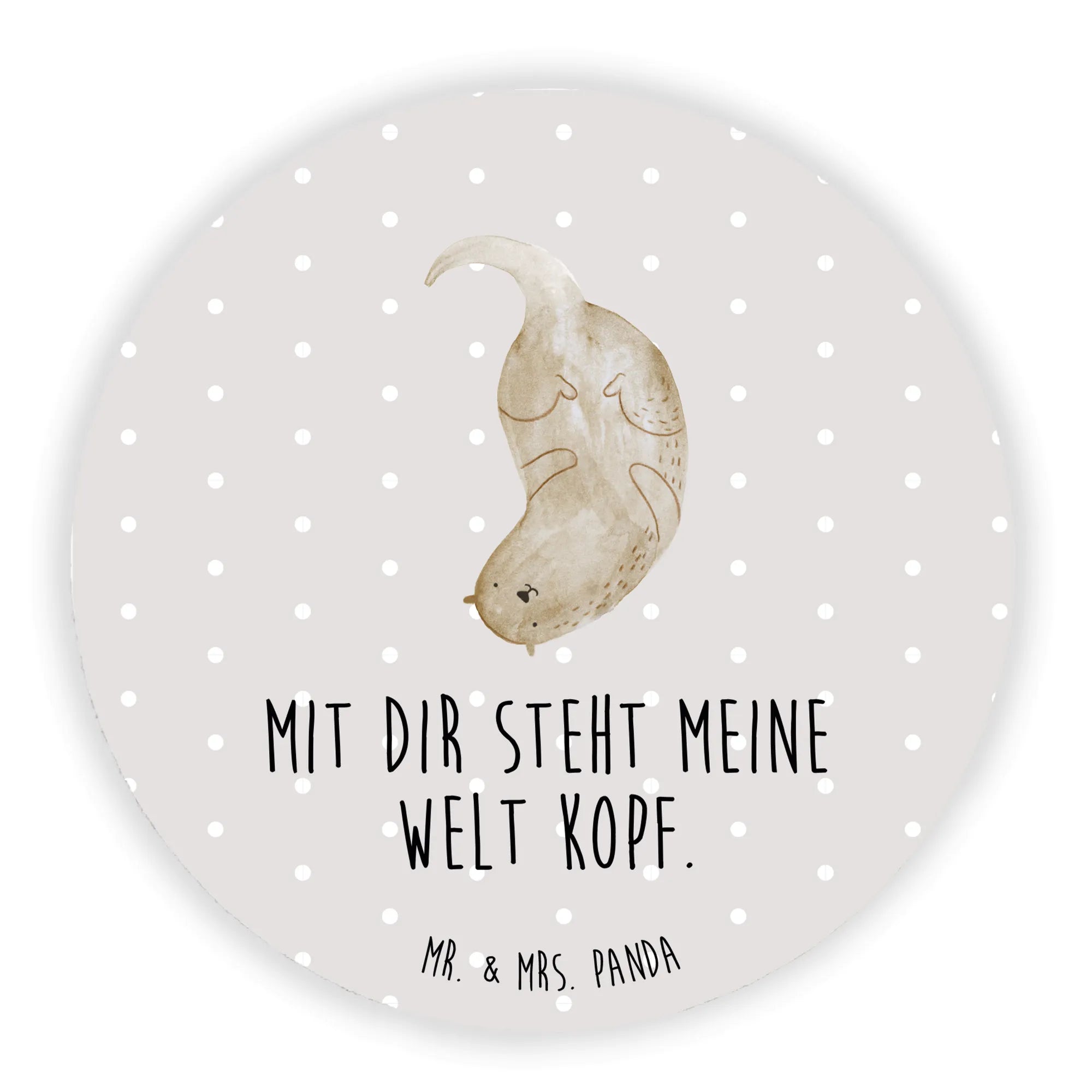 Okrągły magnes wydra Do góry nogami - z napisem - biały