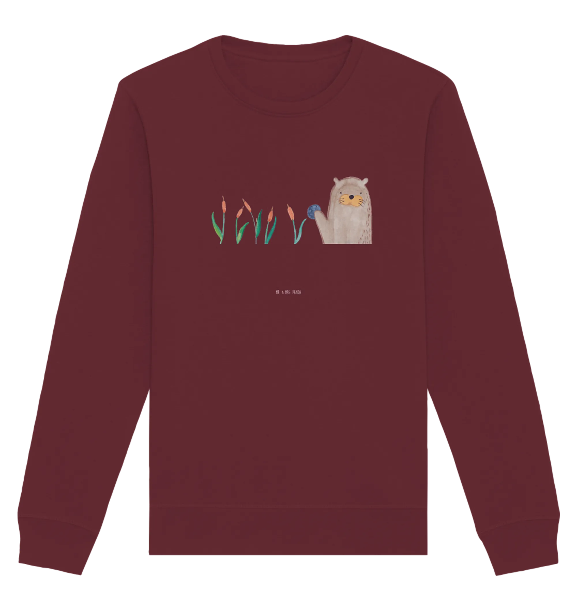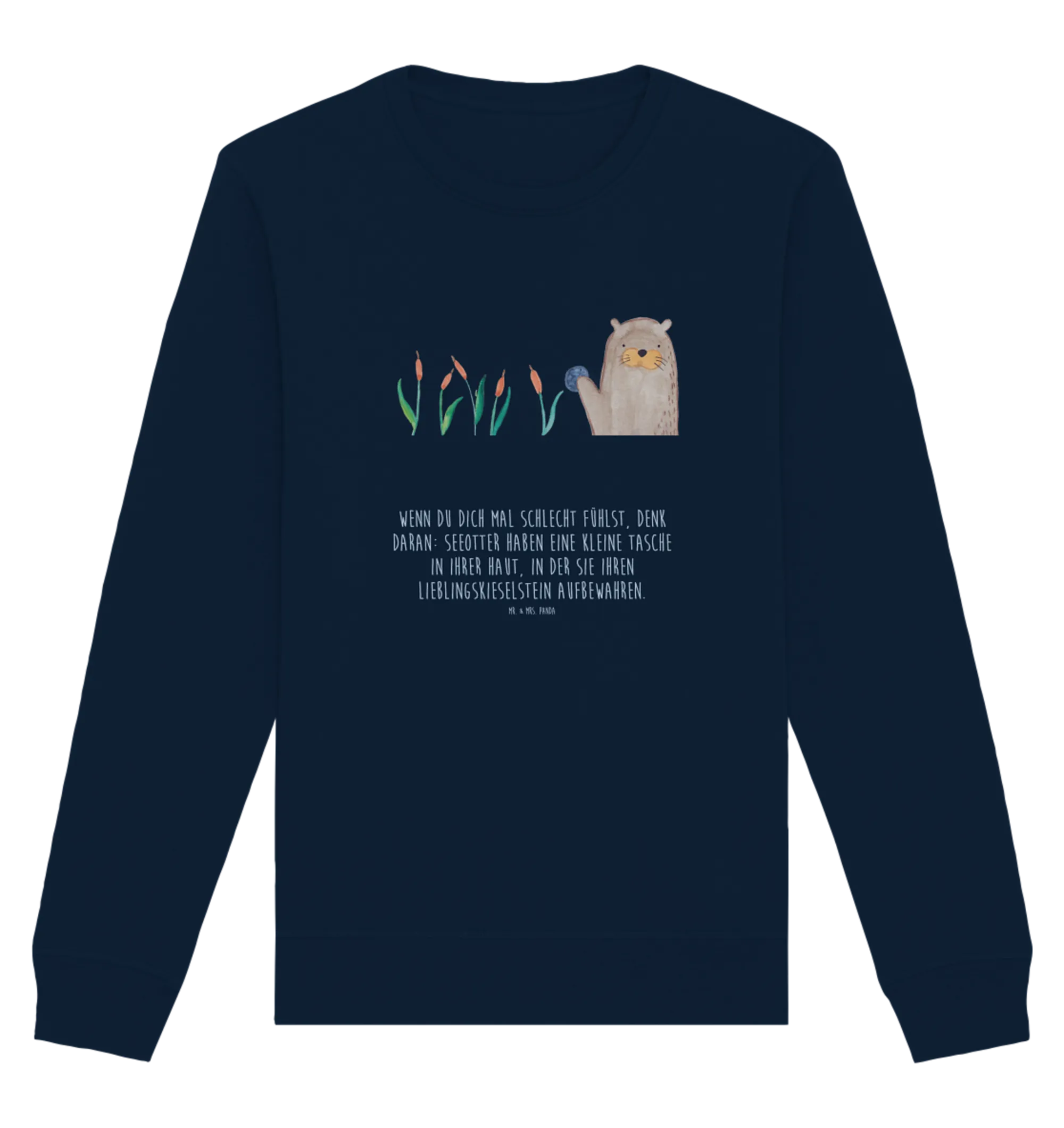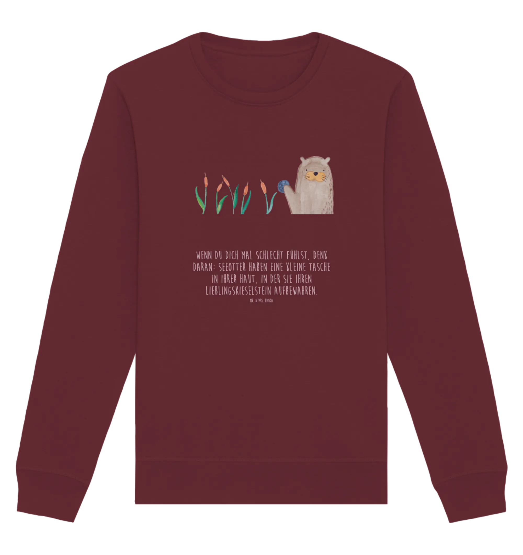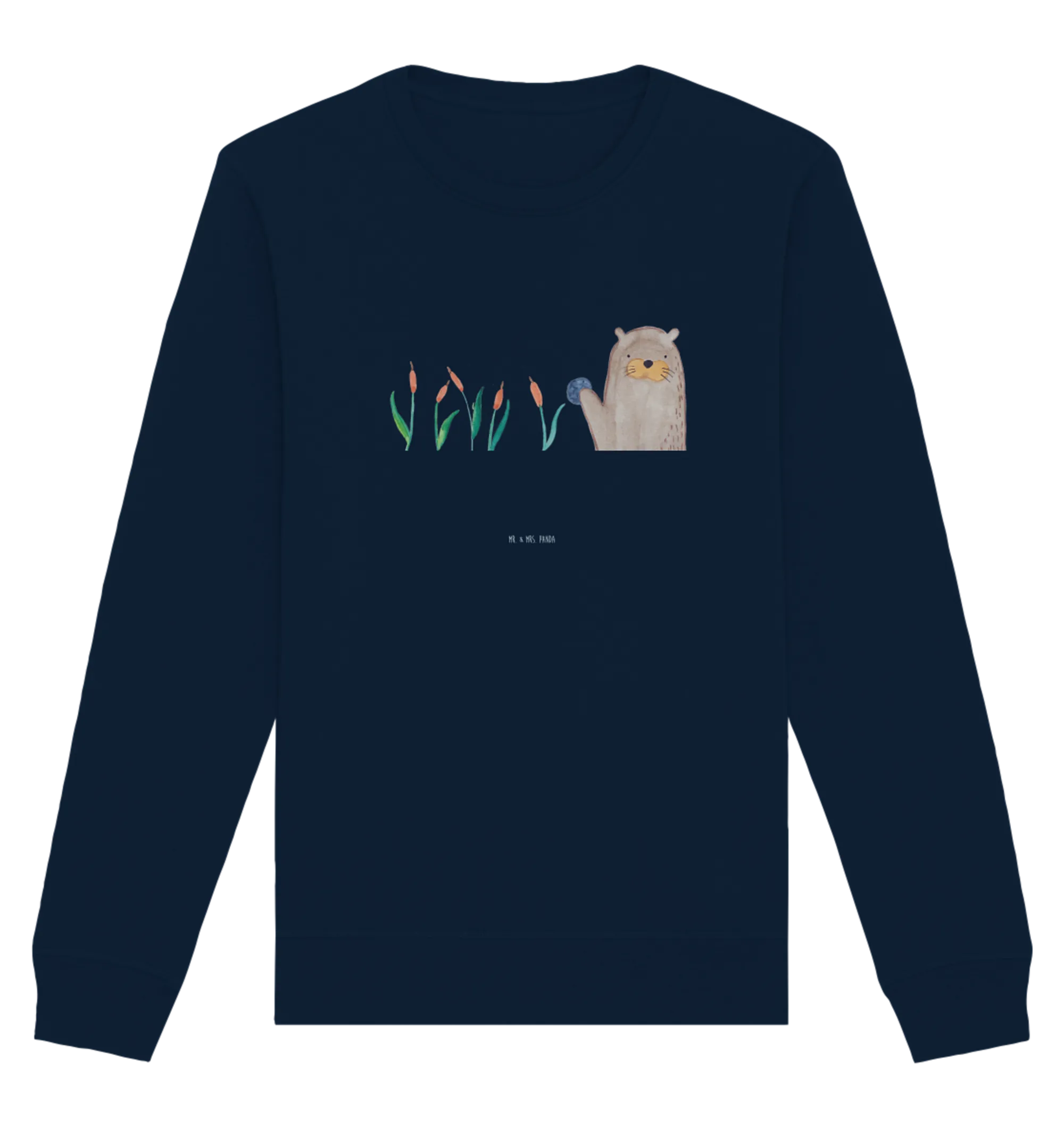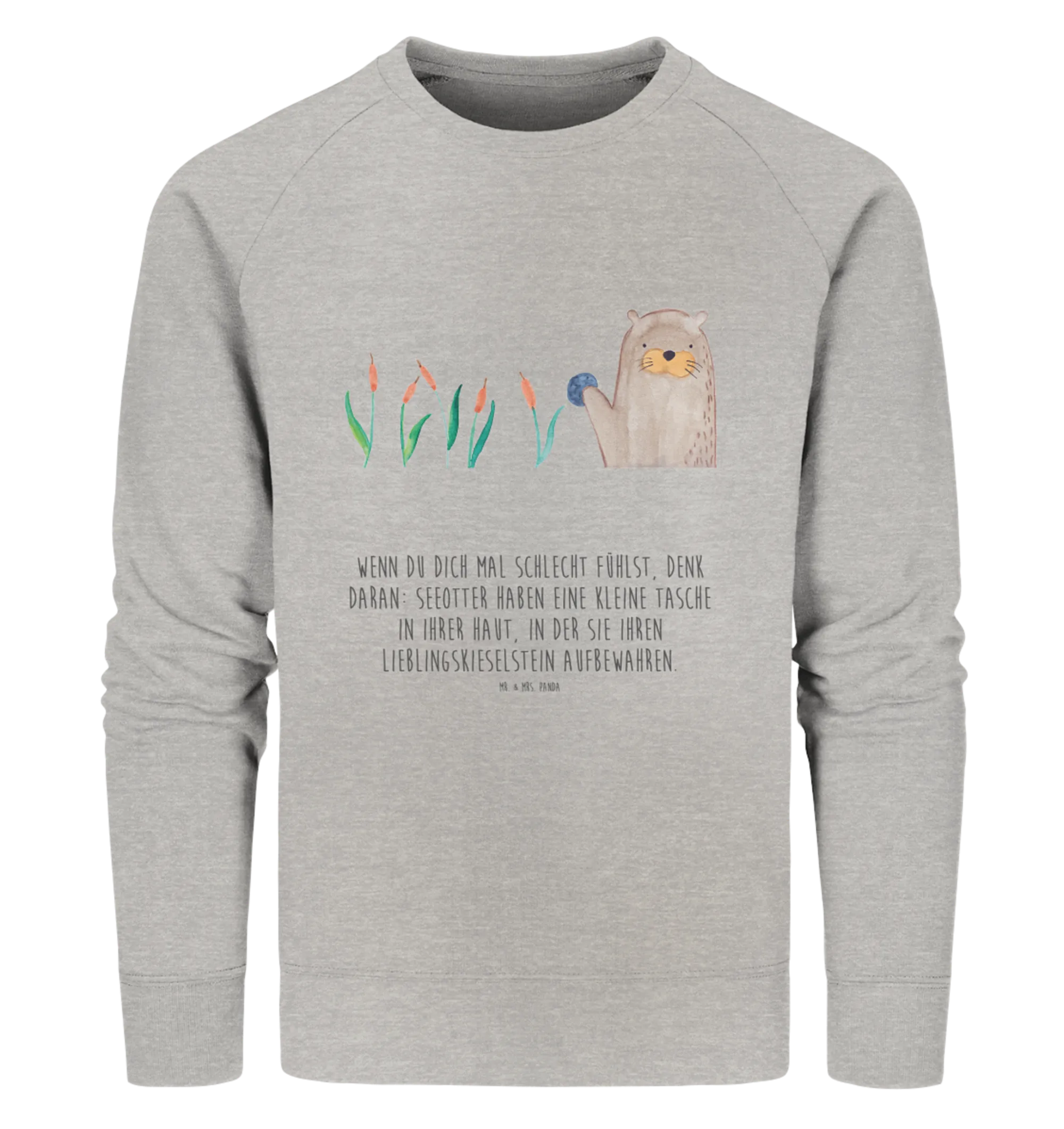 Entdecke den perfekten Organic Pullover mit dem fröhlichen Motiv "Otter mit Stein" aus der wunderbaren Otter-Kollektion von Mr. & Mrs. Panda!