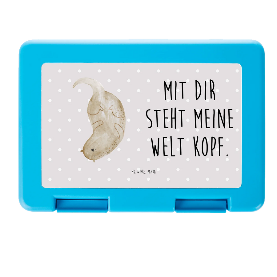 Pudełko na kanapki wydra Do góry nogami - z napisem - Pastelowy szary