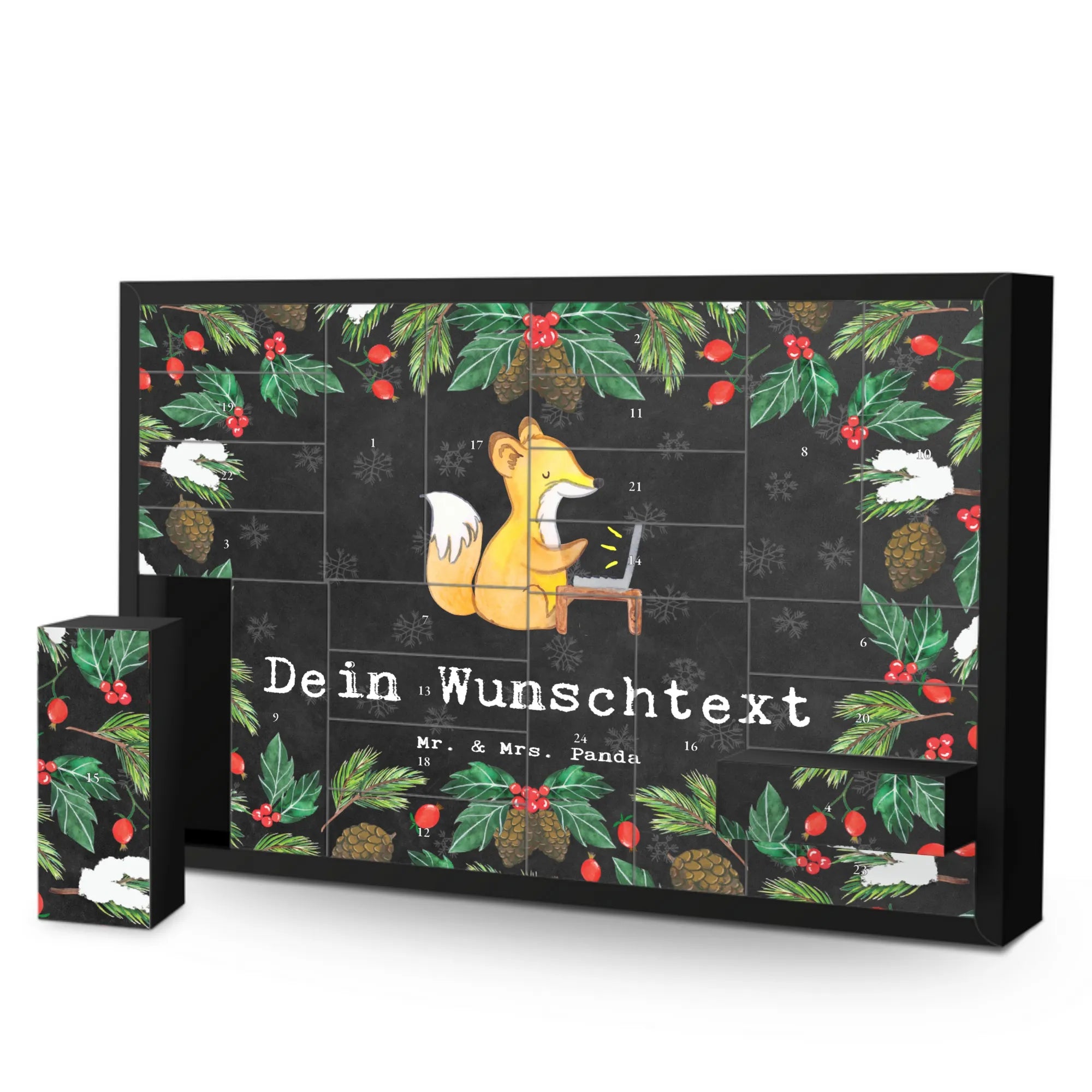 Der personalisierte befüllbare Adventskalender "Assistent aus Leidenschaft" von Mr. & Mrs. Panda ist das perfekte Geschenk für all jene, die im Bereich der Assistenz arbeiten. Ob zum Jobbeginn, zur Beförderung oder zum Jubiläum – dieser Adventskalender bringt Freude und Überraschung in die Vorweihnachtszeit! Mit viel Liebe von Mrs. Panda gestaltet, zeigt das Motiv einen süßen Fuchs, der fleißig an einem Laptop arbeitet.