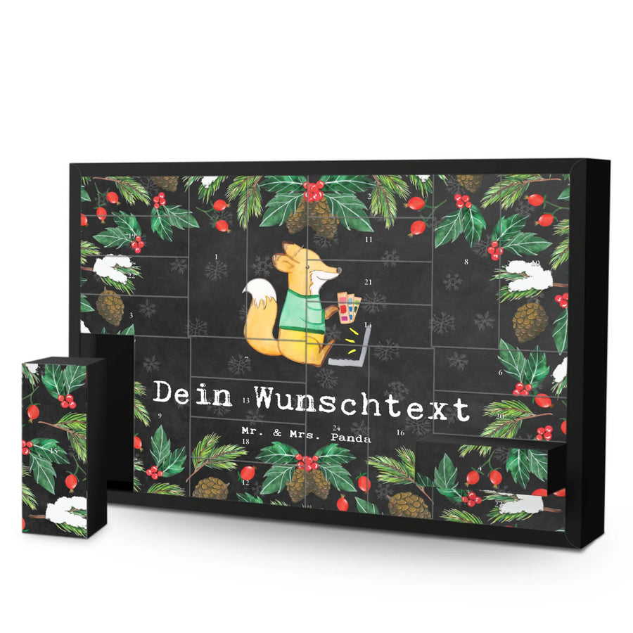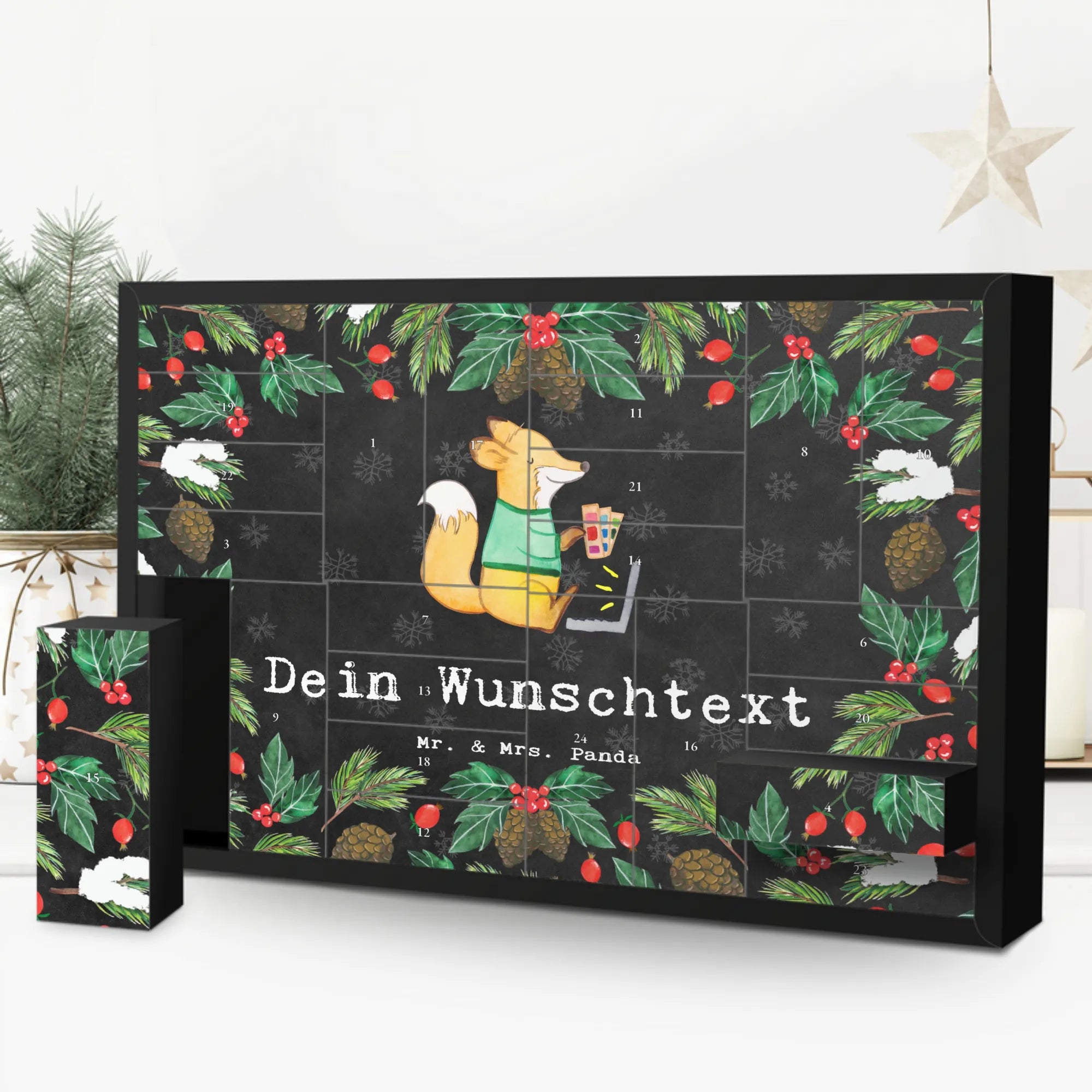 Der personalisierte befüllbare Adventskalender "Grafiker aus Leidenschaft" von Mr. & Mrs. Panda ist das perfekte Geschenk für jeden Grafiker, Designer oder Mediengestalter. Ob zum Berufsabschied, zum Berufsjubiläum oder einfach als nette Geste für einen Arbeitskollegen – dieser Adventskalender zaubert garantiert ein Lächeln ins Gesicht. Mit seinem liebevollen Design, das einen süßen Fuchs zeigt, der mit einer Farbpalette in der Hand am Laptop arbeitet, spricht er nicht nur die kreative Ader an, sondern bringt auch Freude in die Vorweihnachtszeit.