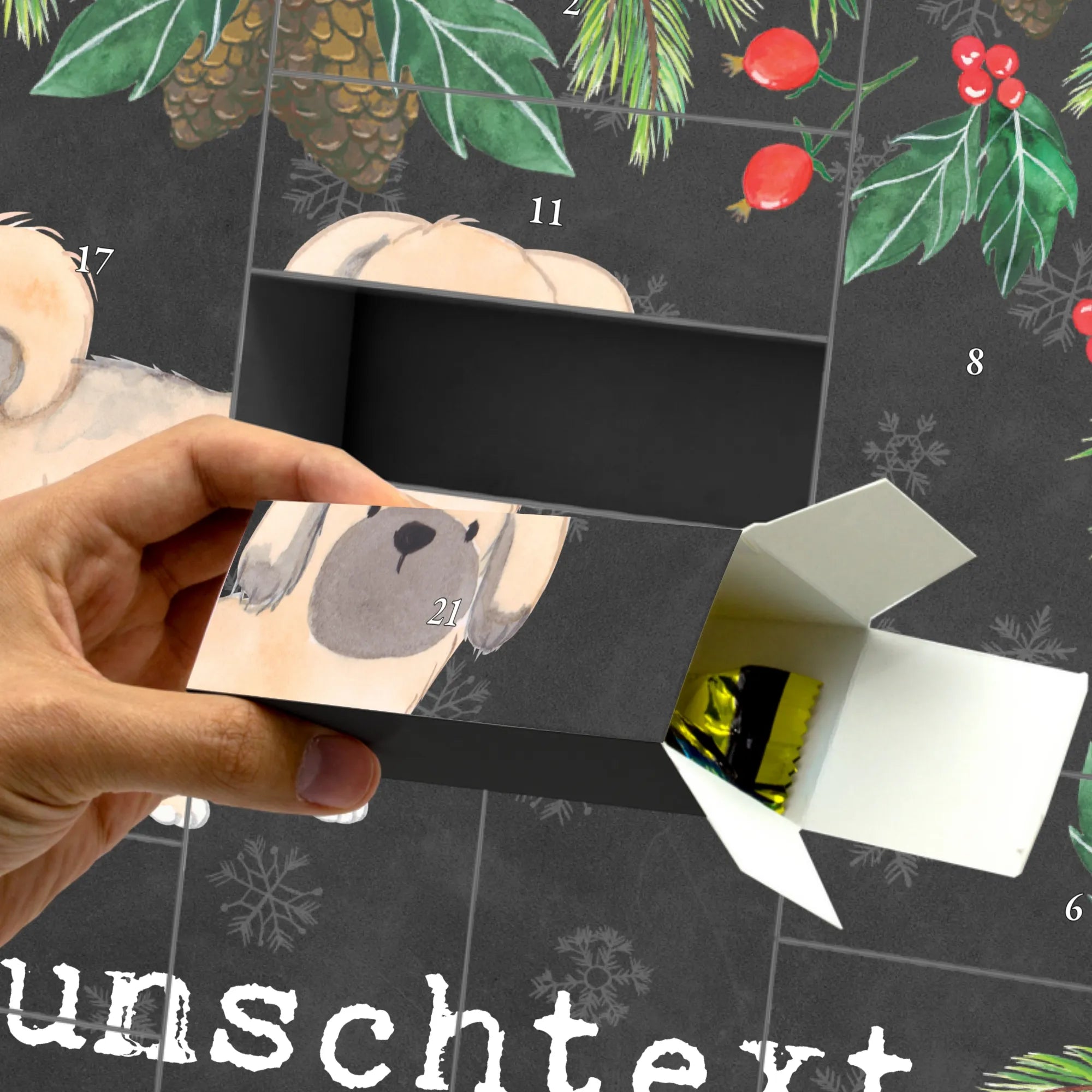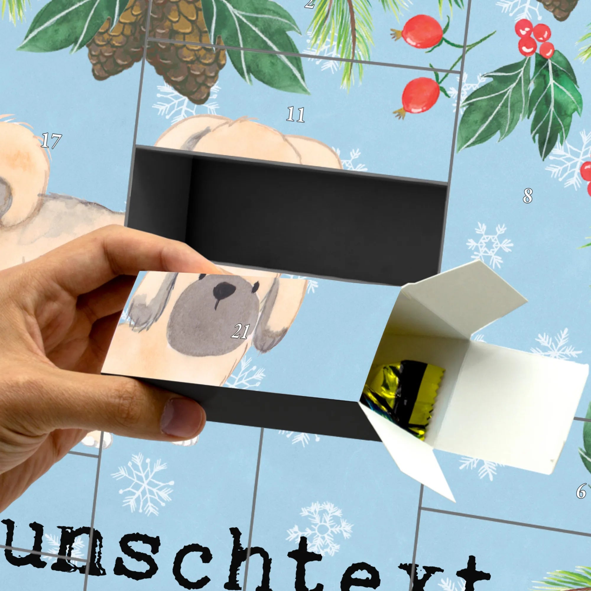 Dieser Adventskalender ist nicht nur eine wunderbare Möglichkeit, die Adventszeit zu zelebrieren, sondern auch ein tolles Geschenk für jeden Hundeliebhaber. Ob zum Geburtstag, als Weihnachtsgeschenk oder einfach nur so, dieser Kalender zaubert jedem ein Lächeln ins Gesicht. Zusätzlich bietet er durch die Personalisierbarkeit mit deinem Wunschnamen eine noch individuellere Note.