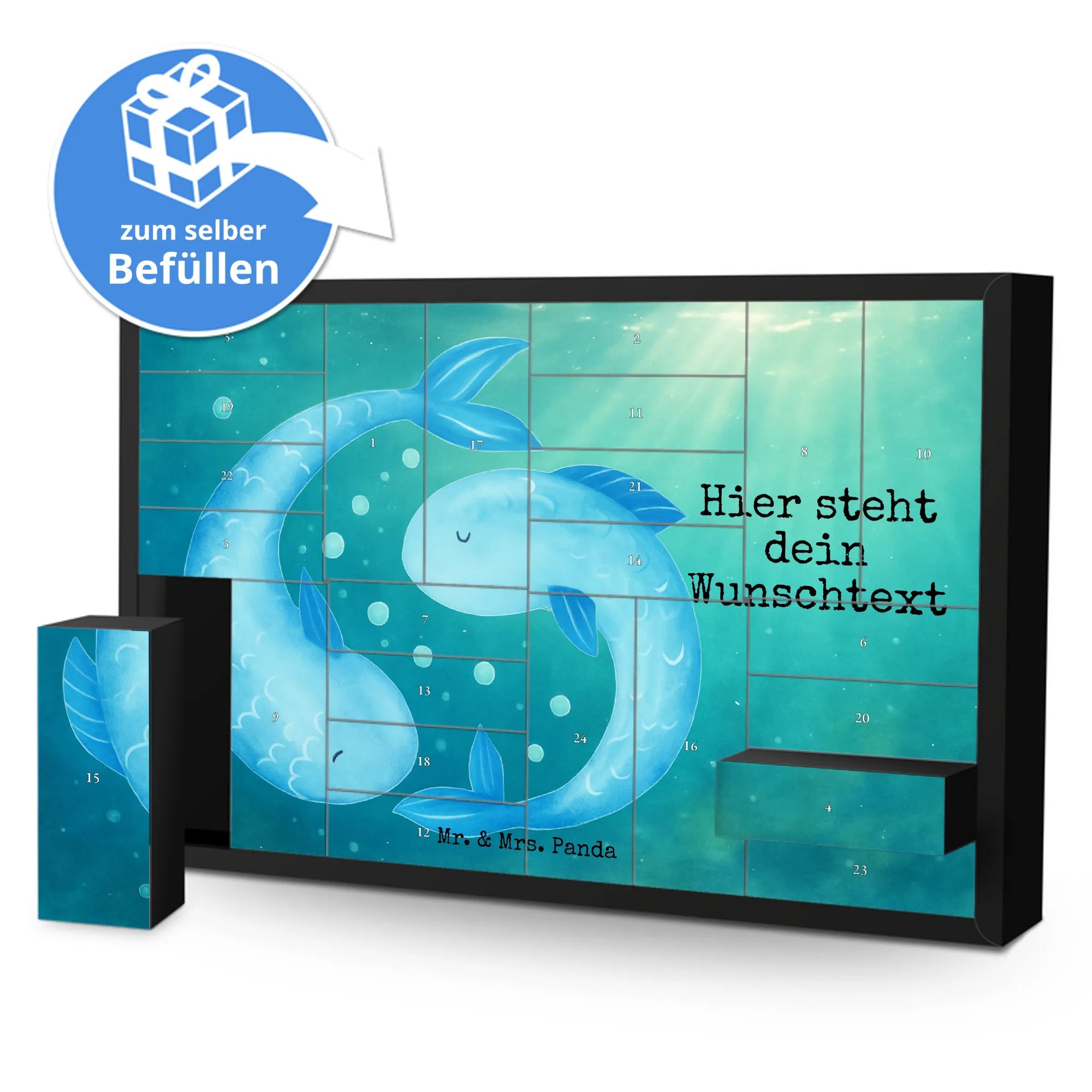 Personalisierter Befüllbarer Adventskalender Sternzeichen Fische – ein herrlich persönliches Geschenk von Mr. & Mrs. Panda, das die Vorweihnachtszeit verträumt und empathisch macht. 🎄💙