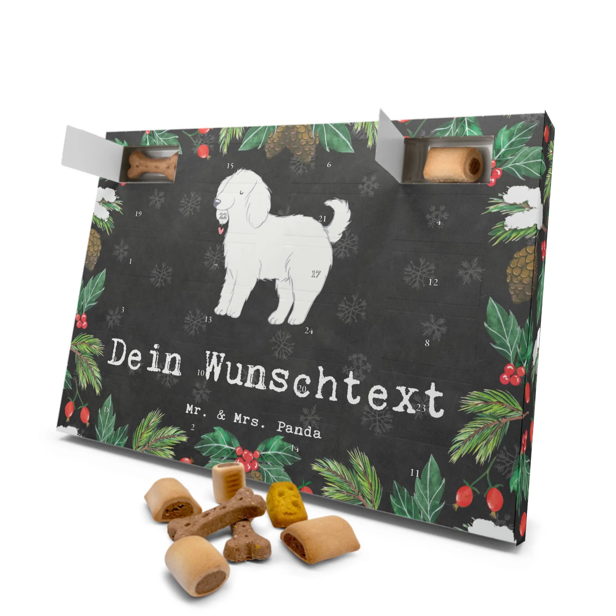 Der personalisierte Hunde Adventskalender "Bologneser Moment" von Mr. & Mrs. Panda ist das perfekte Geschenk für alle Hundeliebhaber und Bologneser-Fans! Mit diesem liebevoll gestalteten Adventskalender bringst du Freude und Vorfreude in die Weihnachtszeit, sowohl für dich als auch für deinen vierbeinigen Freund.