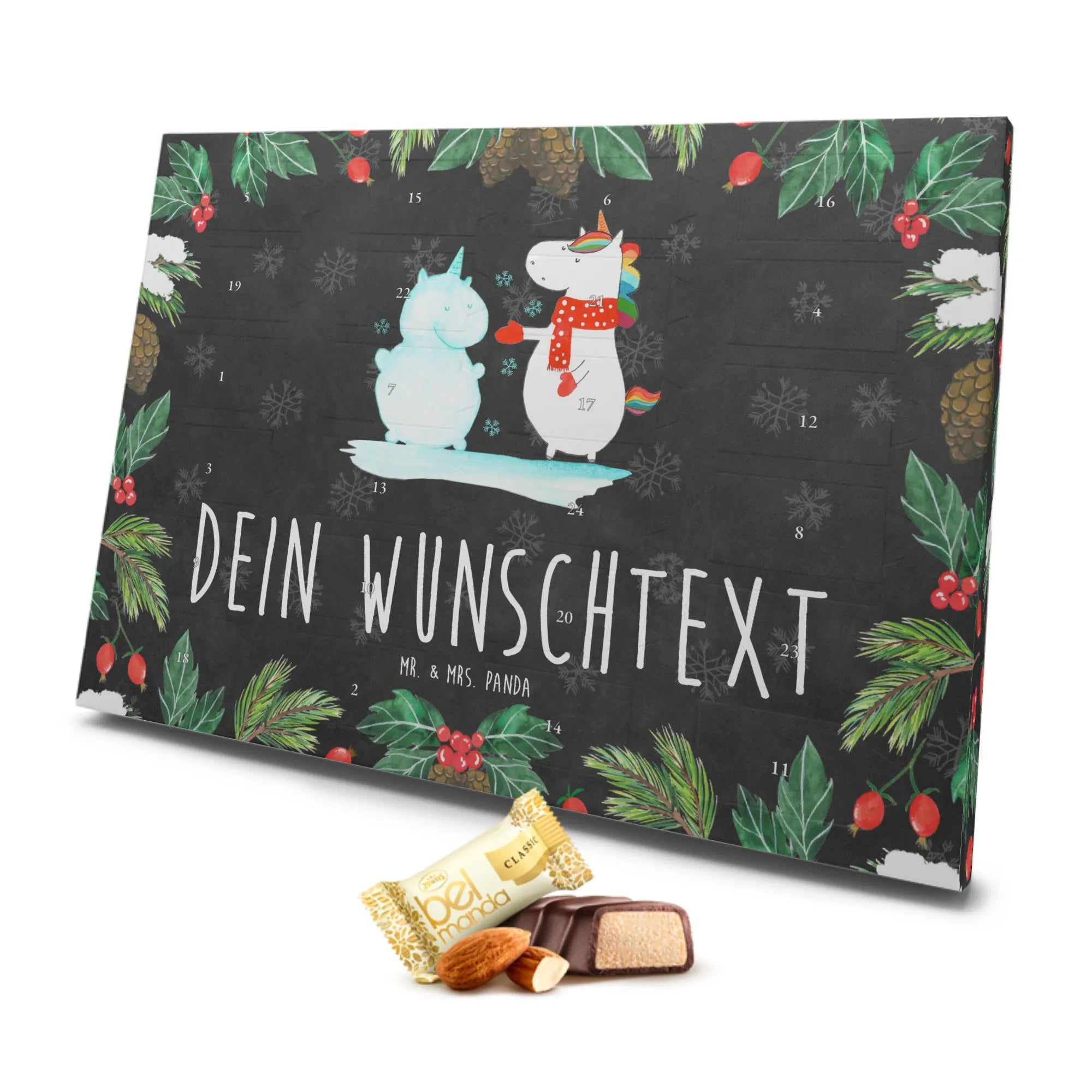 Personalisierter Marzipan Adventskalender Einhorn Schneemann - Schwarz