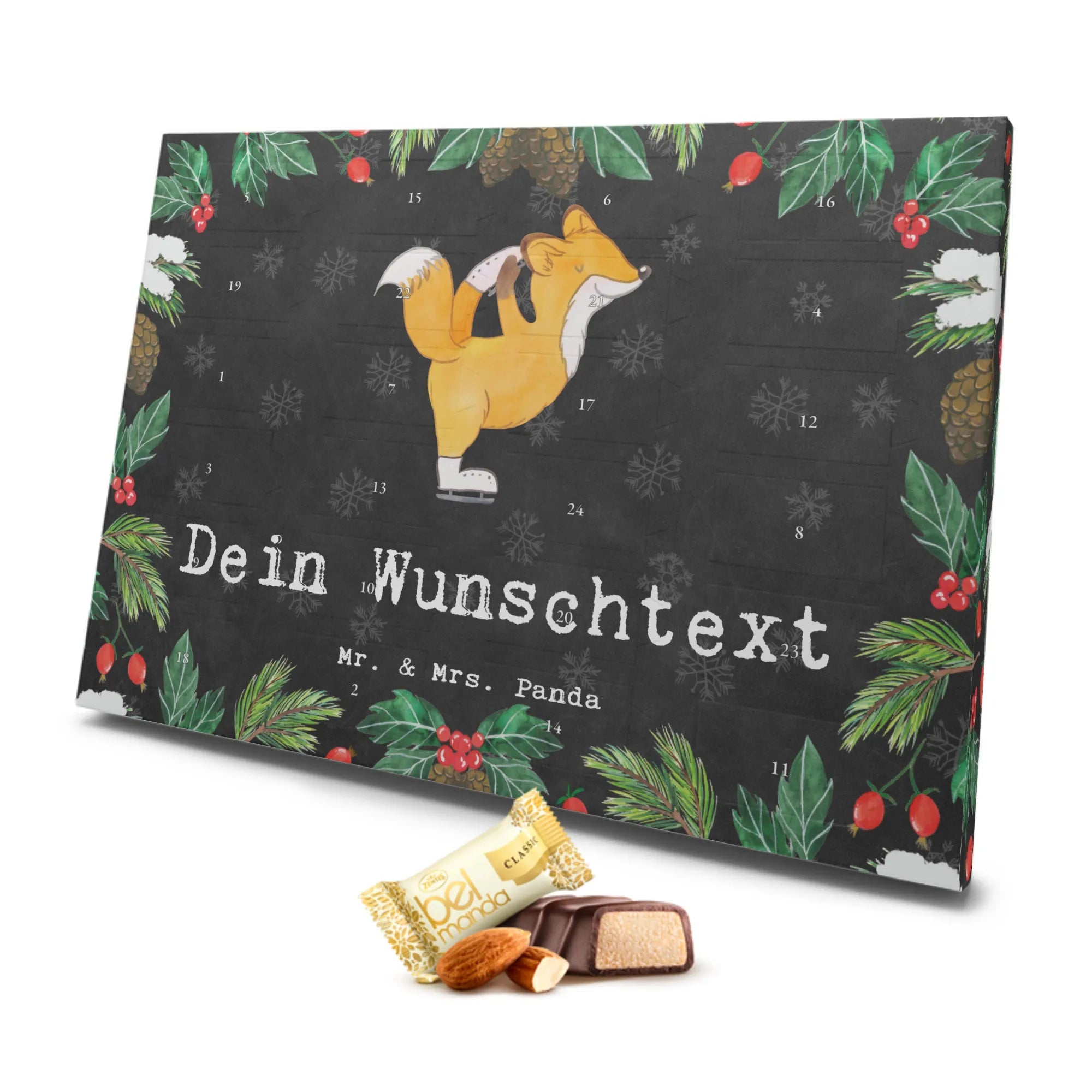 Personalisierter Marzipan Adventskalender Fuchs Eiskunstläufer – Mr. & Mrs. Panda