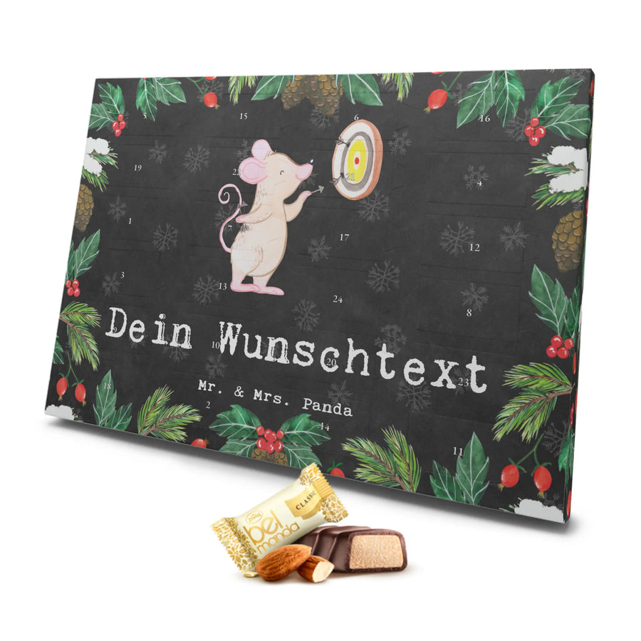 Personalisierter Marzipan Adventskalender Maus Dart spielen - Schwarz