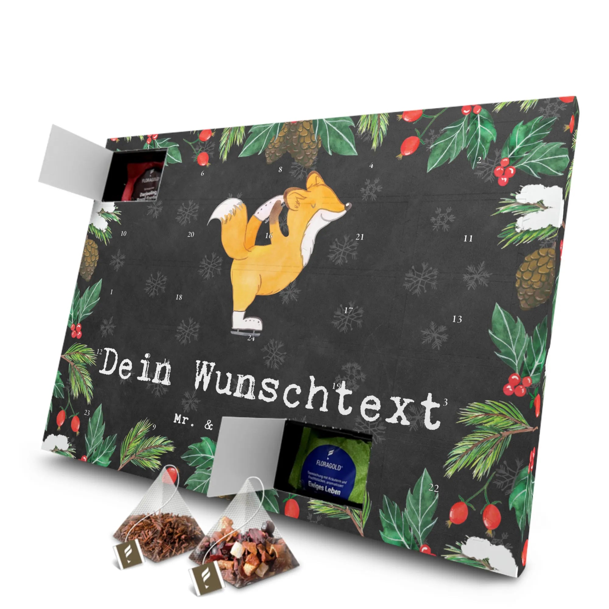 Finde den passenden Platz für diesen Adventskalender in Deiner Wohnung und erfreue Dich jeden Tag an einer neuen Teesorte! Lass Dich von der Vielfalt inspirieren und genieße die meditativen Momente beim Tee trinken nach einem langen Trainingstag. Zeig Deinen Liebsten, dass Du an sie denkst, und mache das Warten auf Weihnachten zu einem unvergesslichen Erlebnis! Mit dem personalisierten Tee Adventskalender von Mr. & Mrs. Panda schenkst Du ein Stückchen Freude und Wärme in der kalten Jahreszeit. Ideal für alle, die eine Leidenschaft für Eiskunstlauf pflegen oder den Alltag mit einem Hauch von Kreativität und Wärme bereichern möchten.