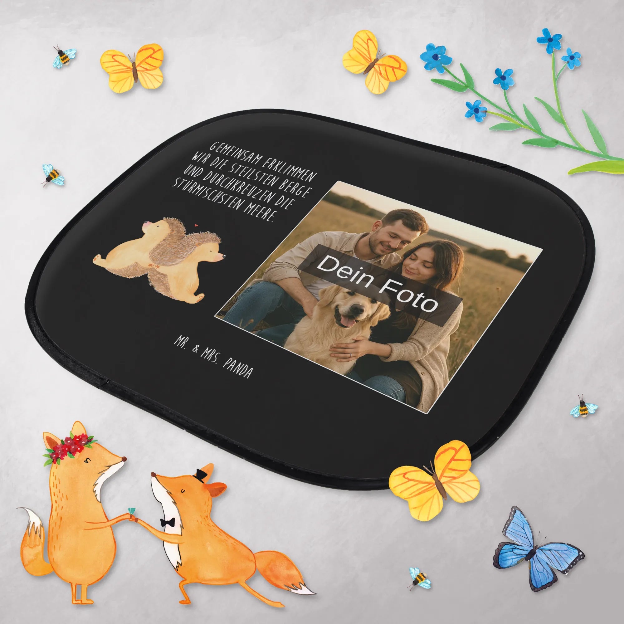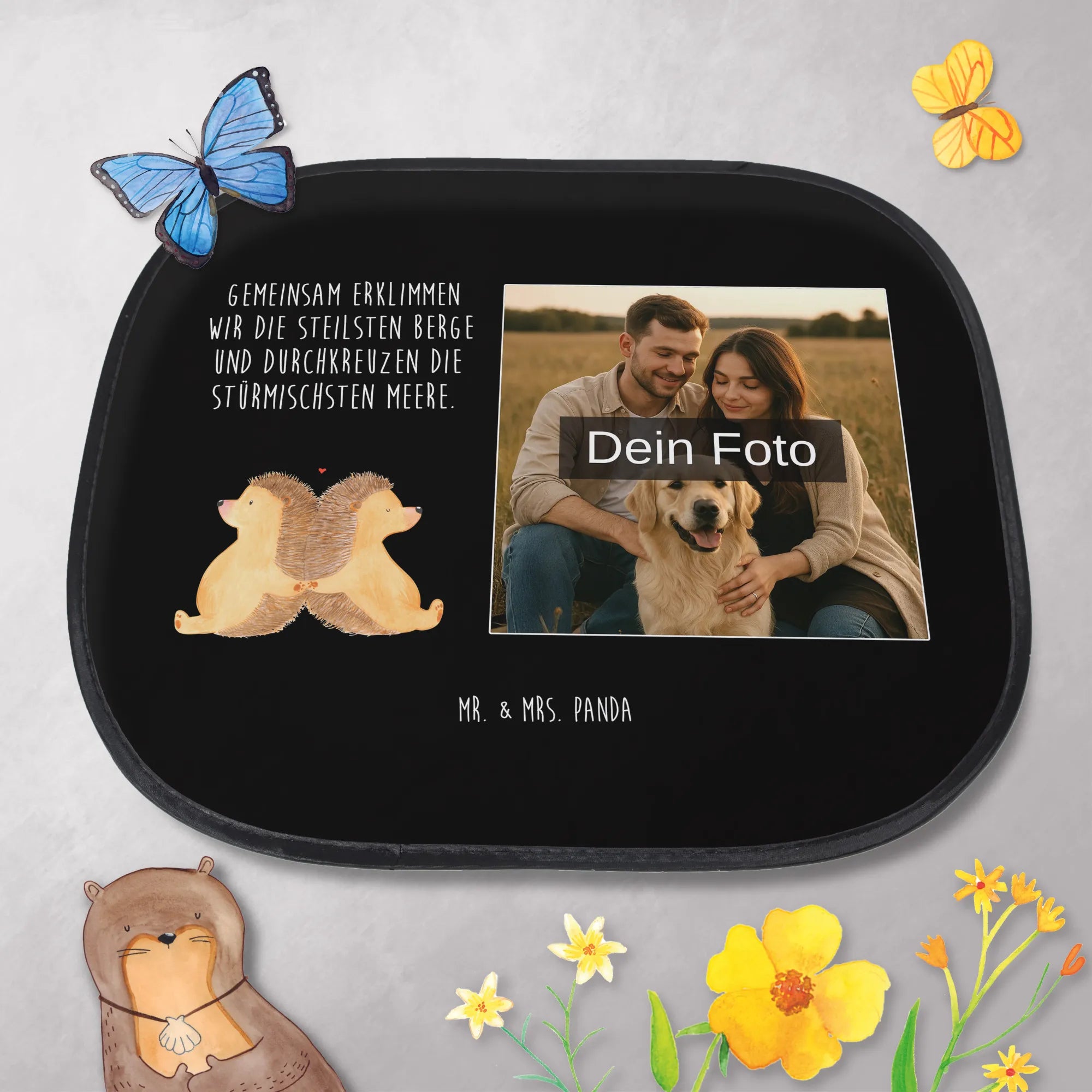 Personalisierbarer Foto Sonnenschutz Auto Igel händchenhaltend – Mr. & Mrs. Panda