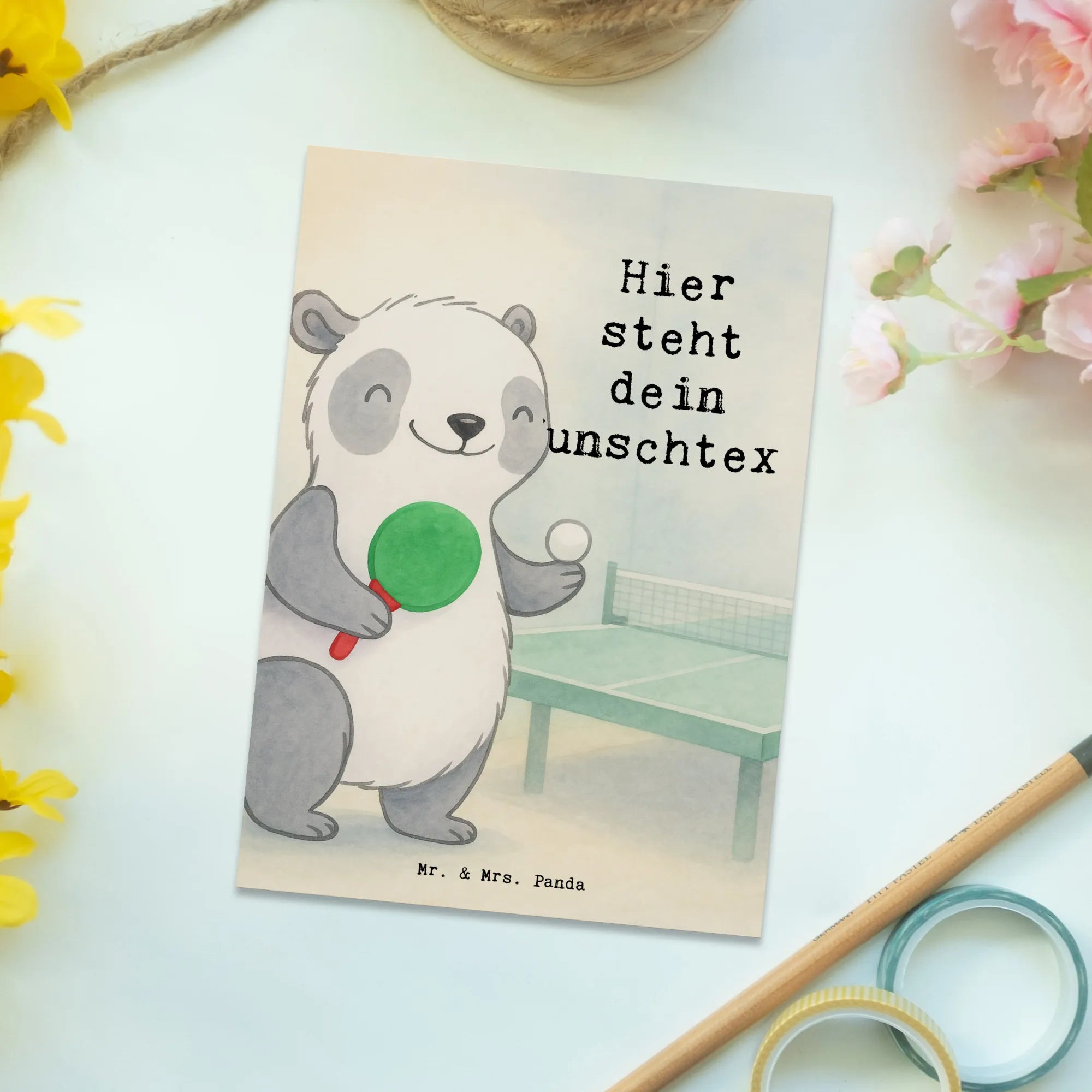Personalisierte Postkarte Panda Tischtennis Design