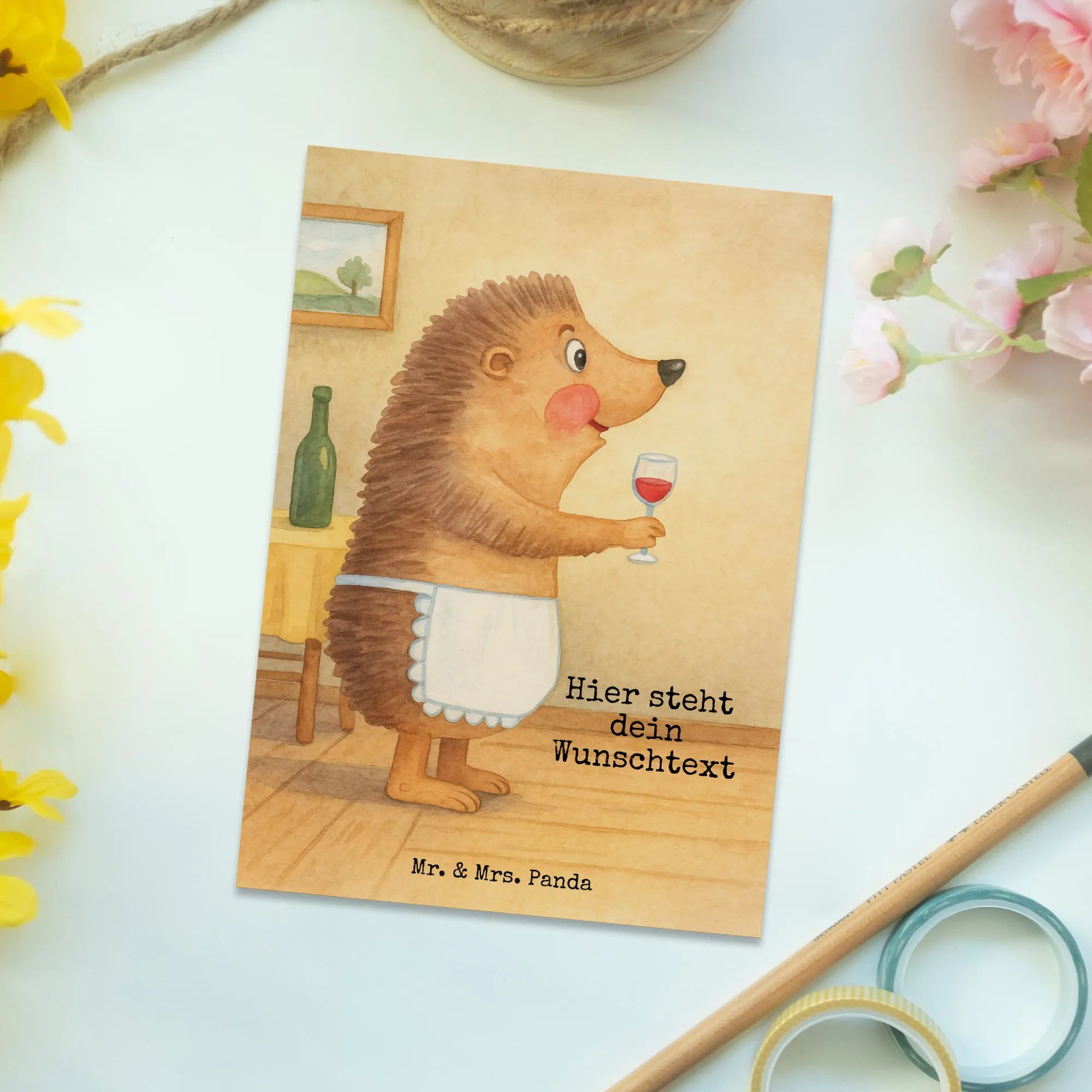 Personalizowana kartka pocztowa jeż wino Design