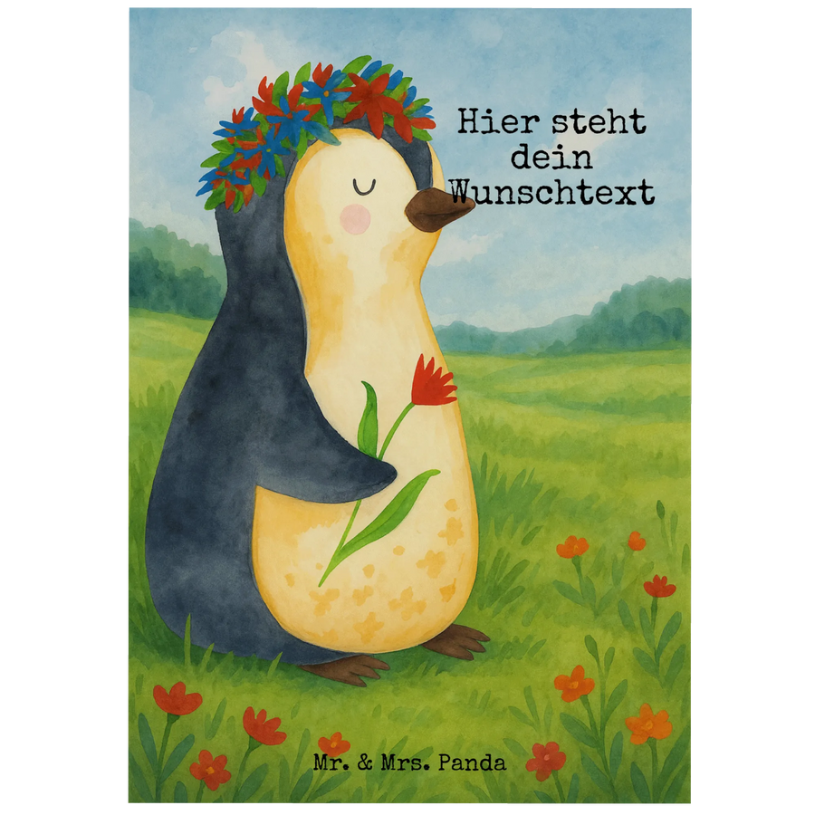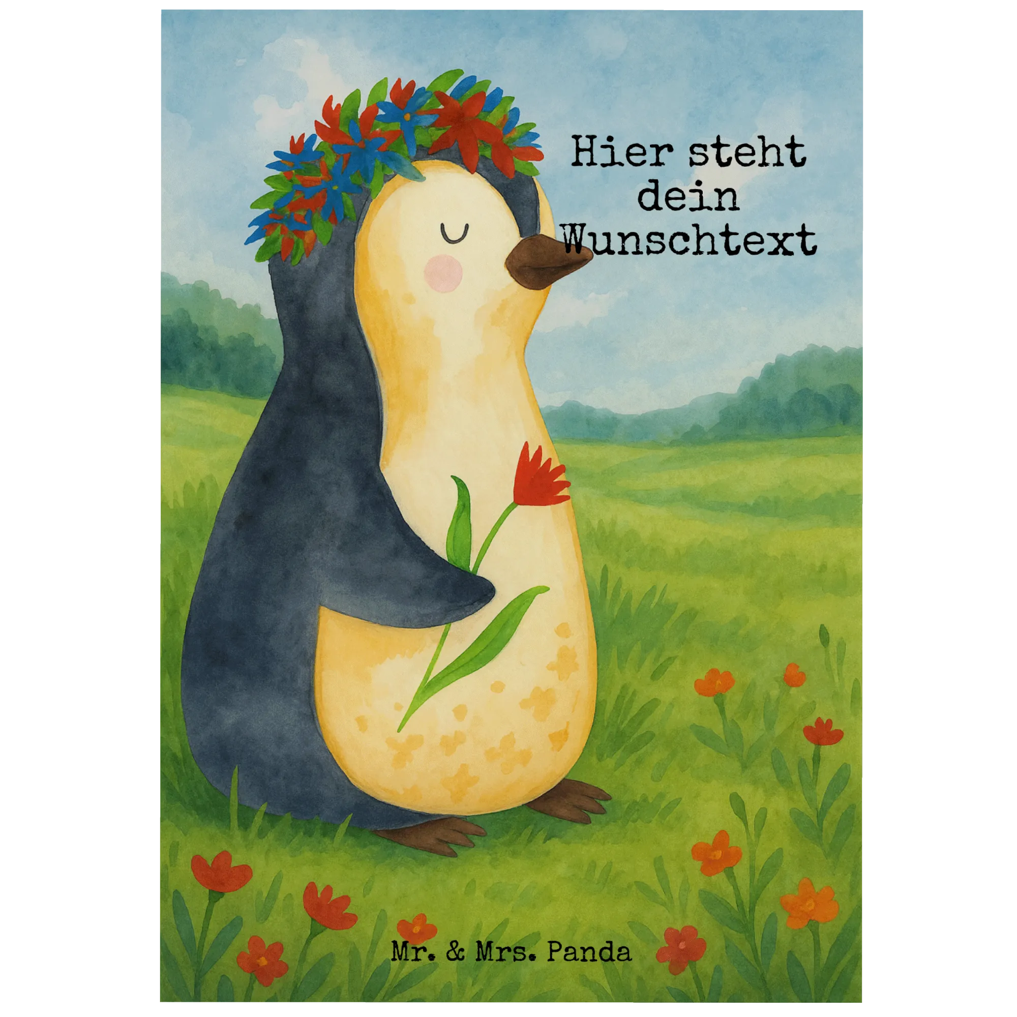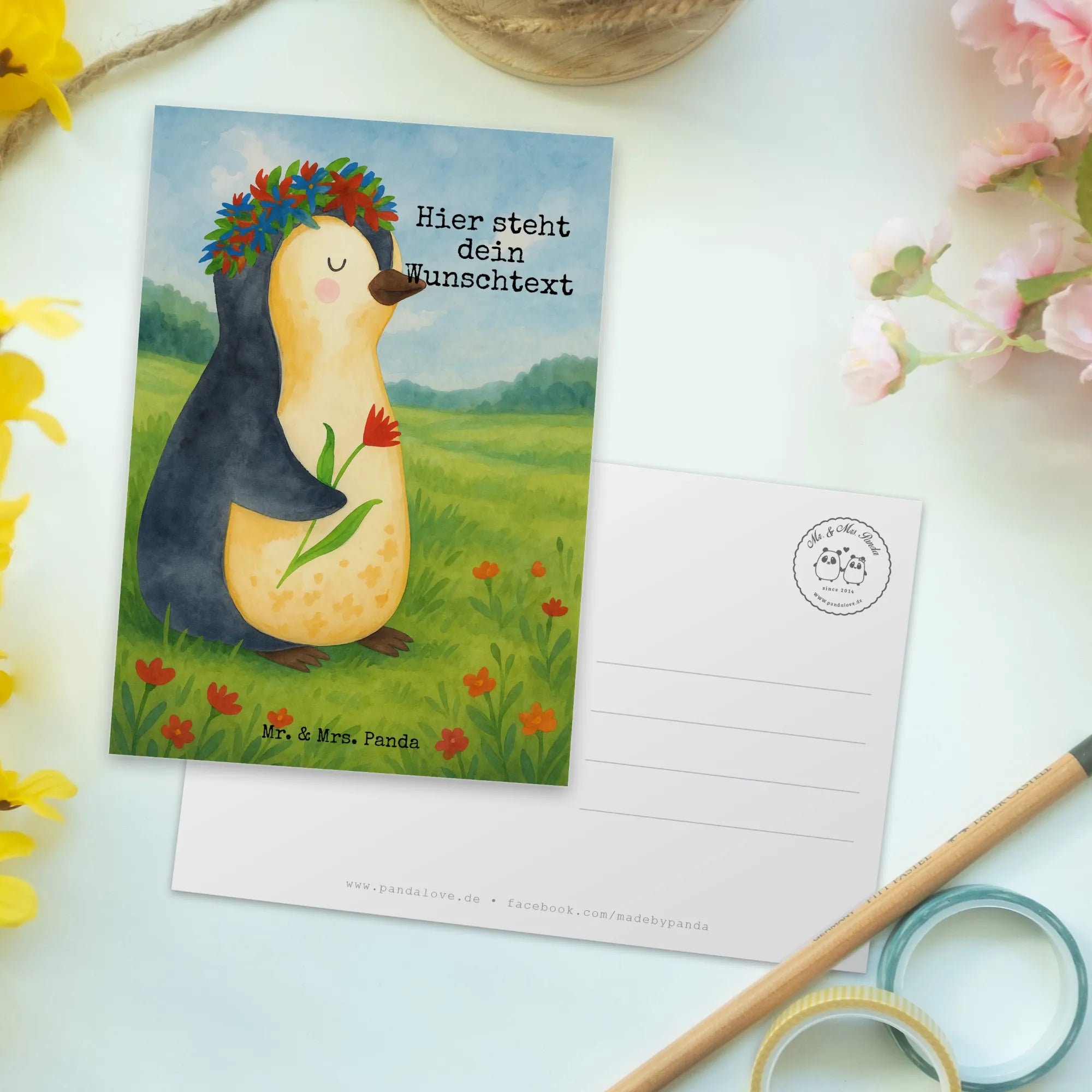Personalizowana kartka pocztowa pingwin kwiaty Design