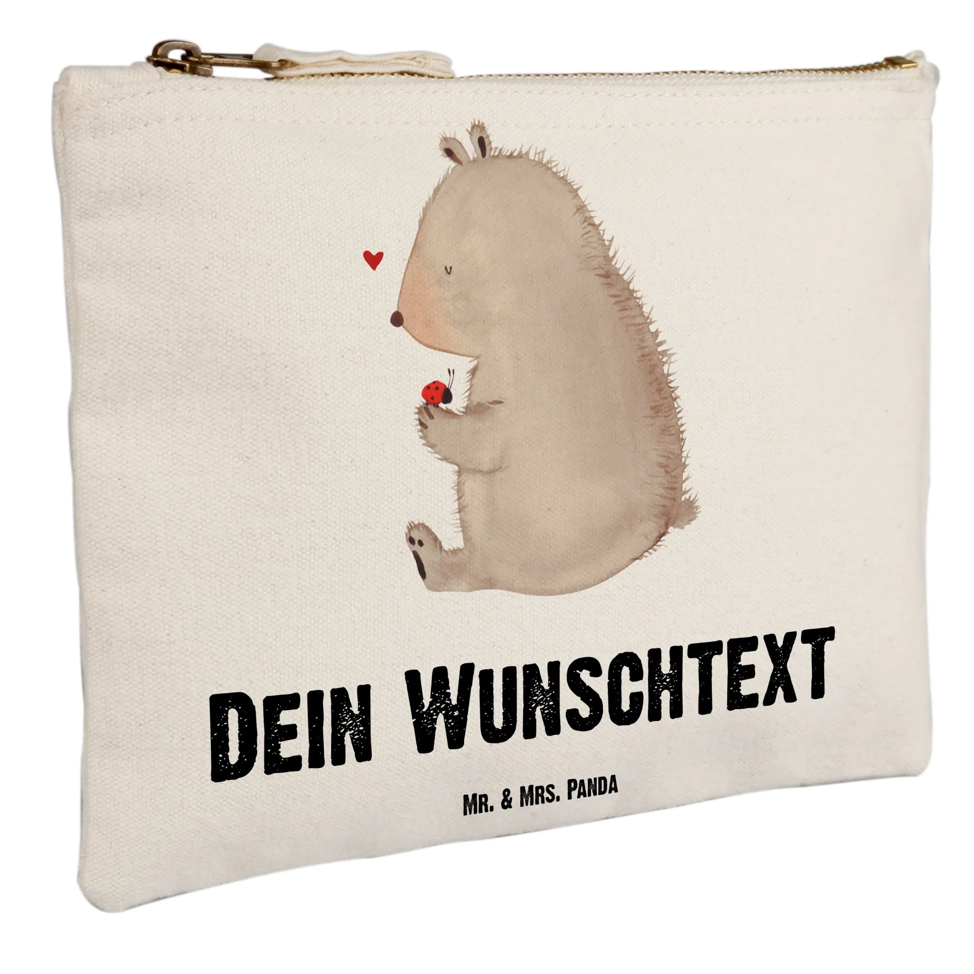 Die personalisierte Schminktasche Bär mit Marienkäfer von Mr. & Mrs. Panda ist das perfekte Geschenk für jeden Anlass! Diese liebevoll gestaltete Kosmetiktasche ist nicht nur praktisch, sondern bringt auch eine Portion Freude in den Alltag.