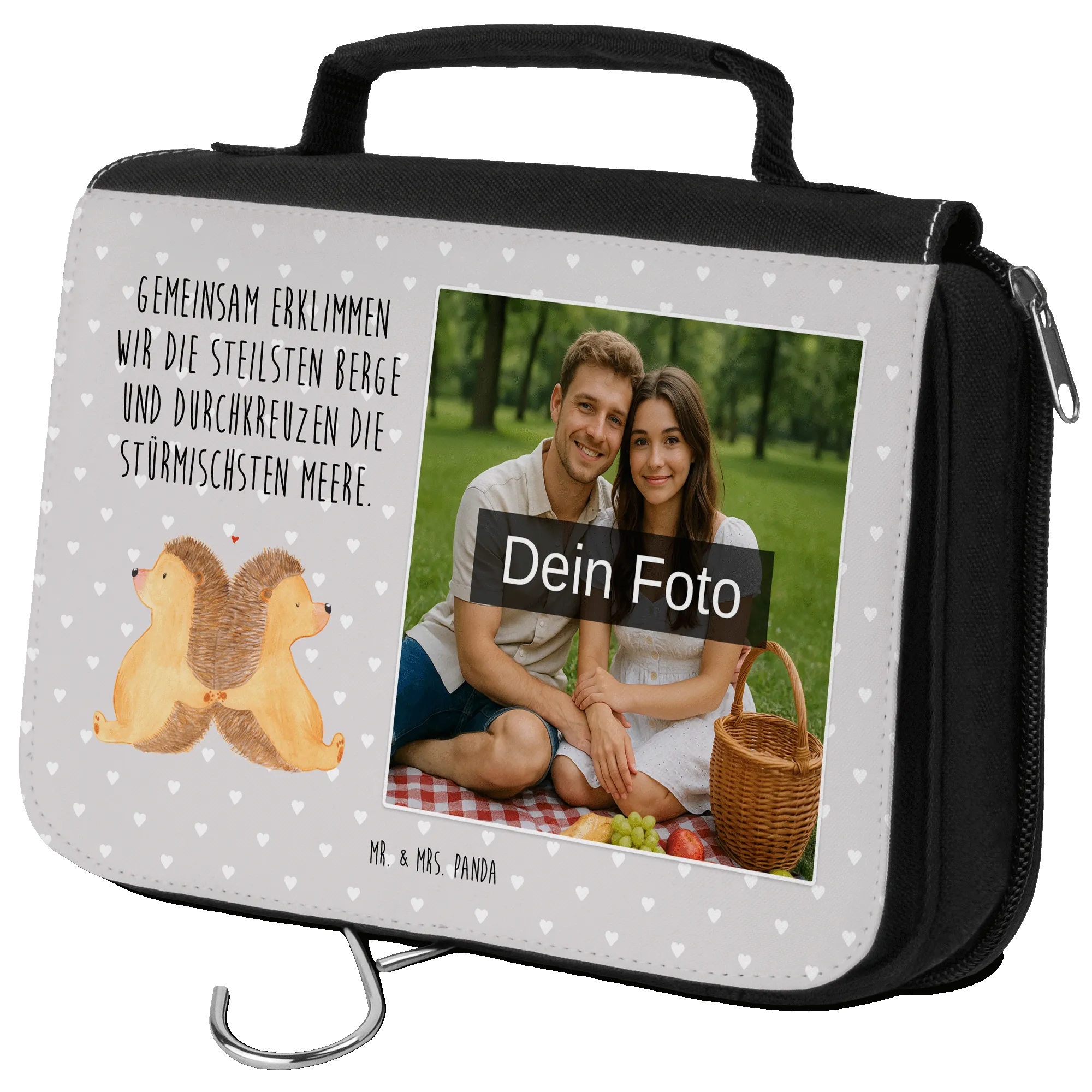 Personalisierter Foto Kulturbeutel Igel händchenhaltend – Mr. & Mrs. Panda