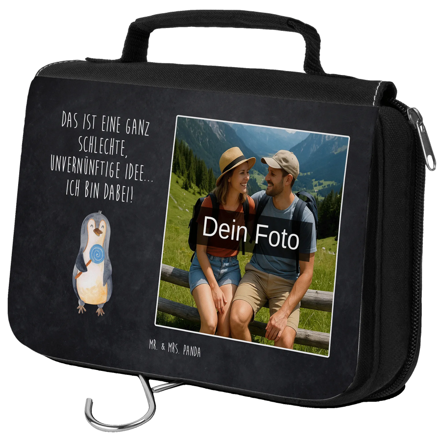 Personalisierter Foto Kulturbeutel Pinguin Lolli - Kreidetafel