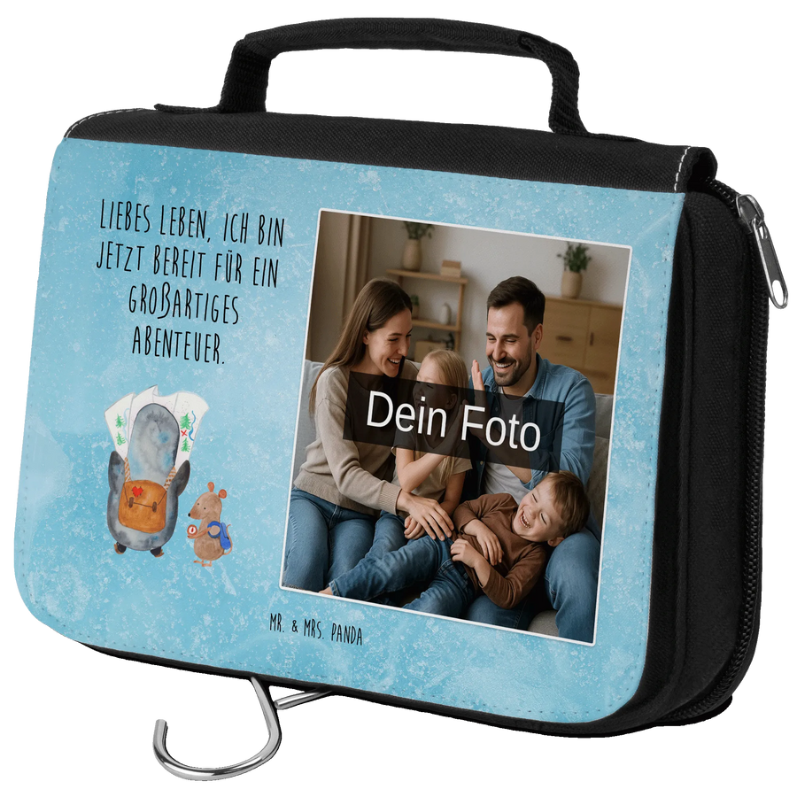 Personalisierter Foto Kulturbeutel Pinguin & Maus Wanderer - Eisblau